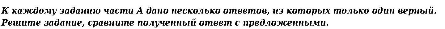 К каждому заданию части А даны несколько ответов, из которых только один верный. Решите задание, сравните полученный ответ с предложеннымыми, и его номер впишите в поле для ответа.