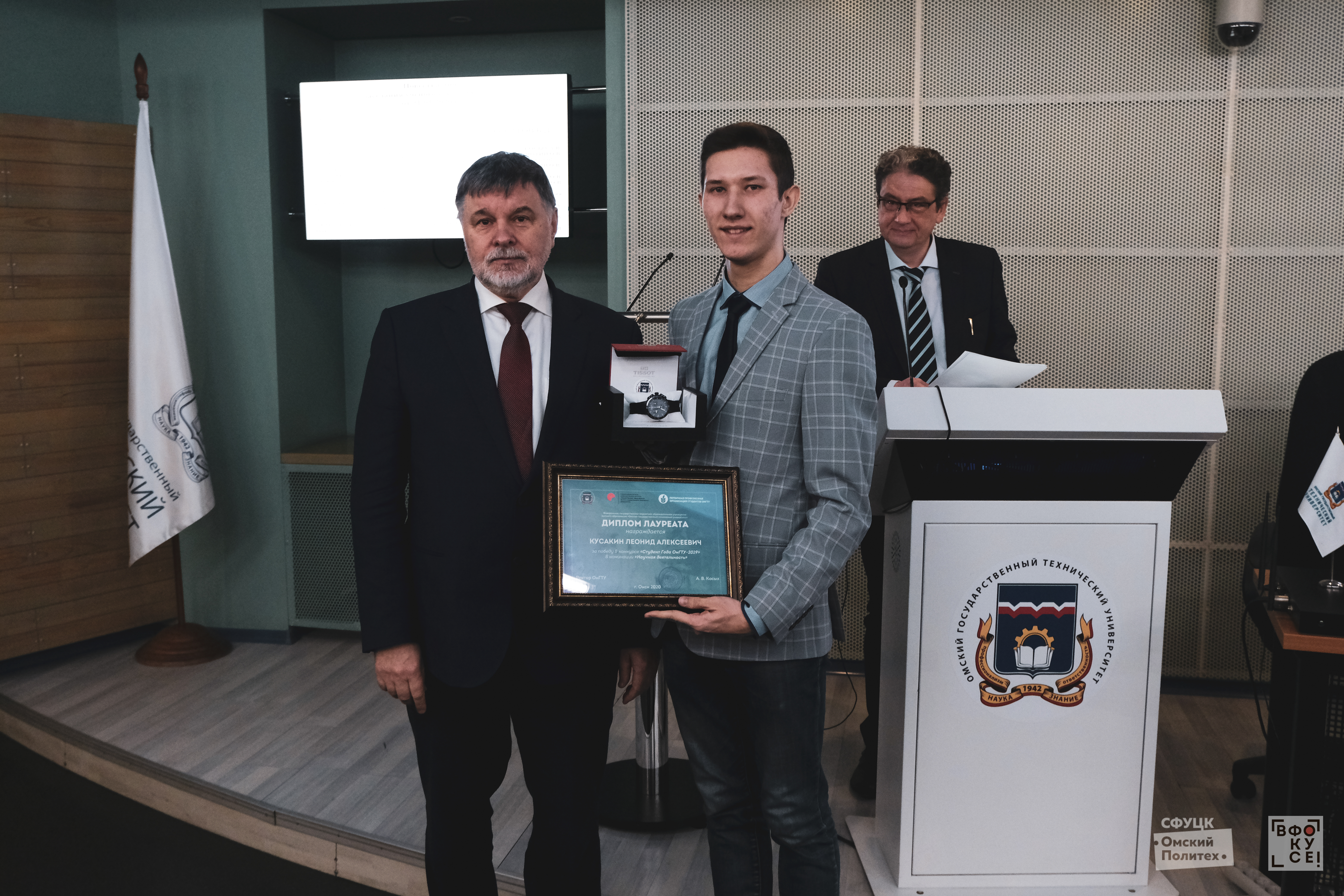 В опорном вузе Омской области завершился конкурс «Студент года ОмГТУ» по итогам 2019 года. 31 января 2020 года на Ученом совете ОмГТУ ректор университета Анатолий Косых лично поздравил победителей конкурса по трем номинациям и вручил им дипломы и памятные подарки (наручные швейцарские часы марки Tissot) за счет дохода от целевого капитала Специализированного фонда управления целевым капиталом «Омский Политех – Фонд развития Омского государственного технического университета»за 2018 год.