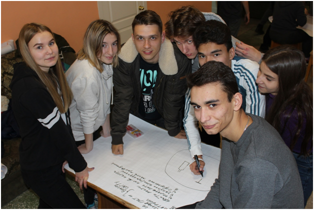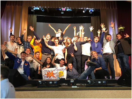 Также жюри оценивали группу поддержки выступающих ребят. Они ходили по залу, выбегали на сцену с плакатами, скандировали кричалки, лишь бы их заметили и услышали!