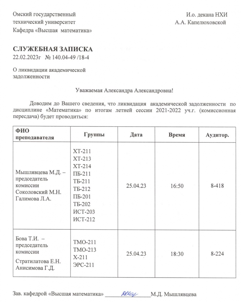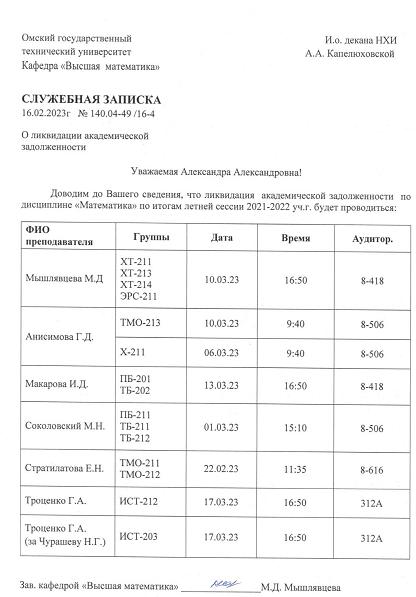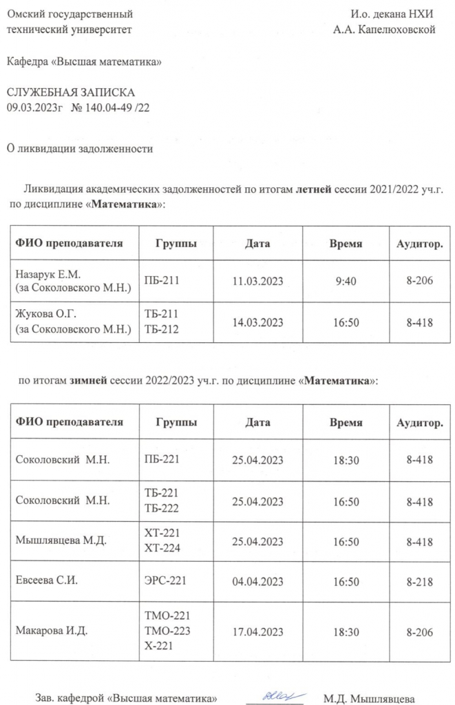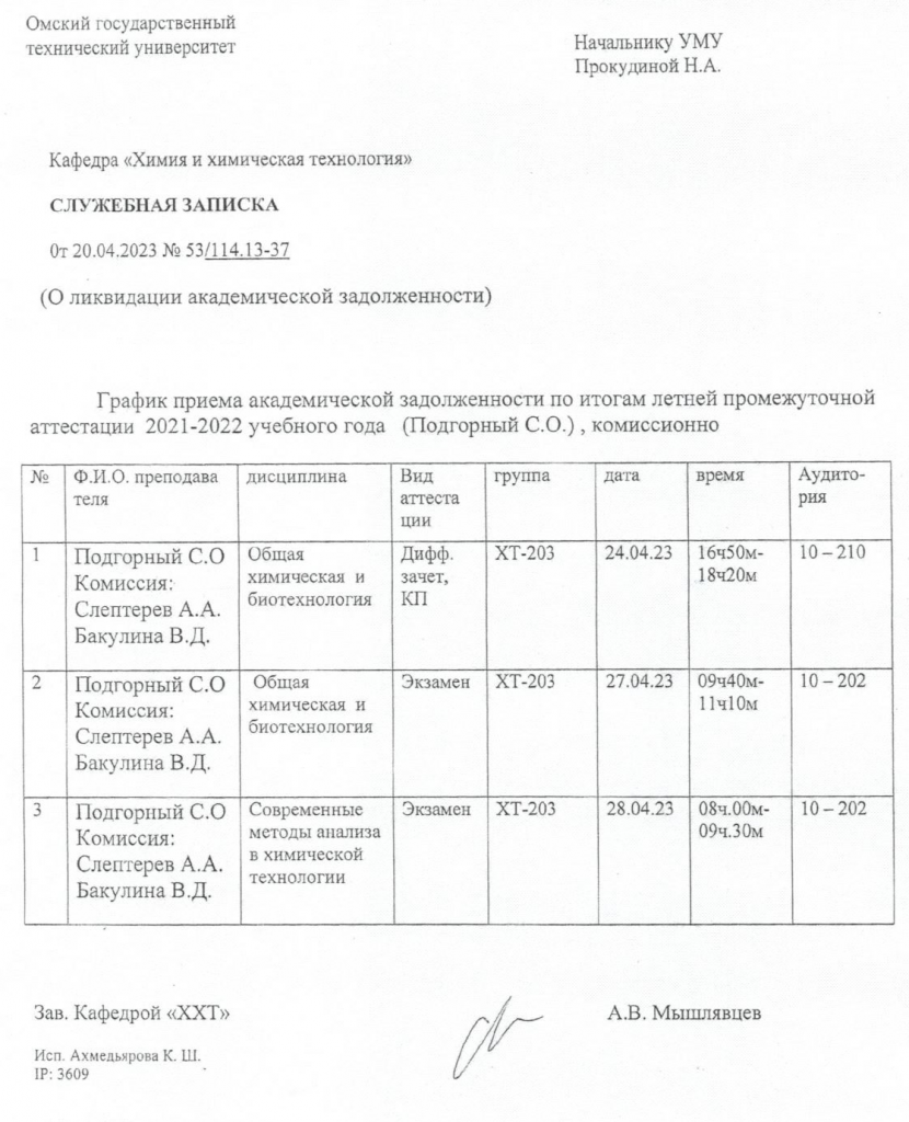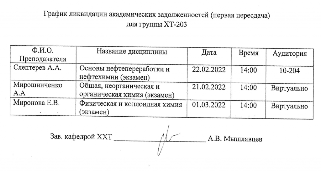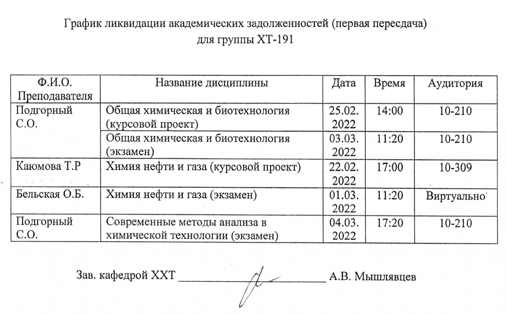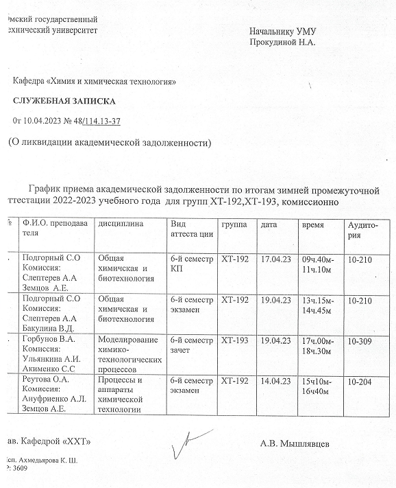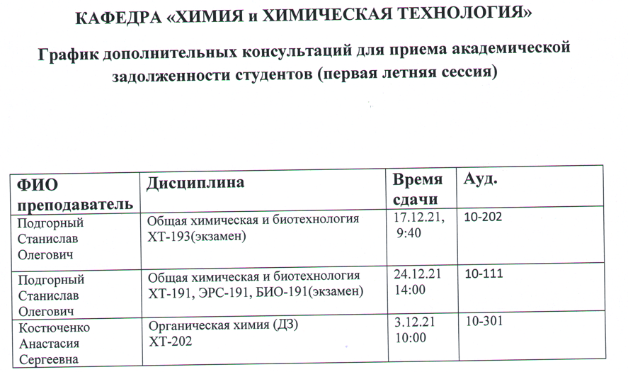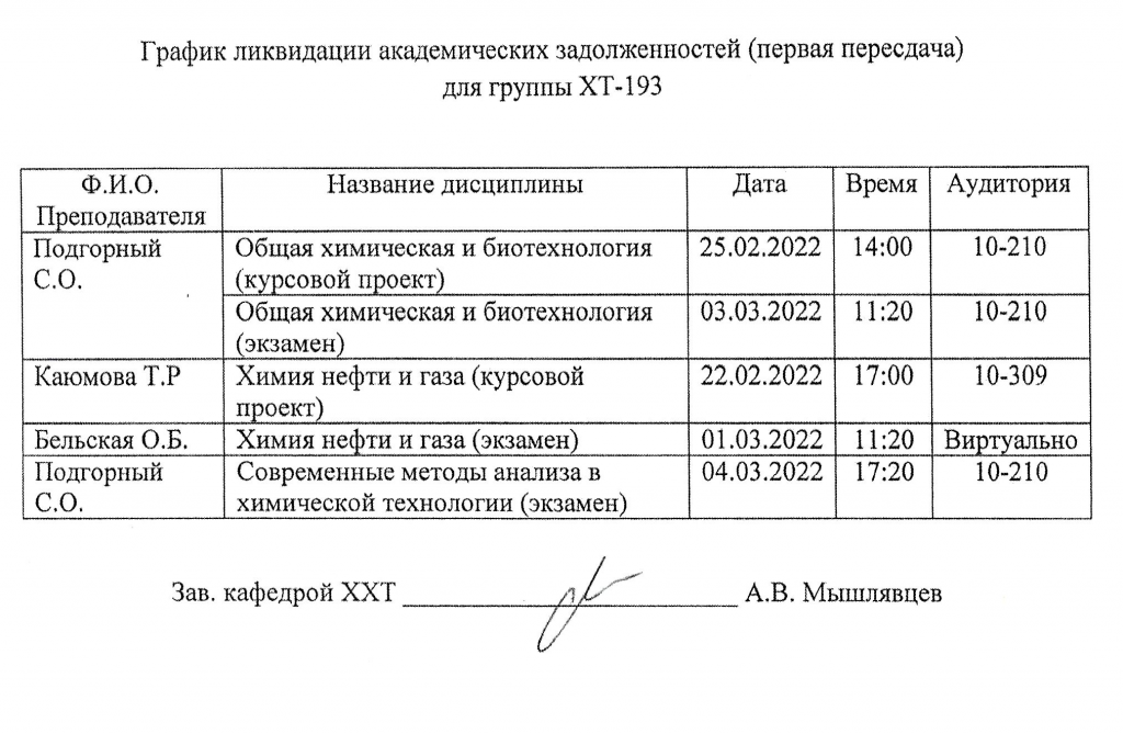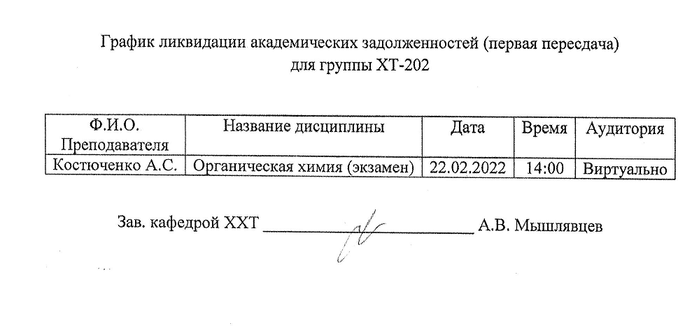 ВНИМАНИЕ!!! Уважаемые студенты, просим ознакомиться с Графиком ликвидации задолженностей кафедры "ХИМИЯ И ХИМИЧЕСКАЯ ТЕХНОЛОГИЯ" по итогам осеннего семестра 2022-2023 учебного года.