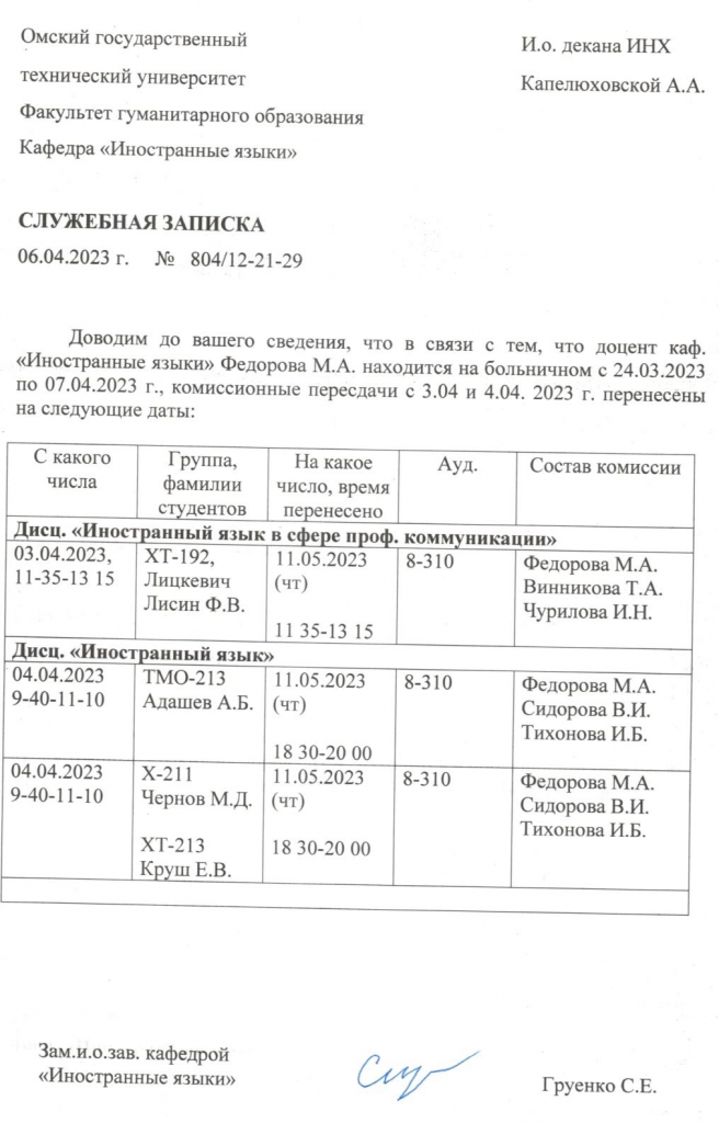 График пересдач Кафедра «История, философия и социальные коммуникации»
