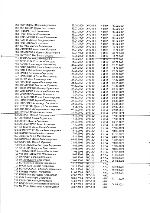 группы: ТМО-201, ТМО-202, Х-201, ХТ-201, ХТ-202, ХТ-203, ЭРС-201, ТБ-201, ТБ-202