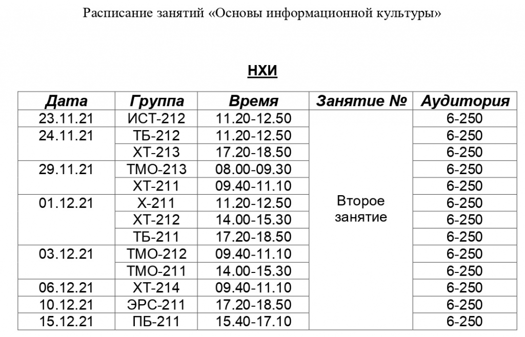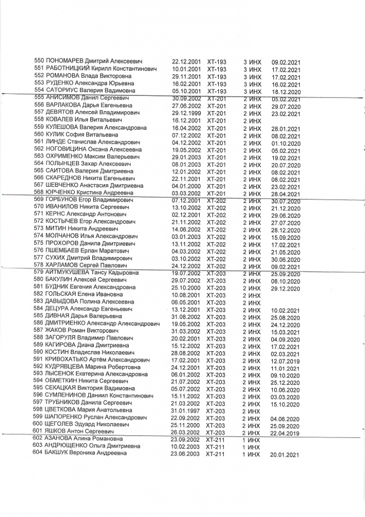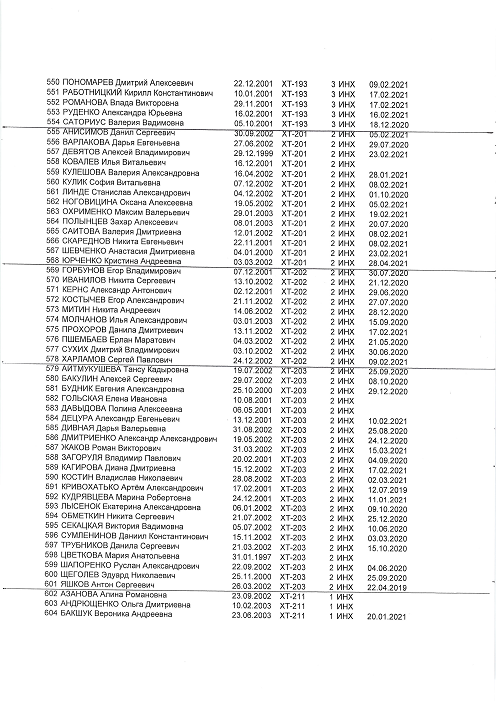 группы:ТМО-211; ТМО-212; ТМО-213; Х-211; ХТ-211; ХТ-212; ХТ-213