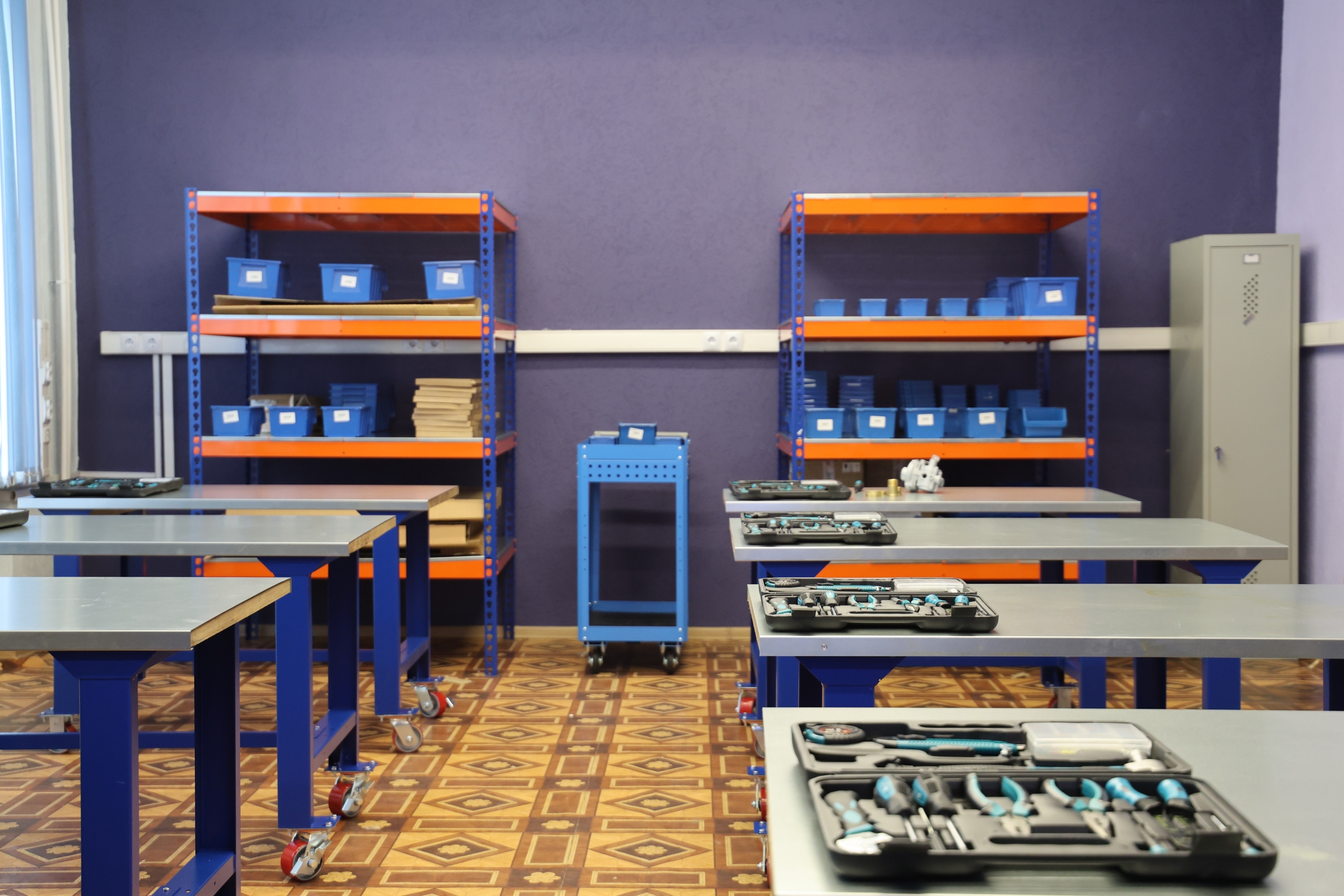 «Материально-техническая база LEAN-лаборатории включает симулятор производственной линии сборки, верстаки, стеллажные системы для имитации складских операций, логистическую тележку, комплекты собираемых изделий, ручной инструмент и средства индивидуальной защиты. Такая оснащенность позволяет максимально приблизить учебный процесс к реальным производственным условиям». |