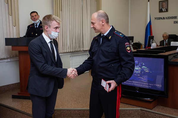 В рамках заседания генерал-майор полиции вручил Павлу Ложникову и студентам политеха свидетельство о внесении кибердружины «Плющ» в региональный реестр народных дружин и общественных объединений правоохранительной направленности, а также удостоверения дружинников.
