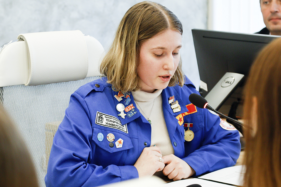 Затем командир ШСО ОмГТУ представила отчет о деятельности организации. Она рассказала о жизни штаба и победах политехников в 2024 году. После этого руководитель вуза пообщался с бойцами и ответил на их вопросы. В ходе беседы поговорили о том, как совмещать учебу и активную трудовую деятельность, обсудили актуальные в современном мире профессии, прохождение производственных практик и привлечение абитуриентов в Омский политех.
