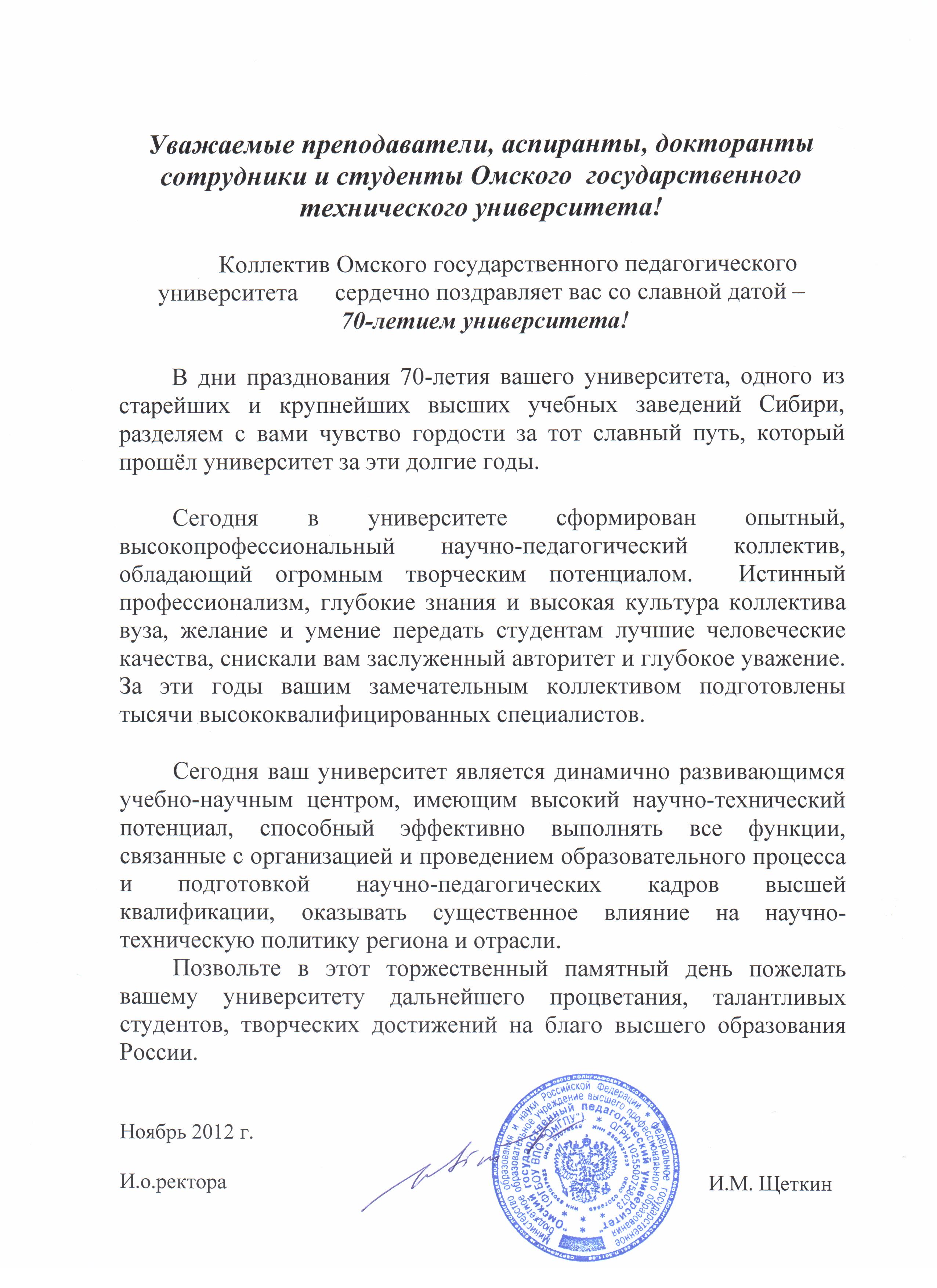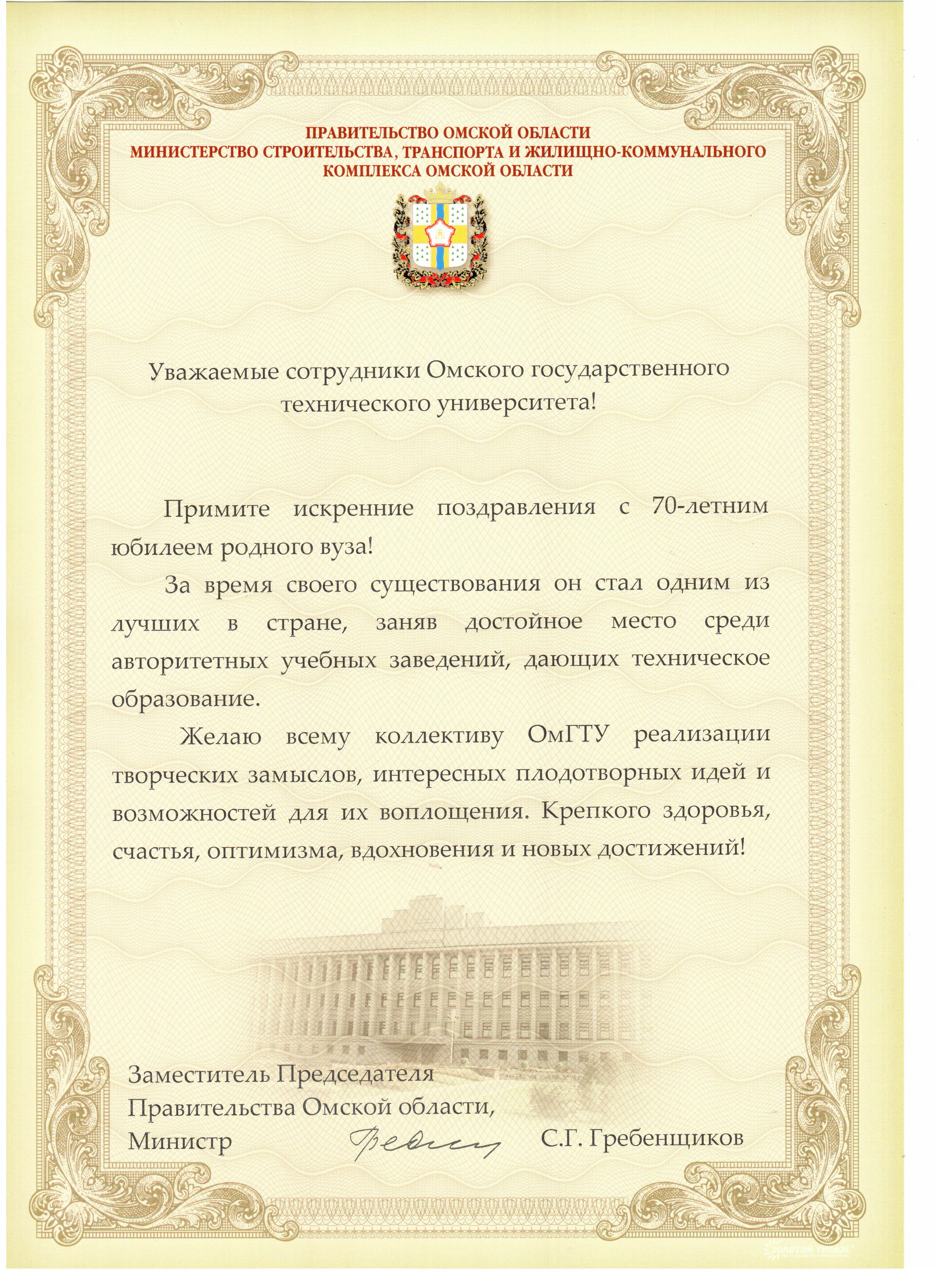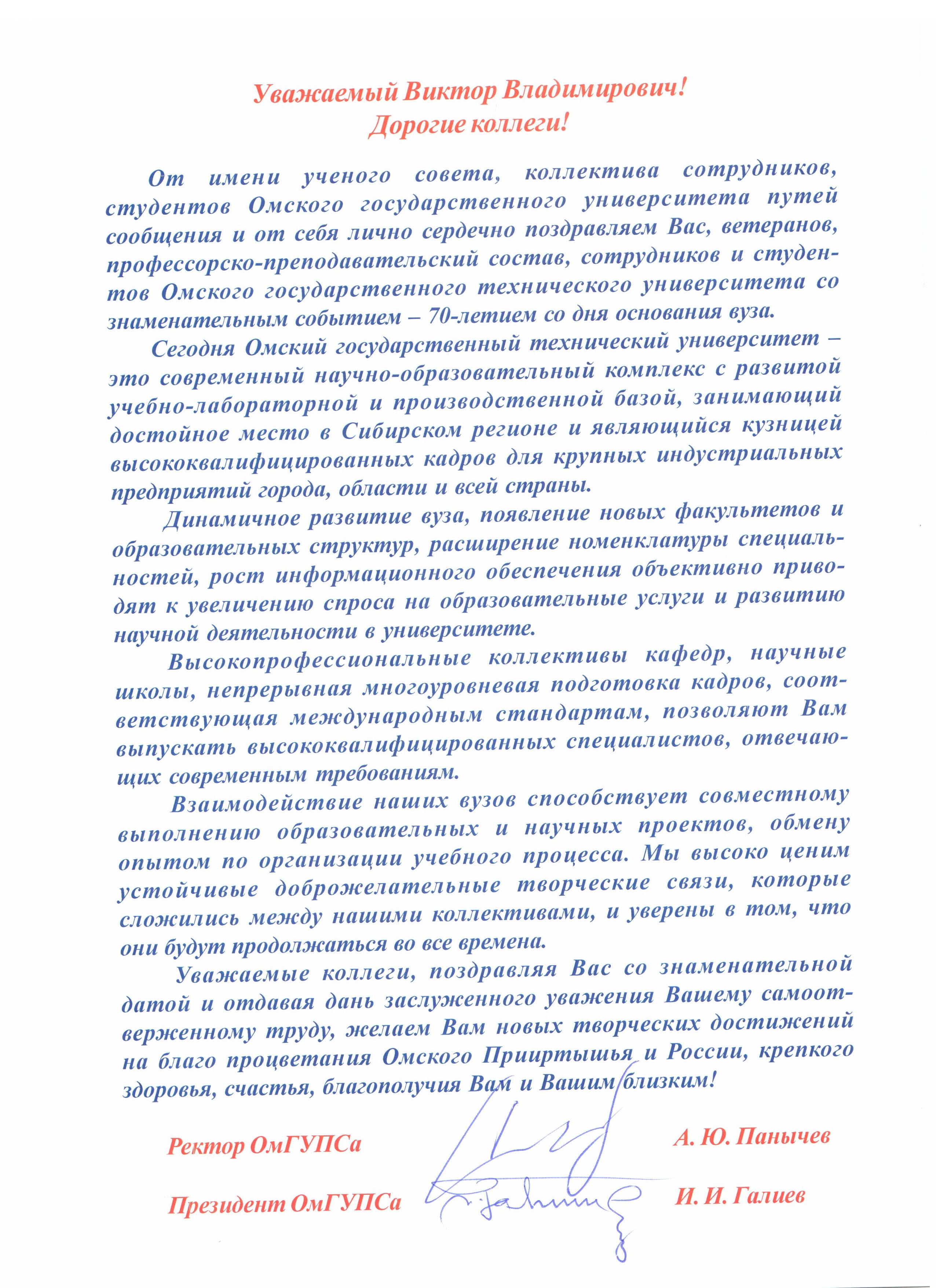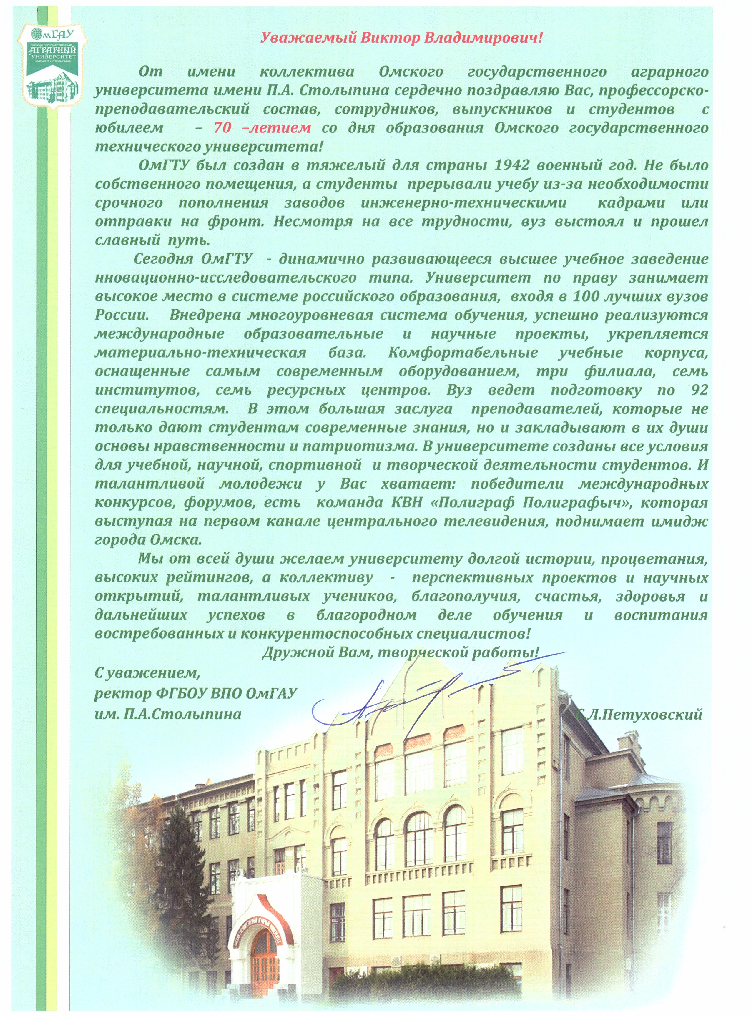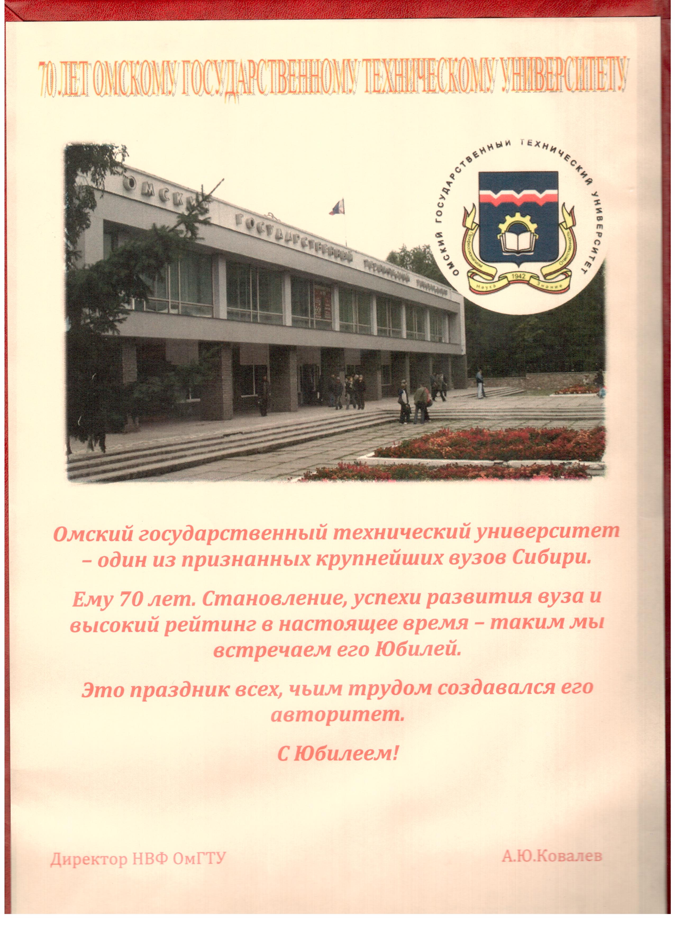 - Юбилей ОмГТУ: Поздравления