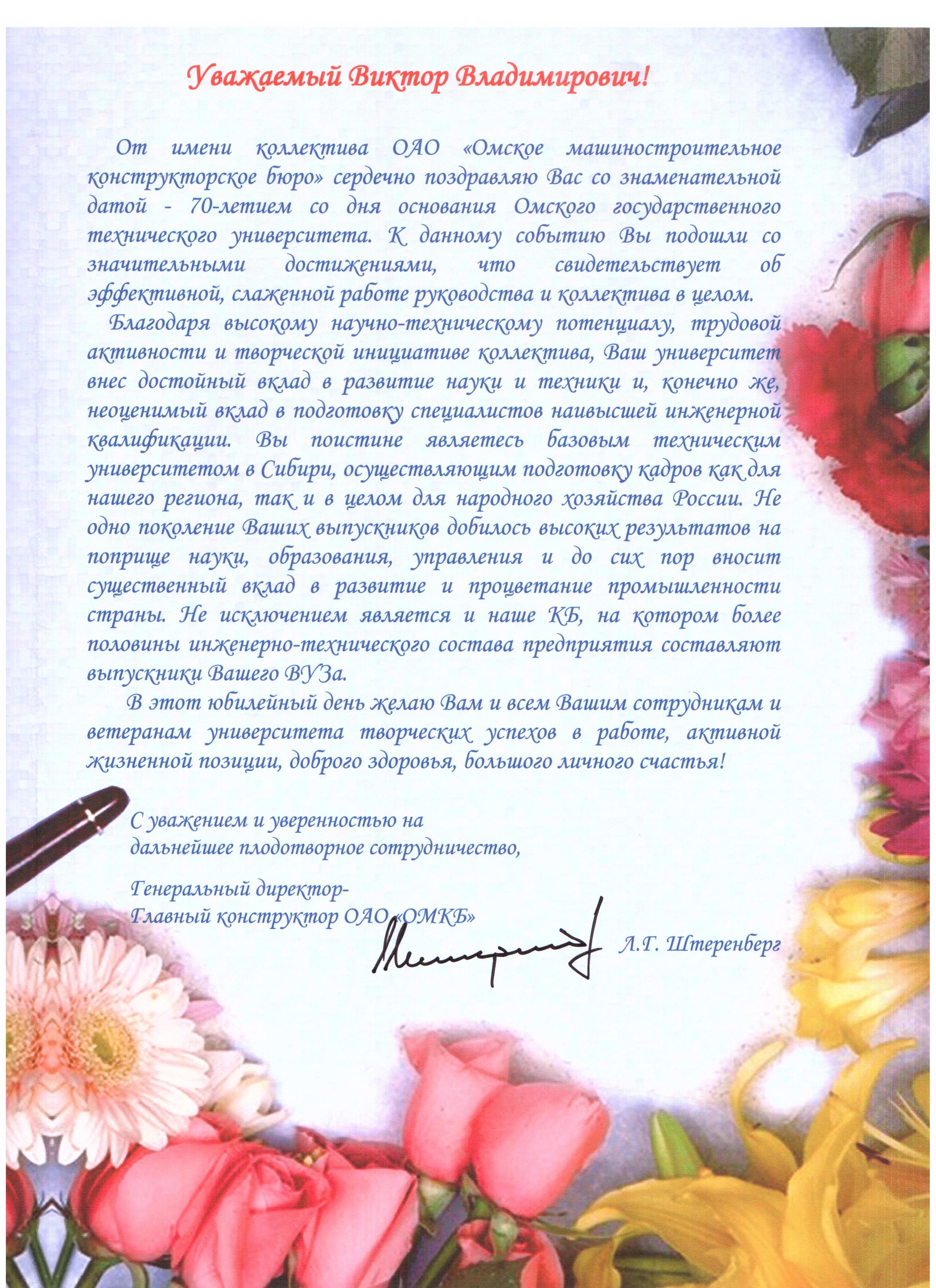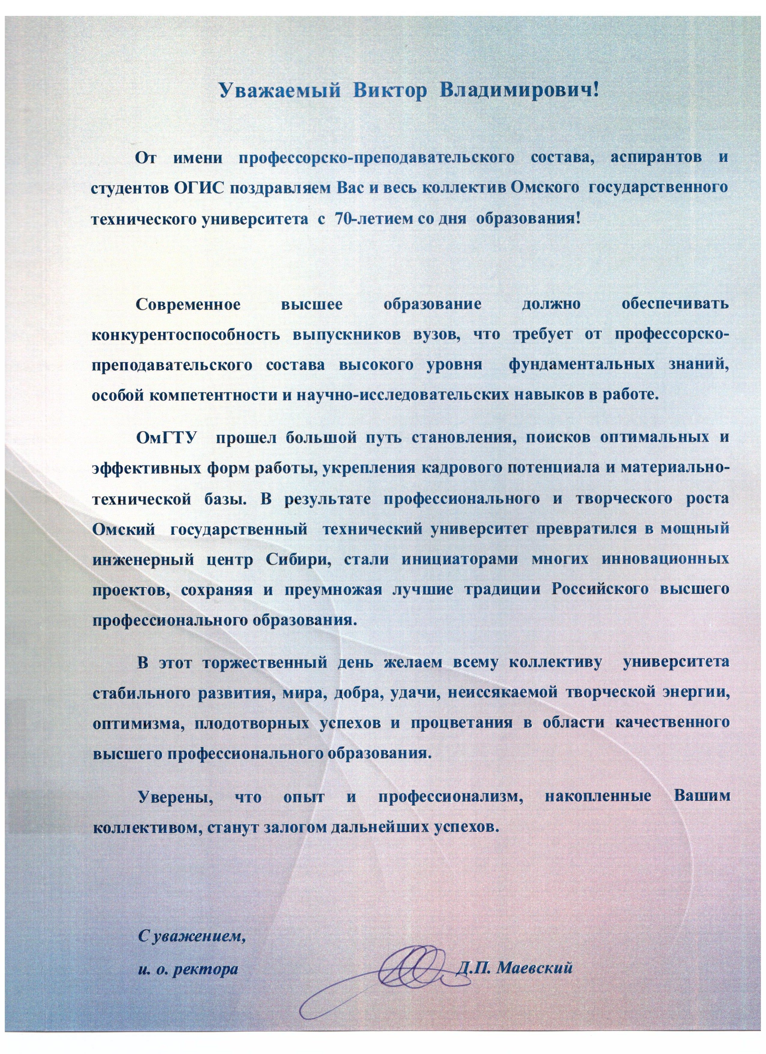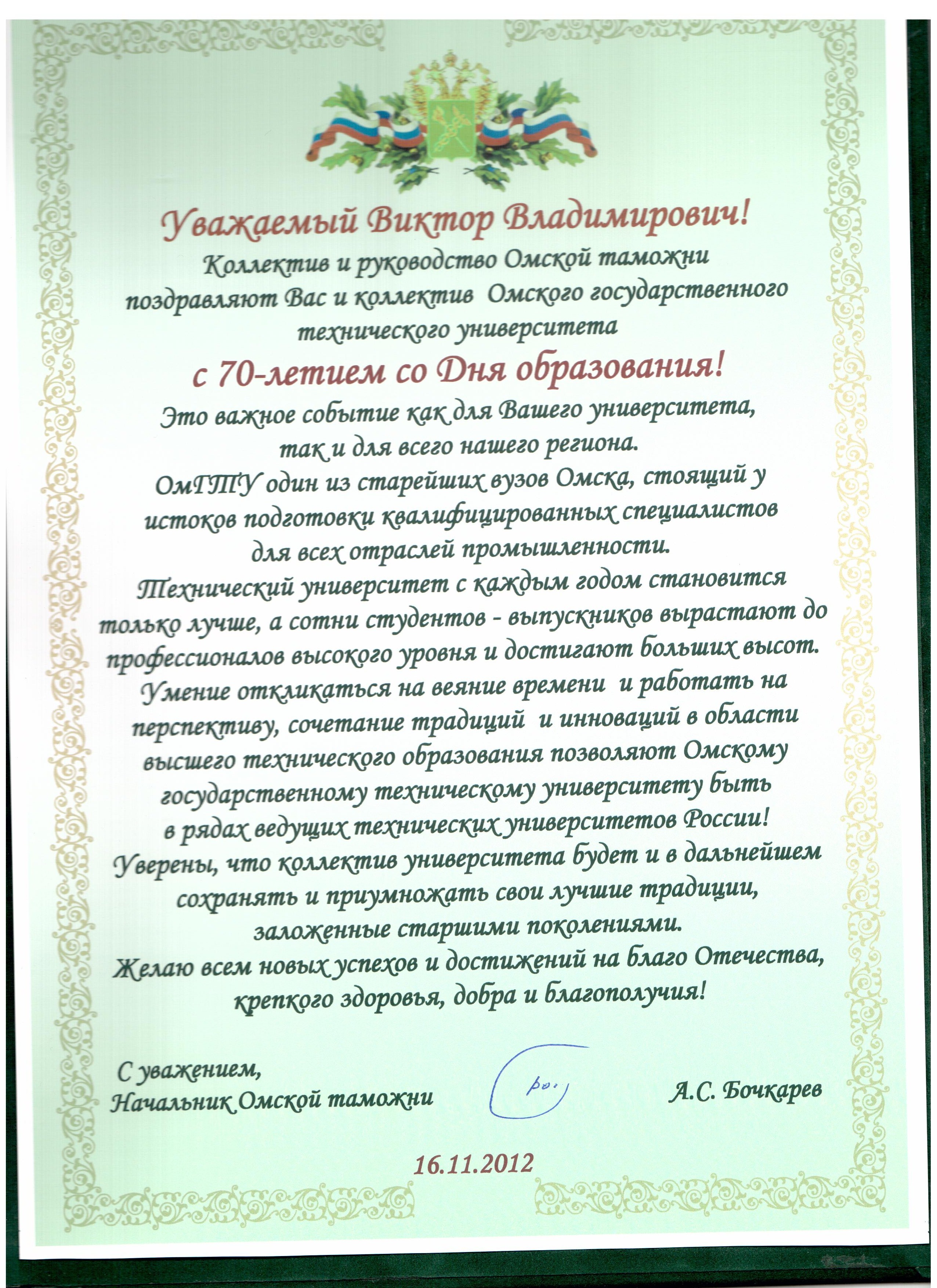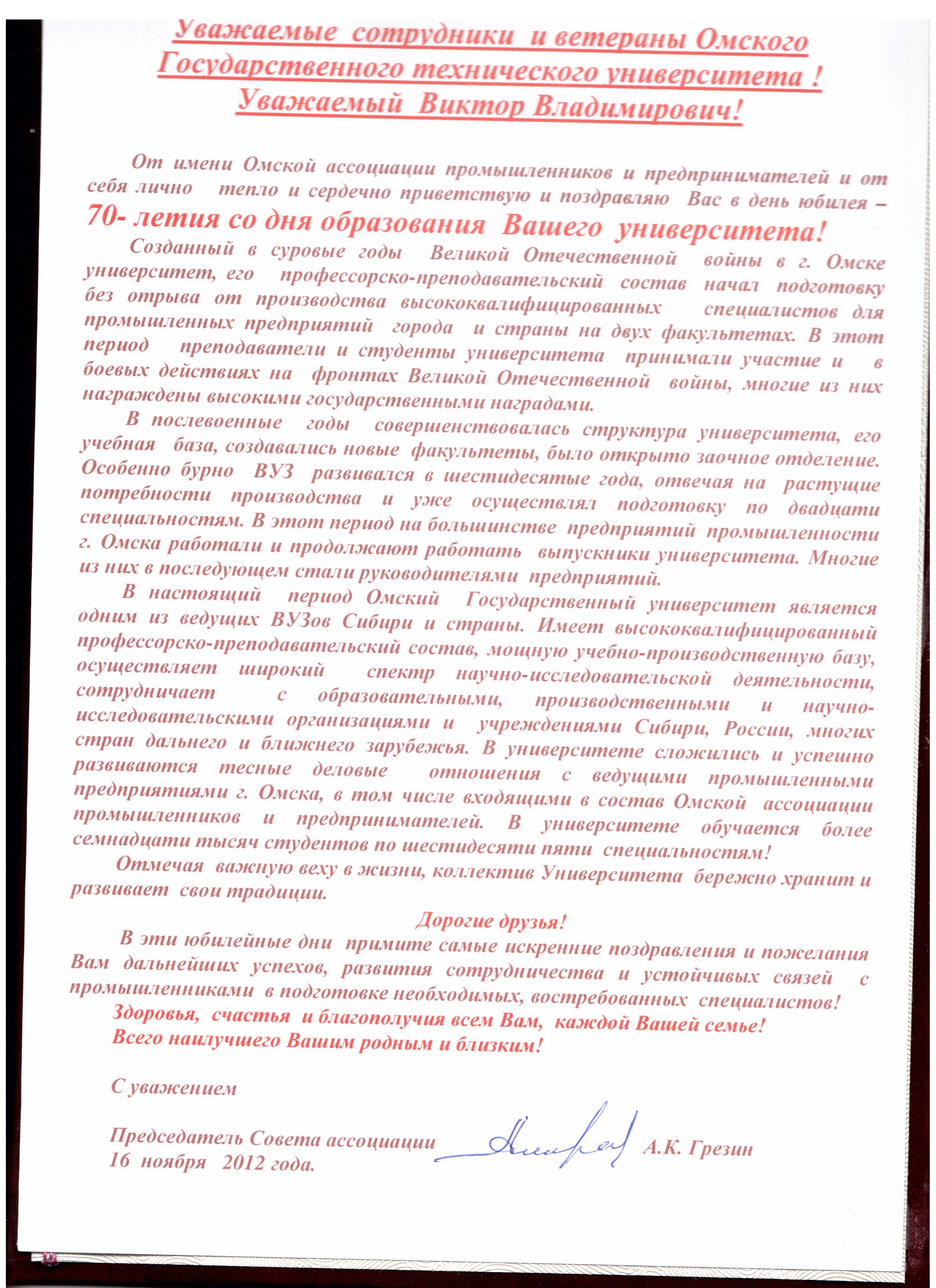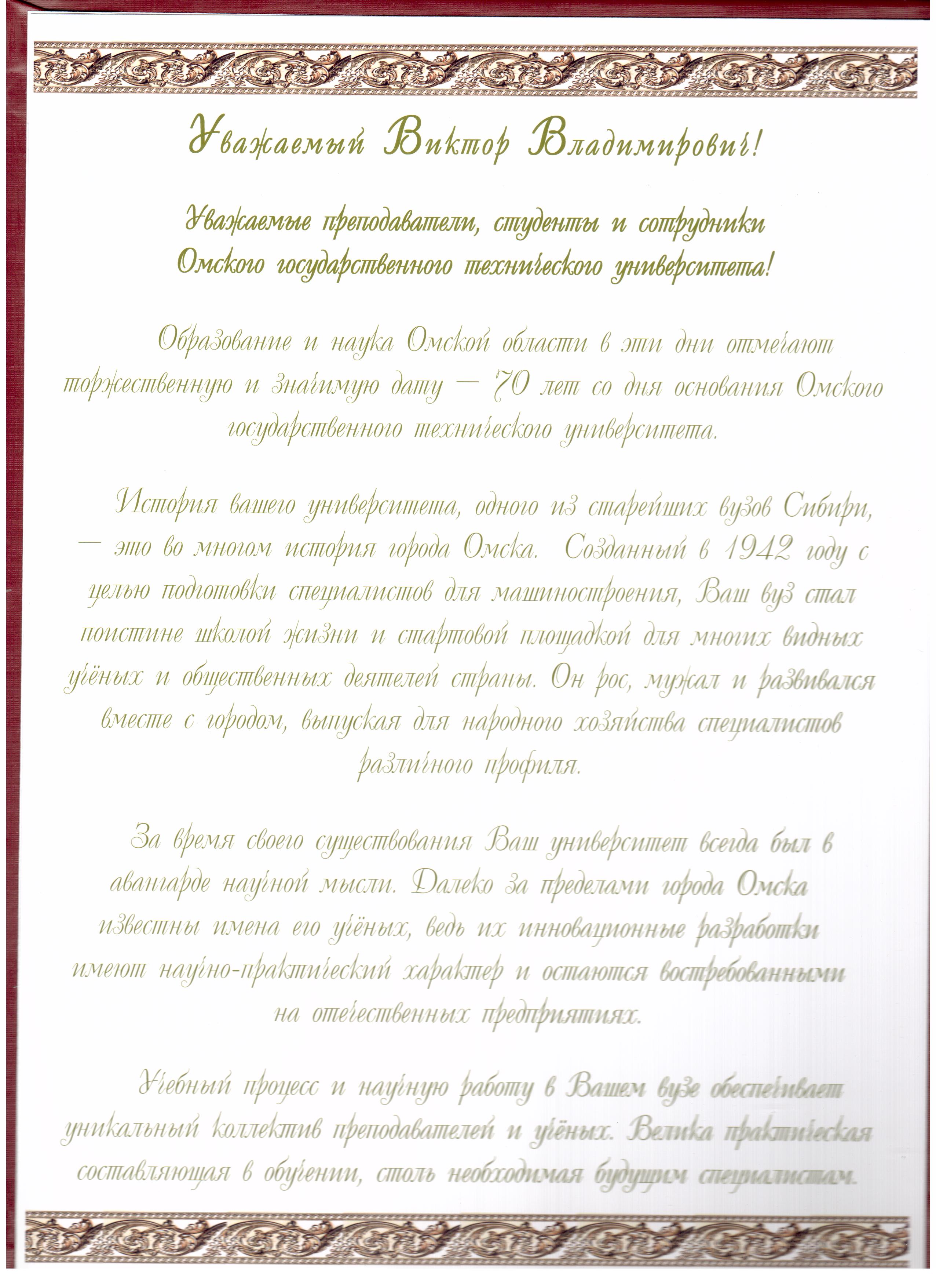 - Юбилей ОмГТУ: Поздравления