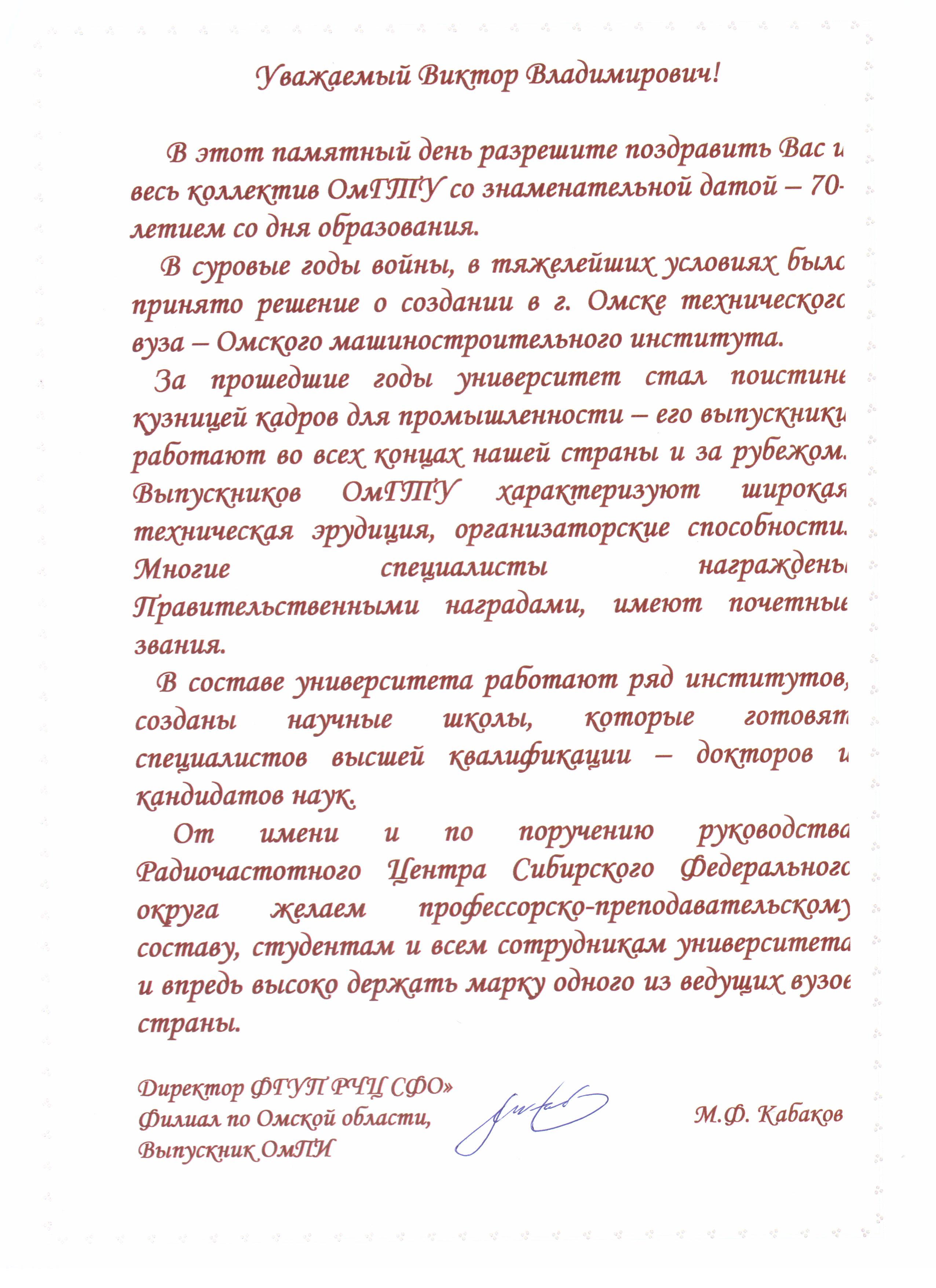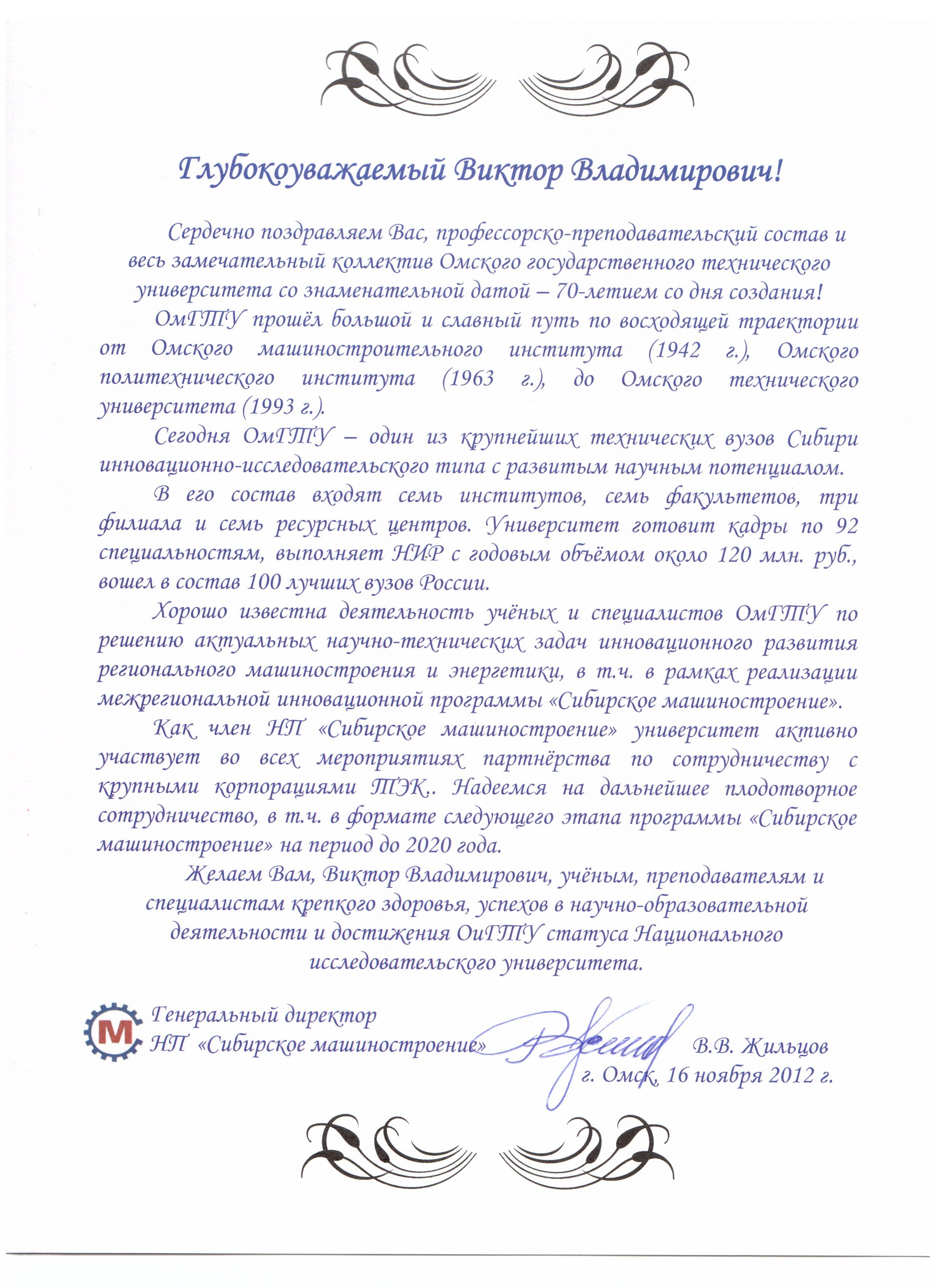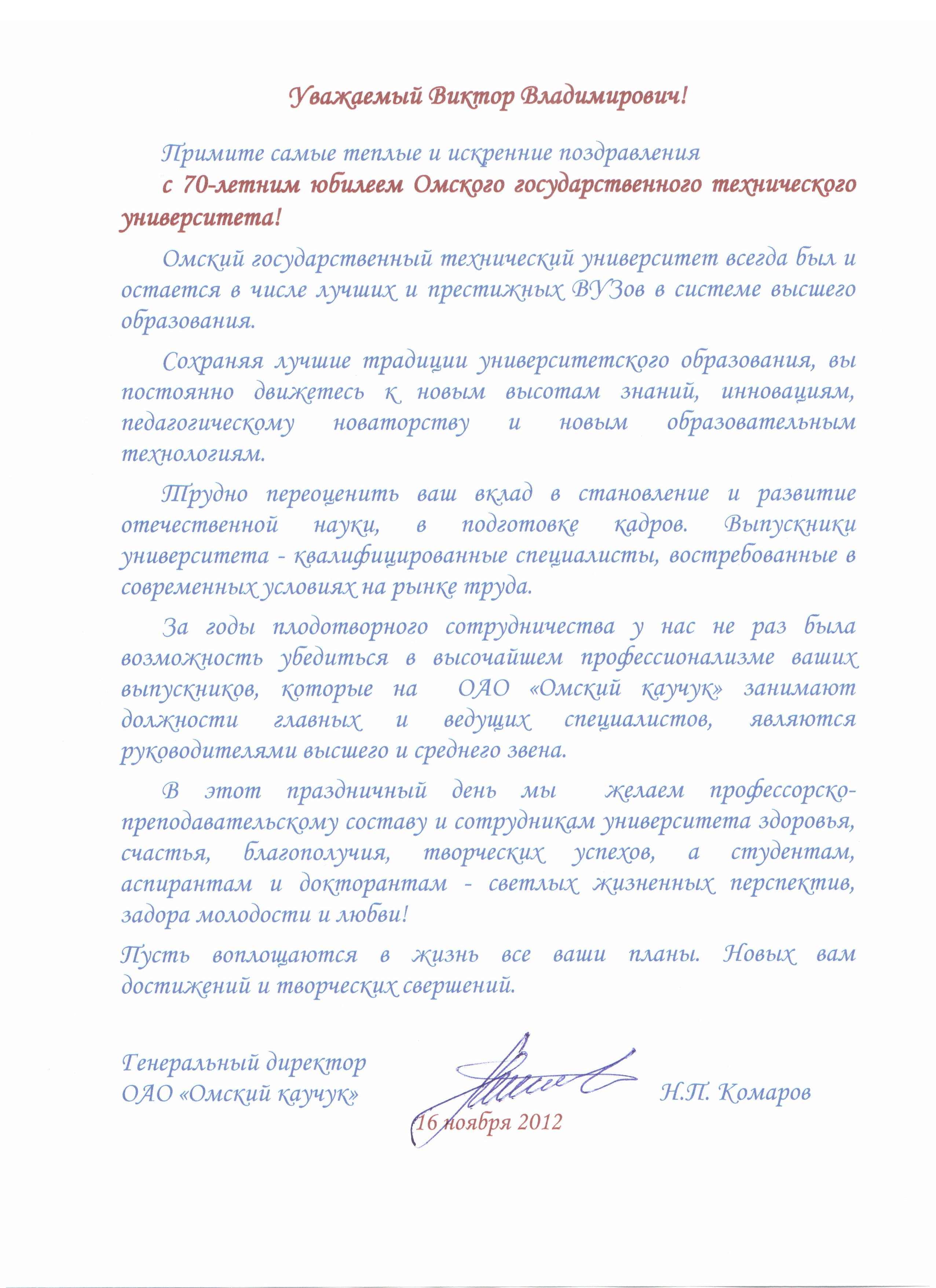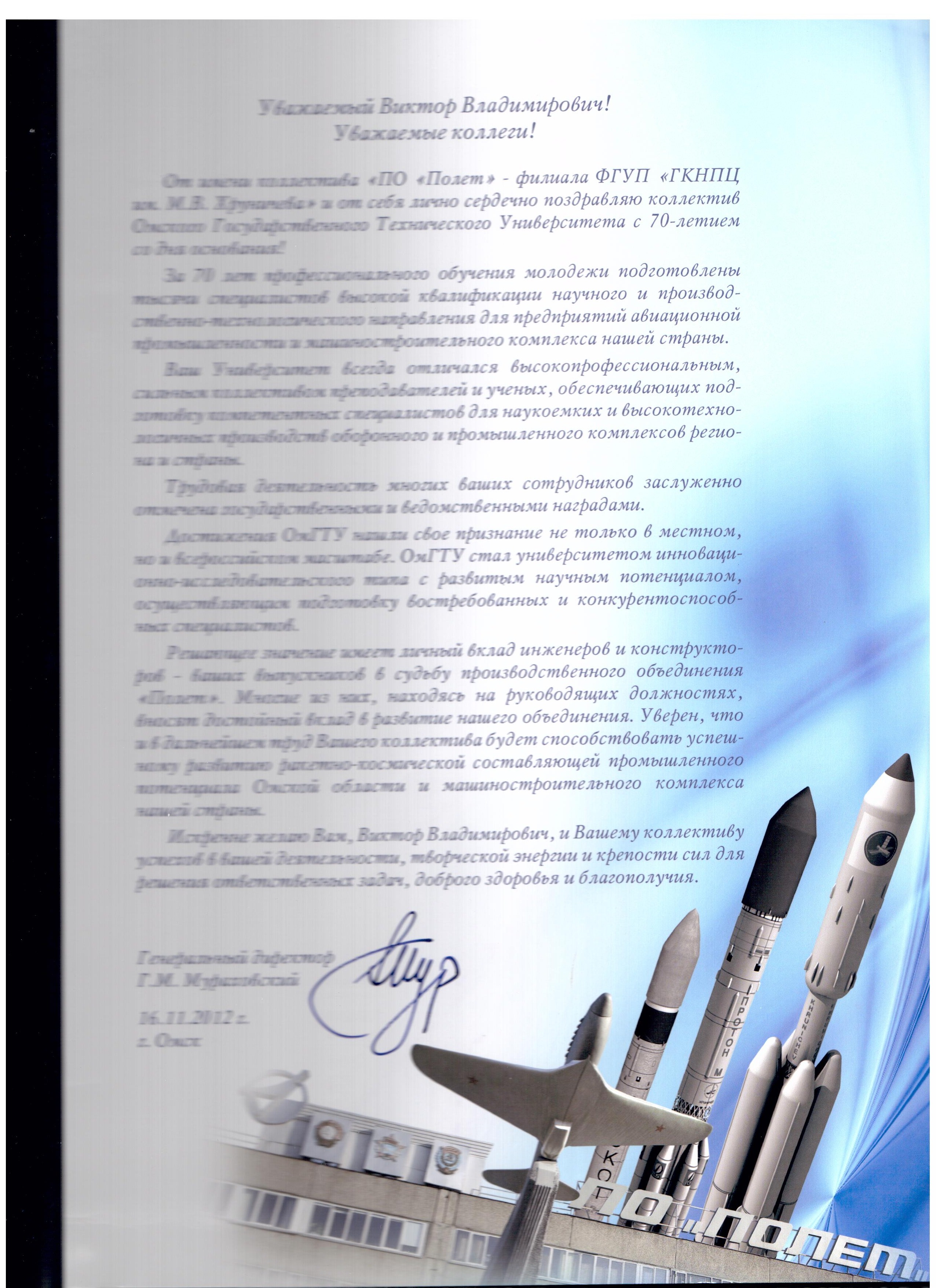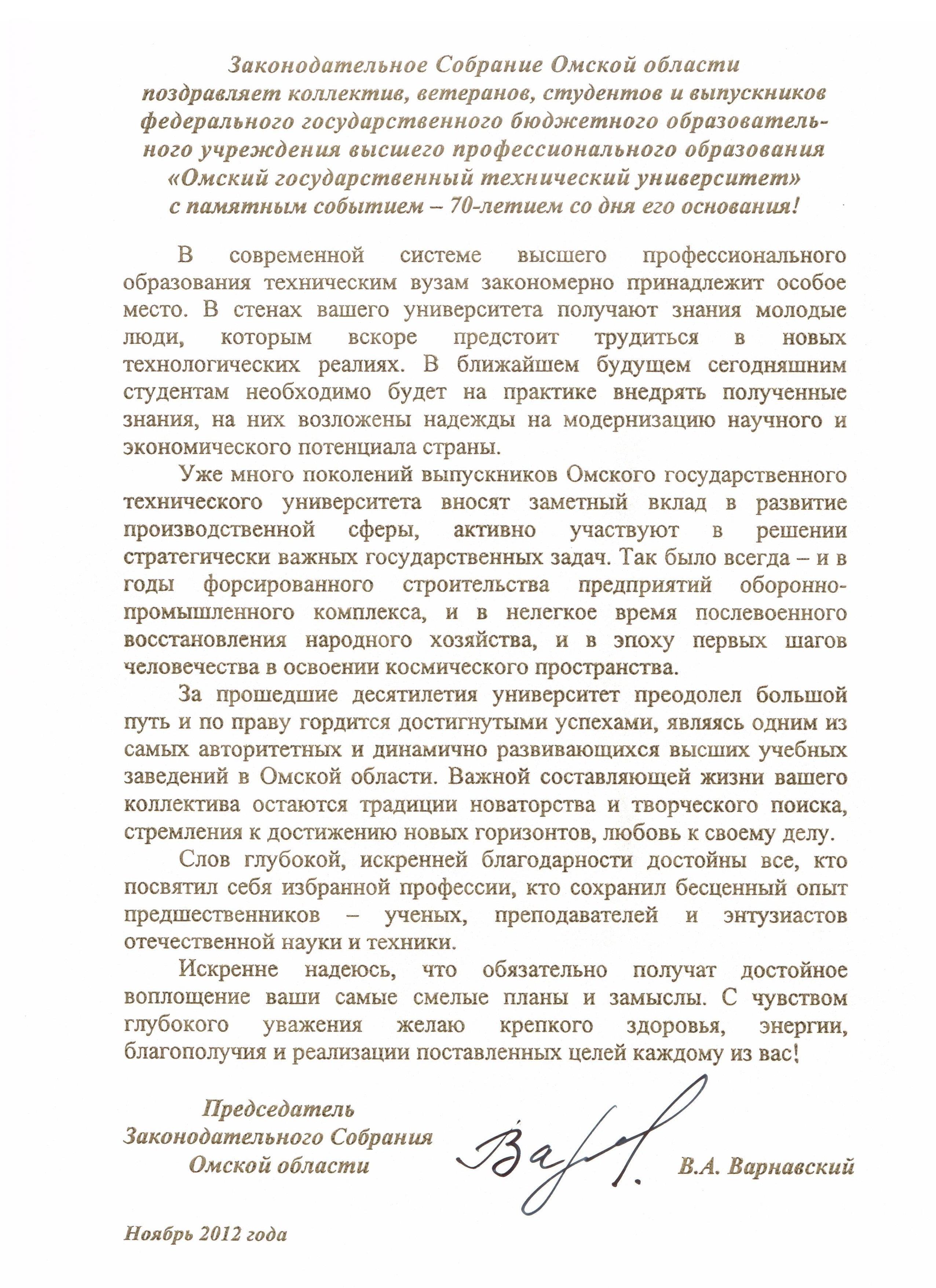 - Юбилей ОмГТУ: Поздравления