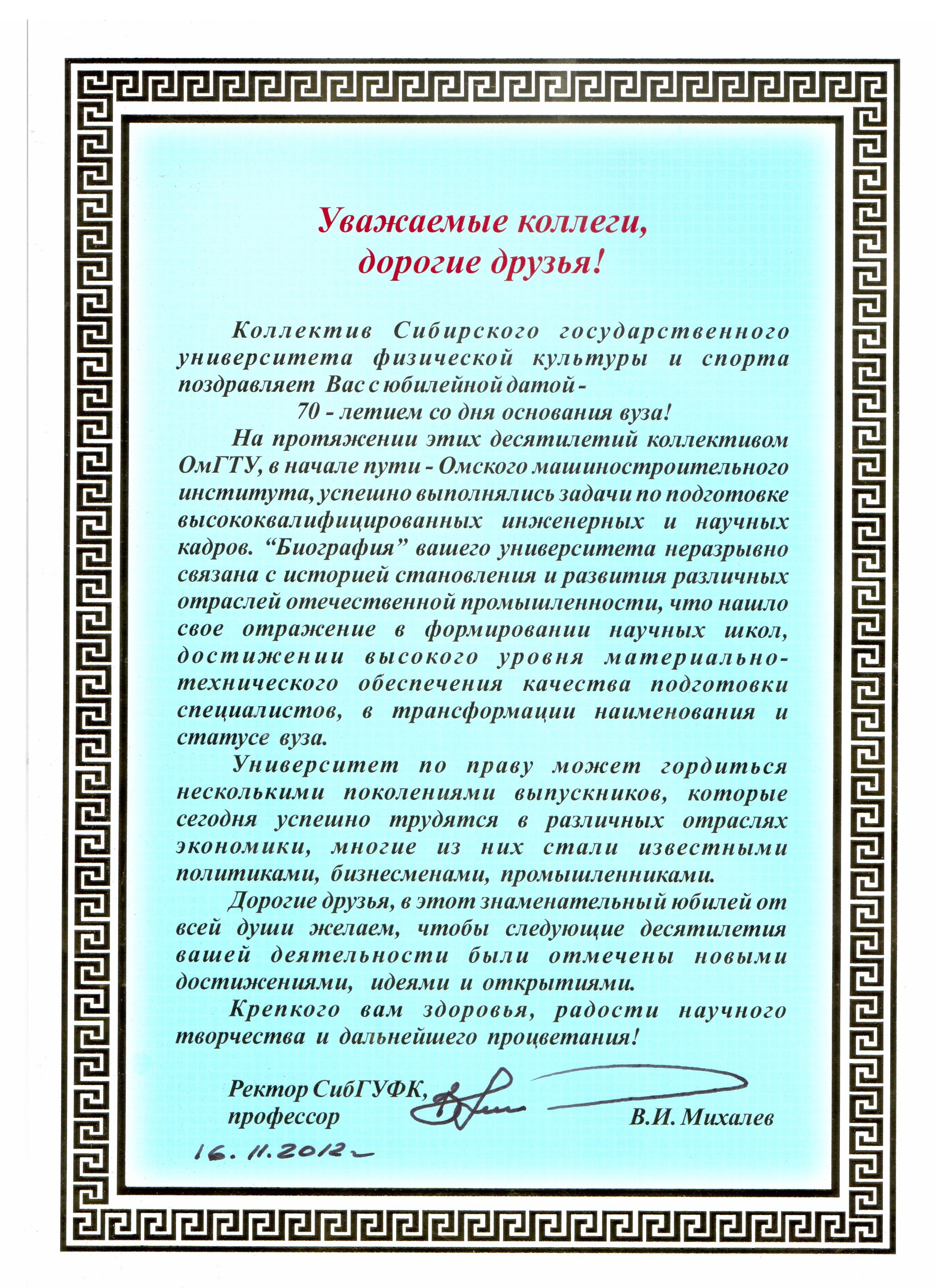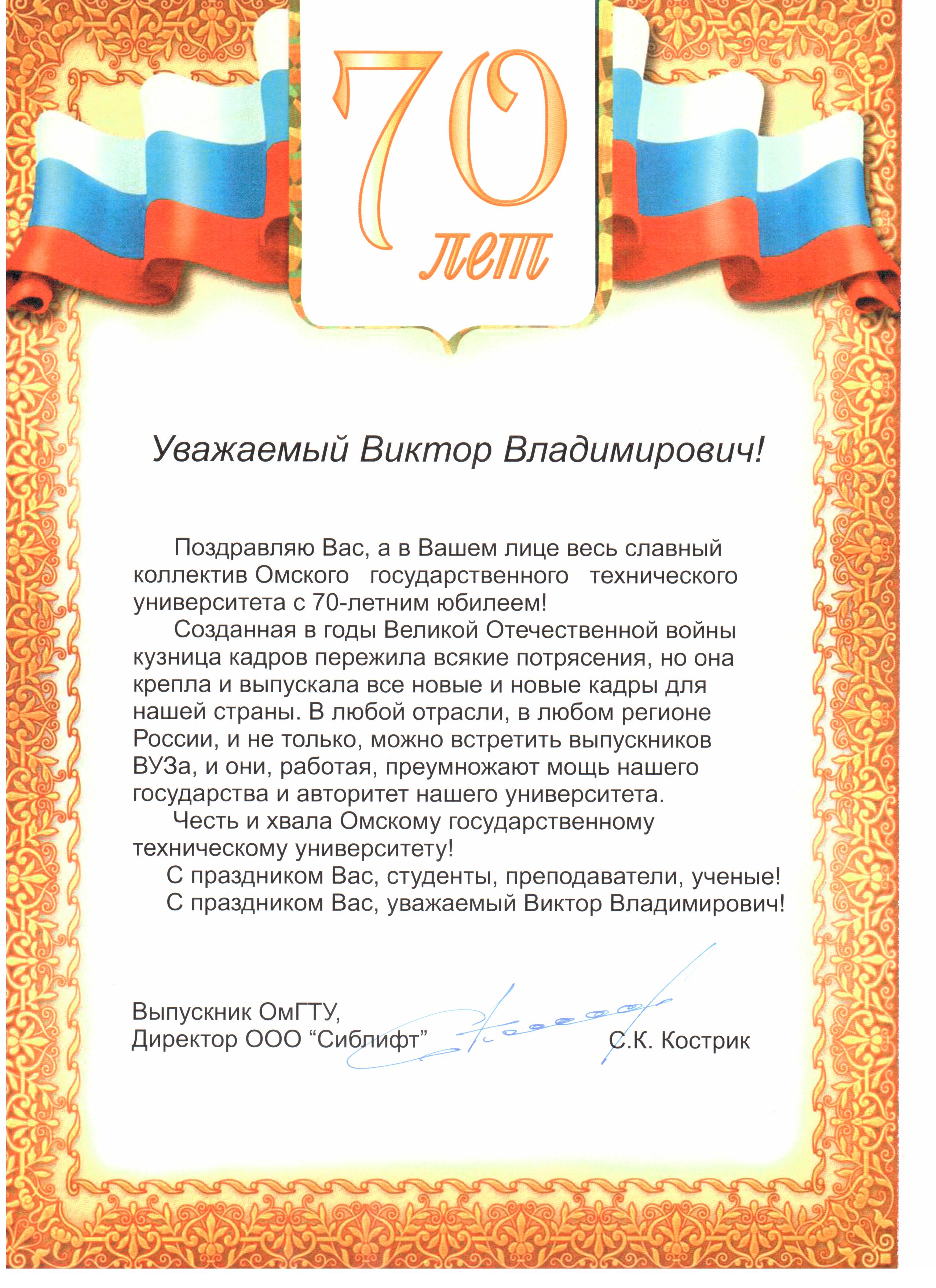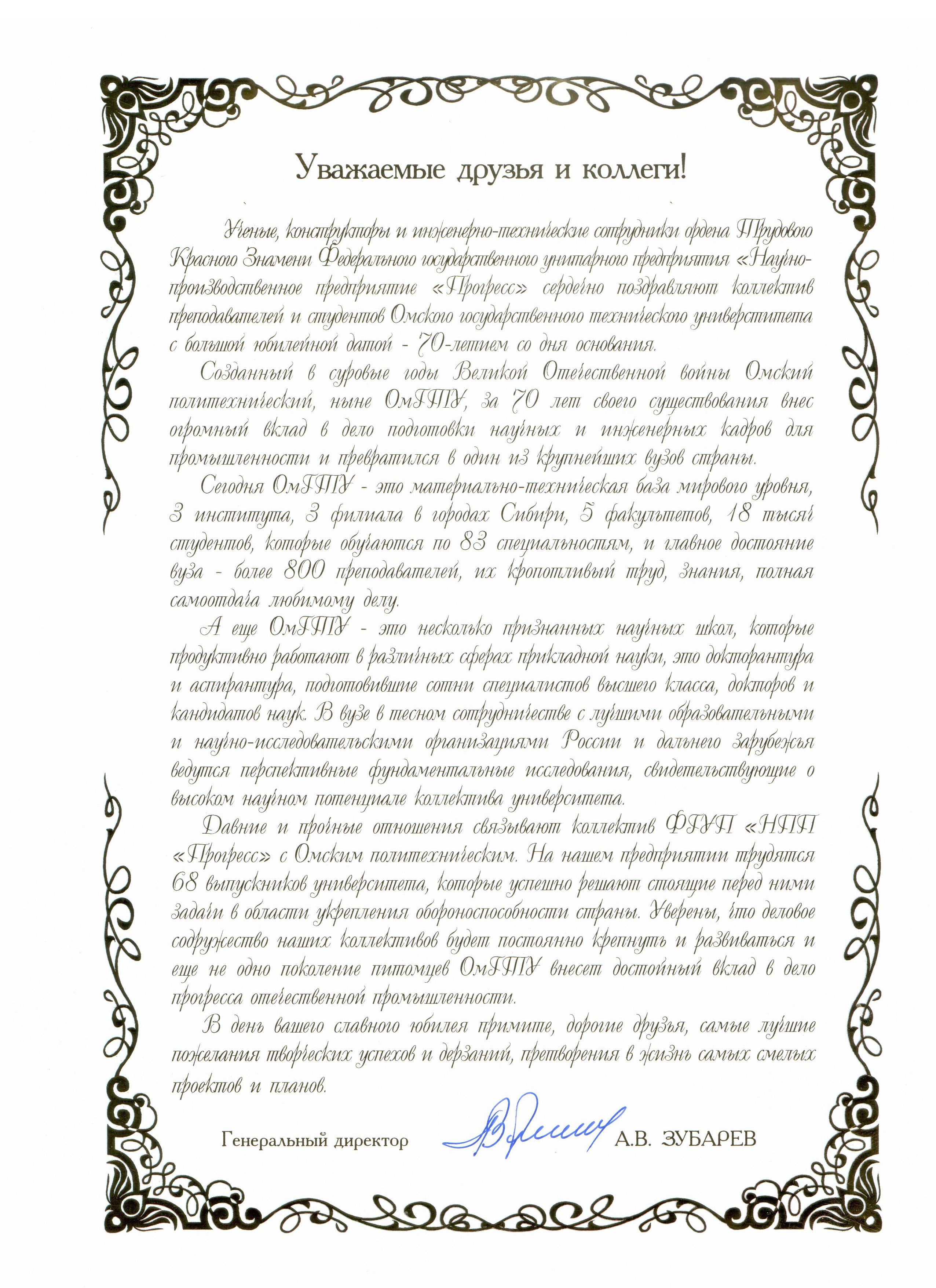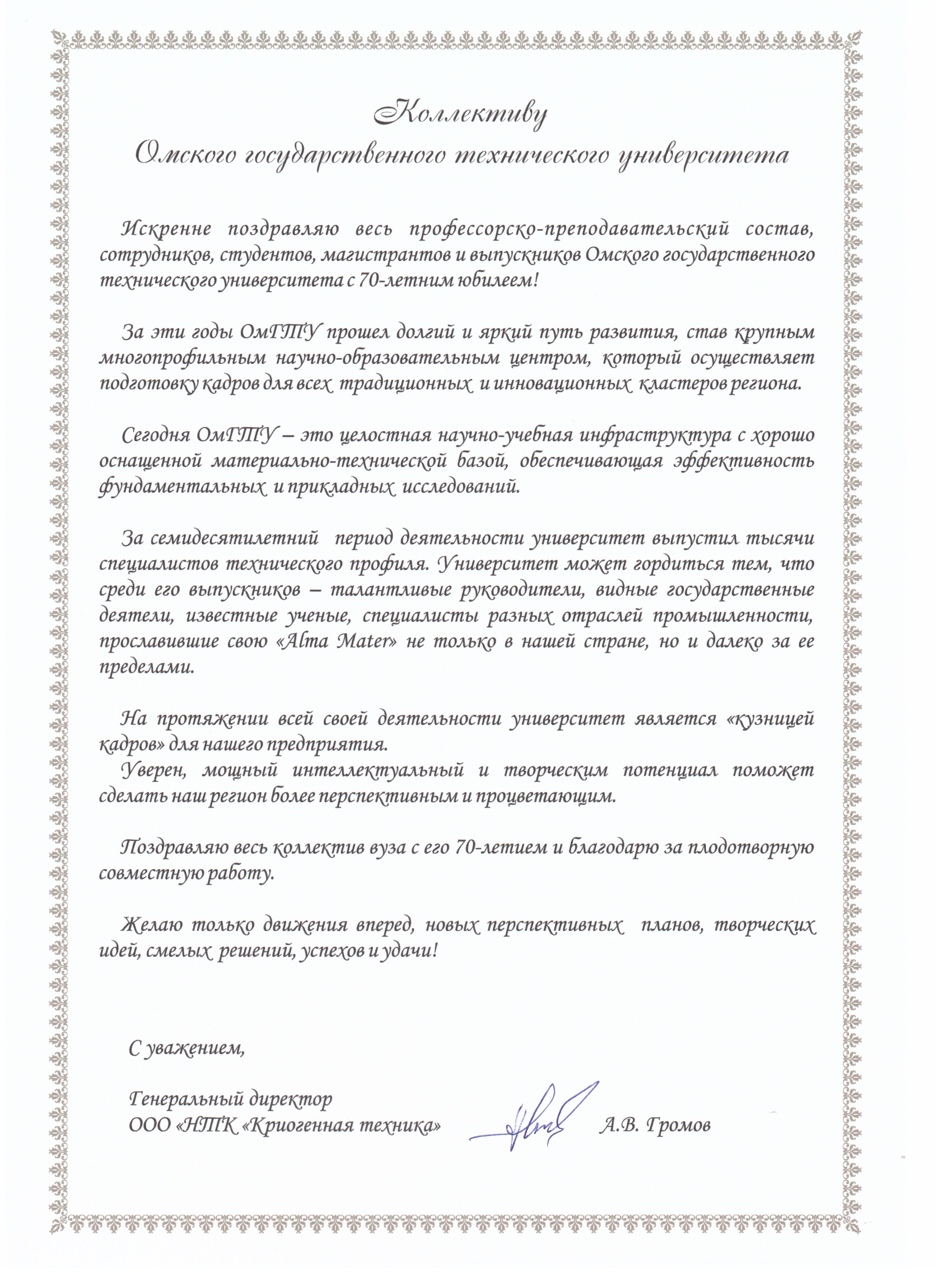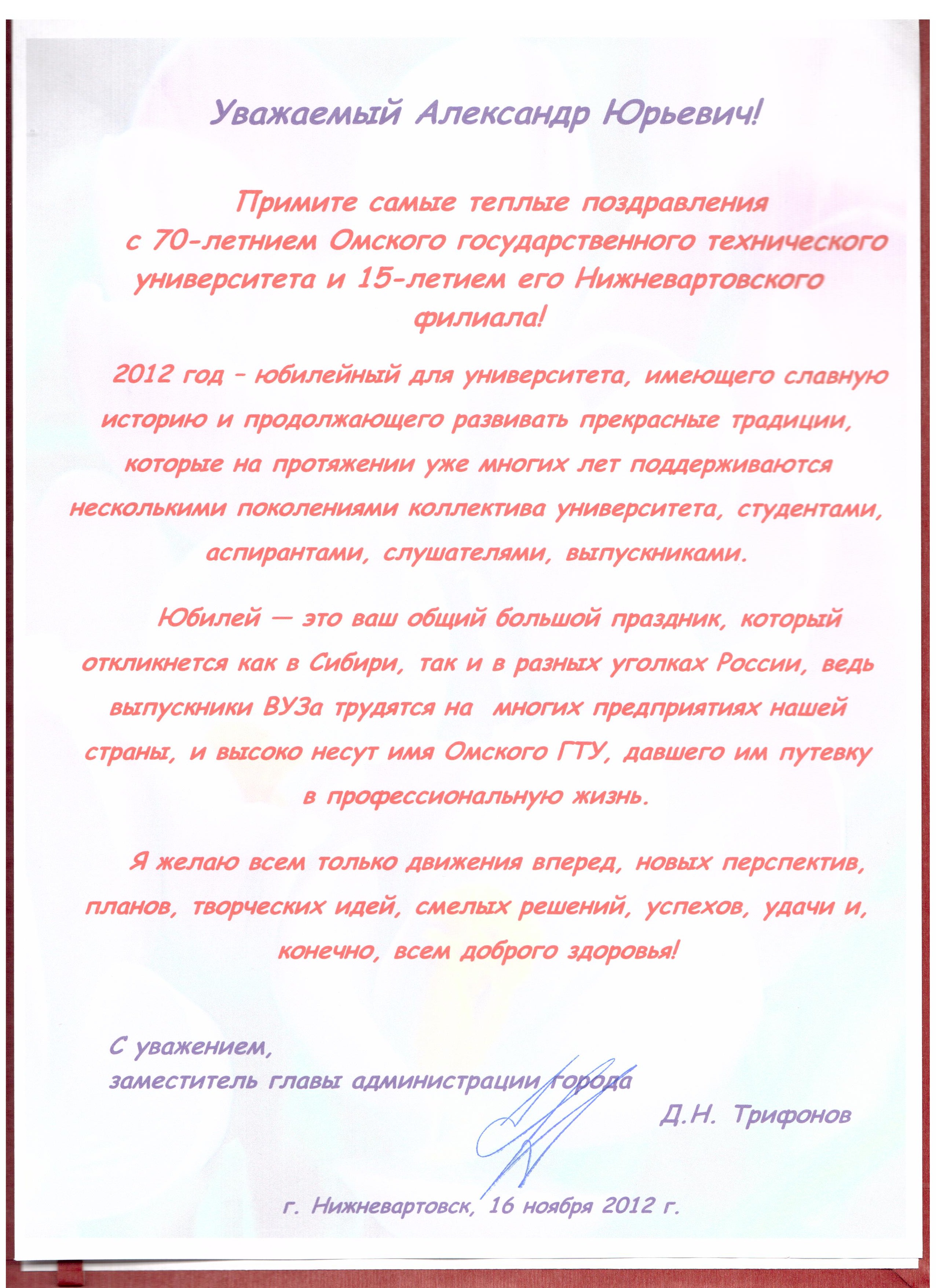 - Юбилей ОмГТУ: Поздравления