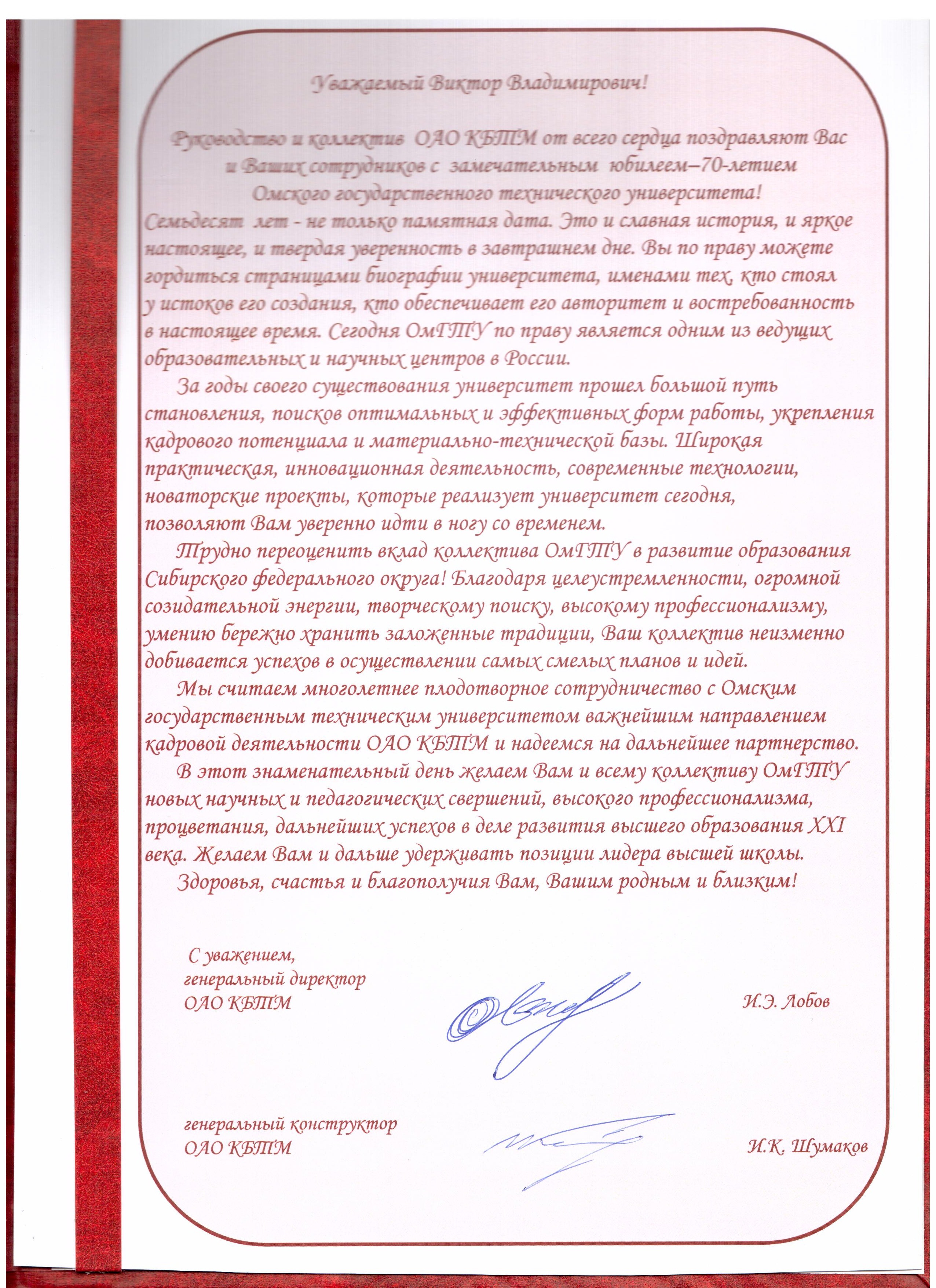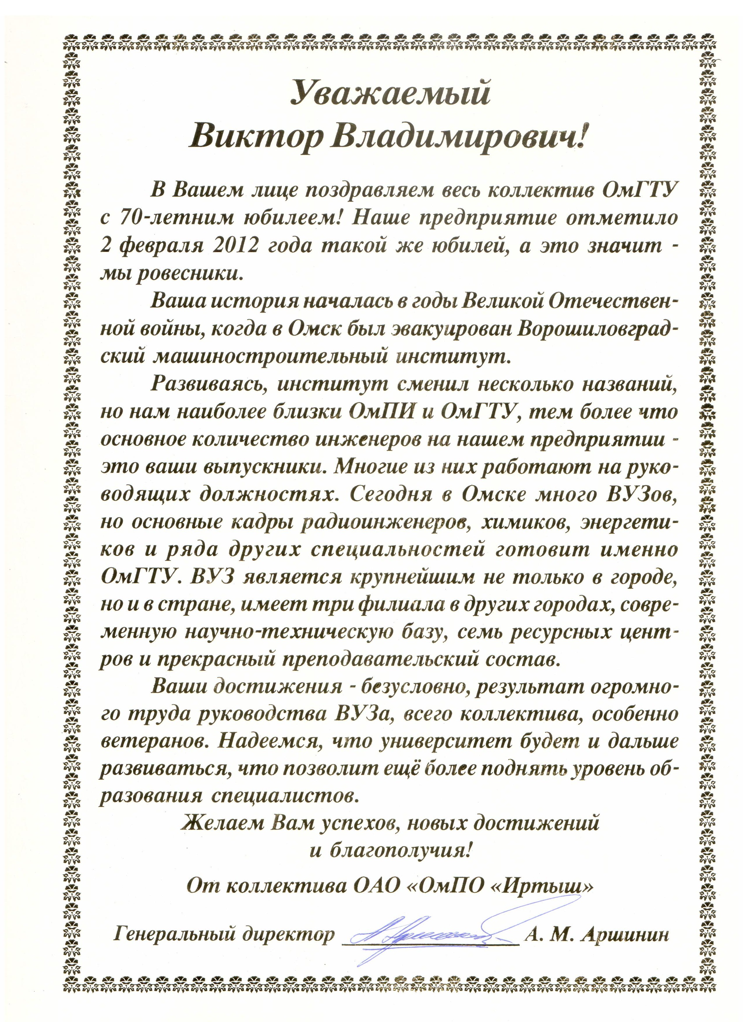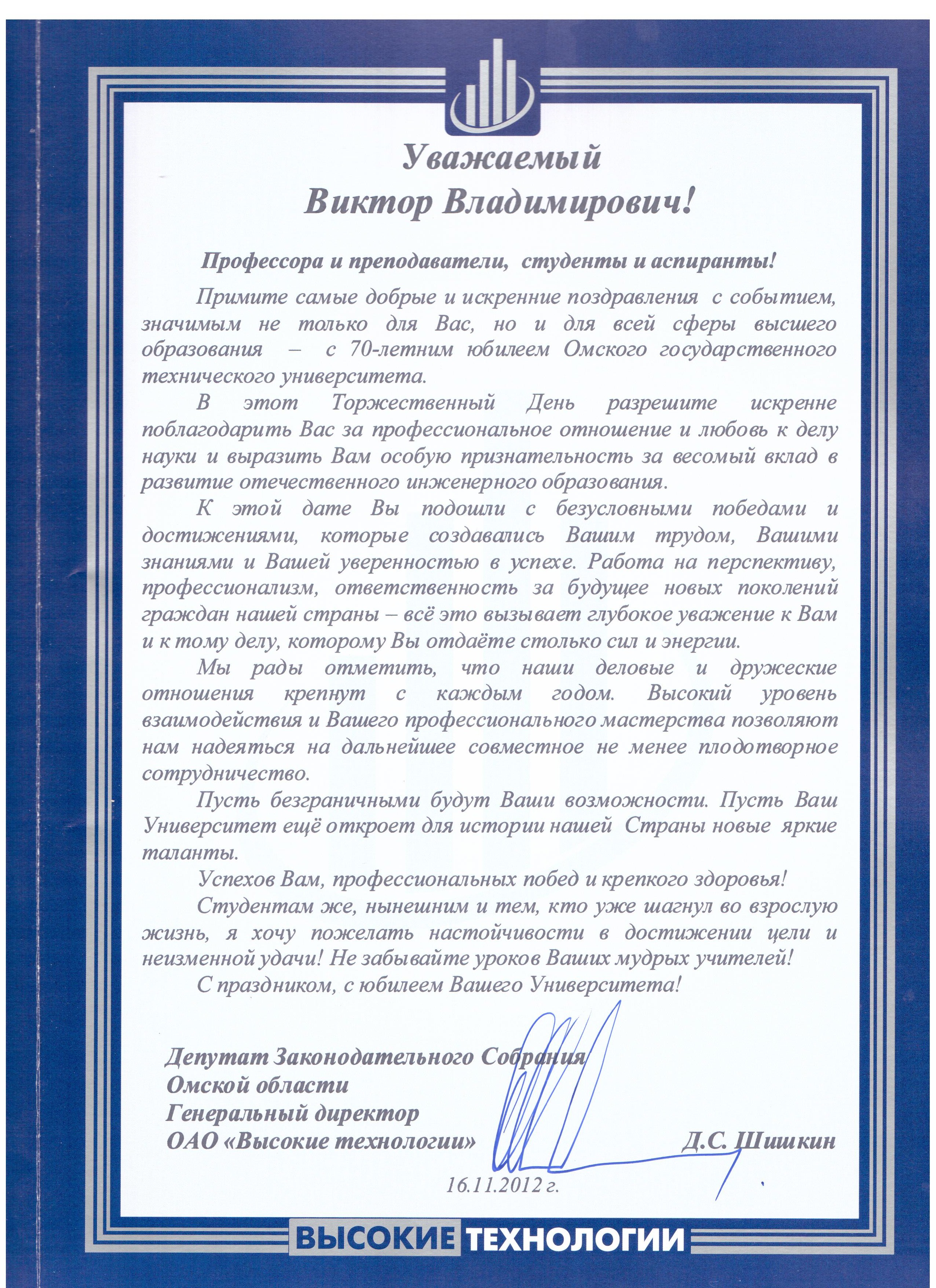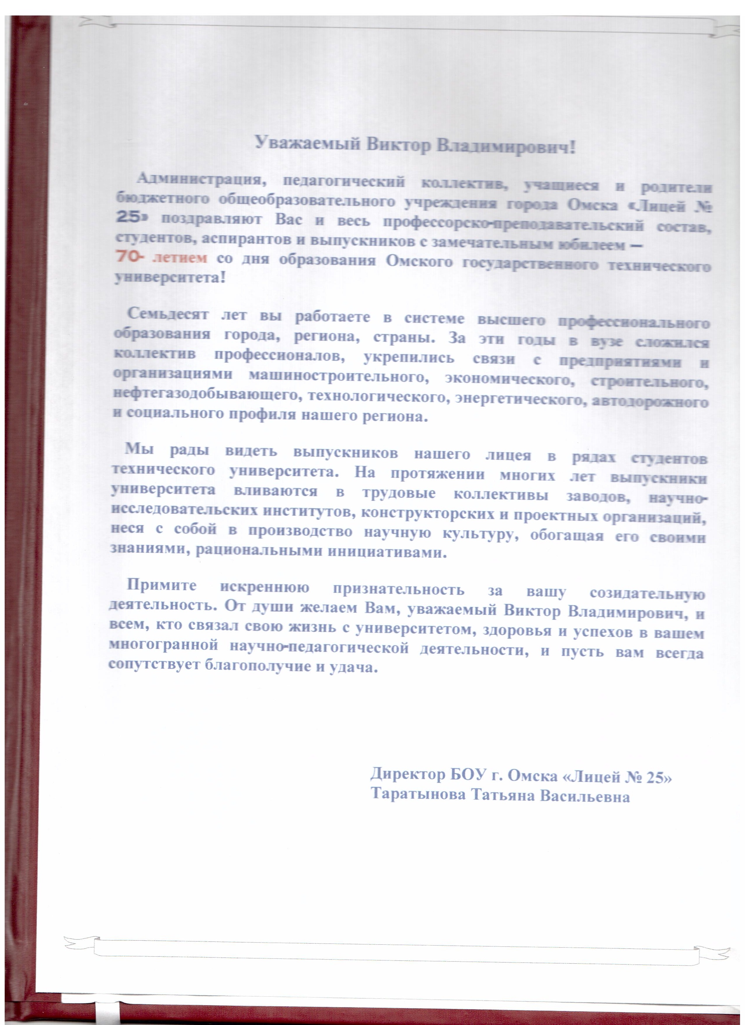- Юбилей ОмГТУ: Поздравления