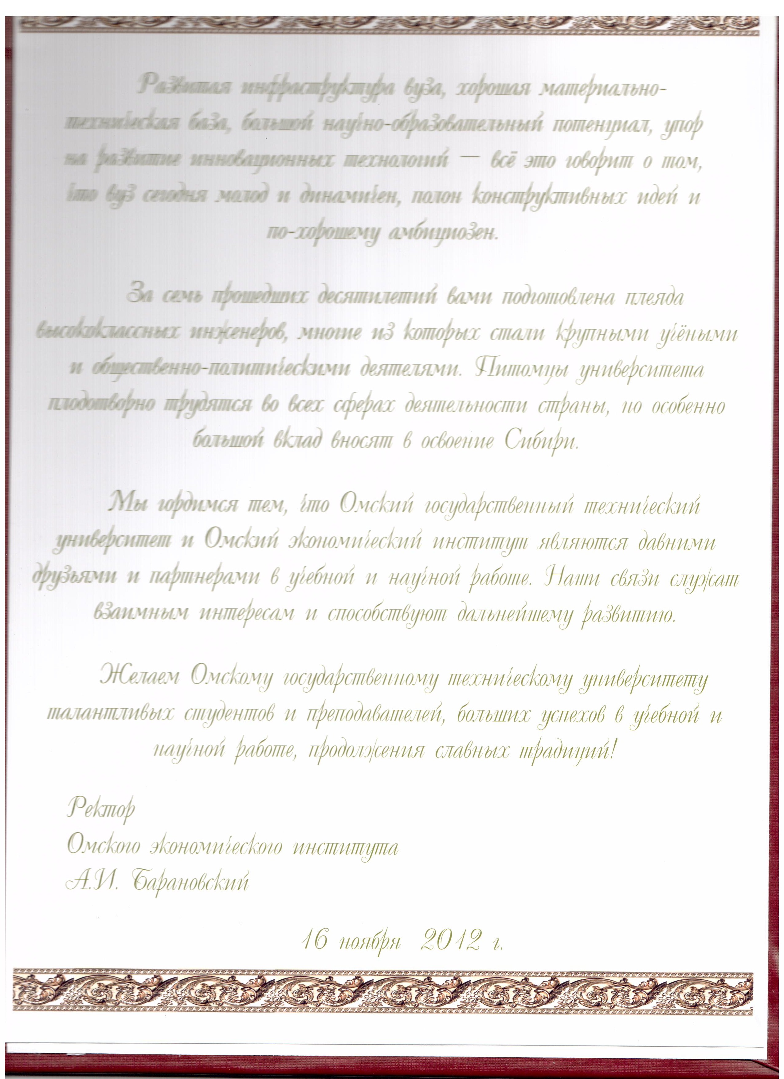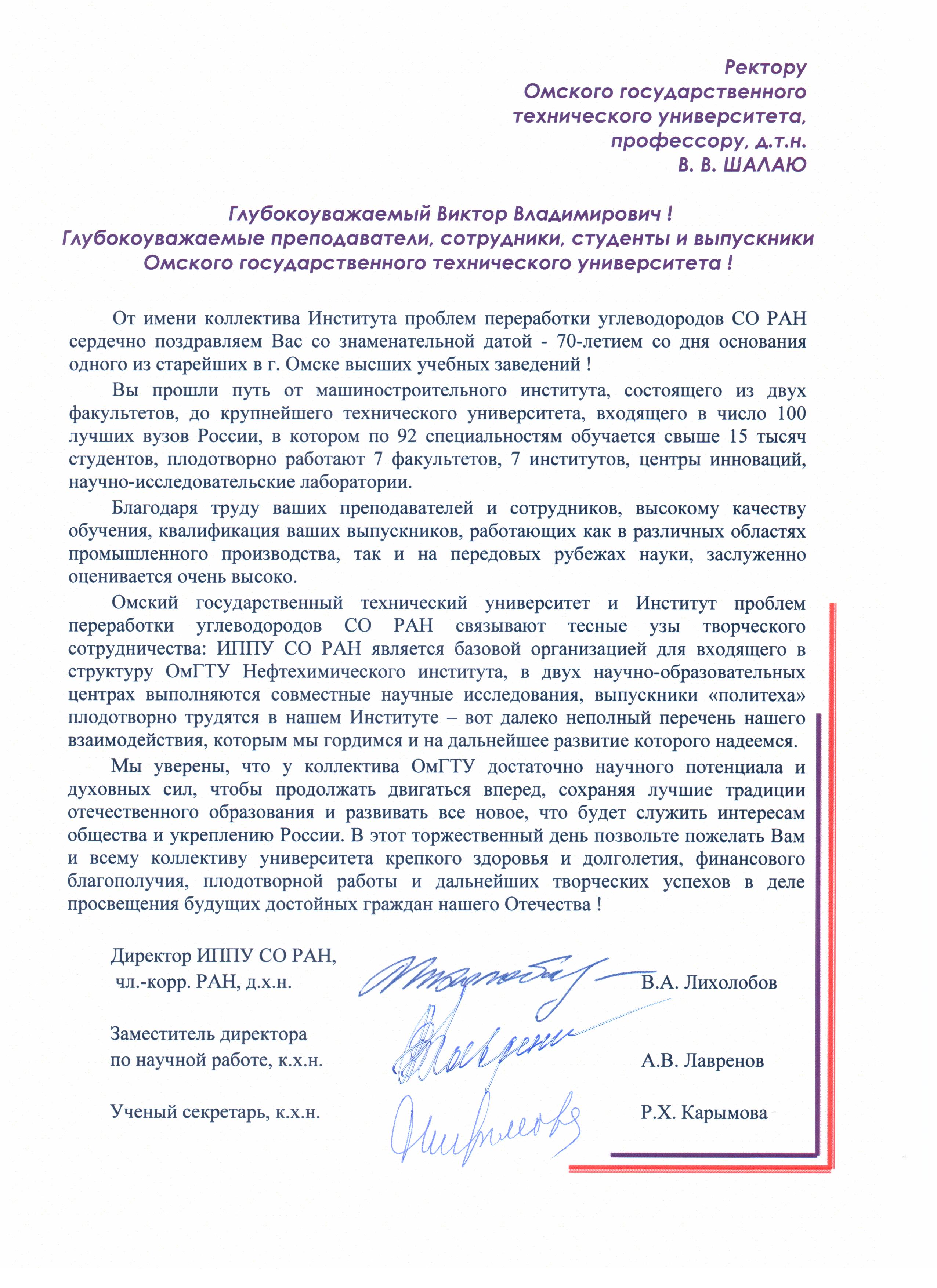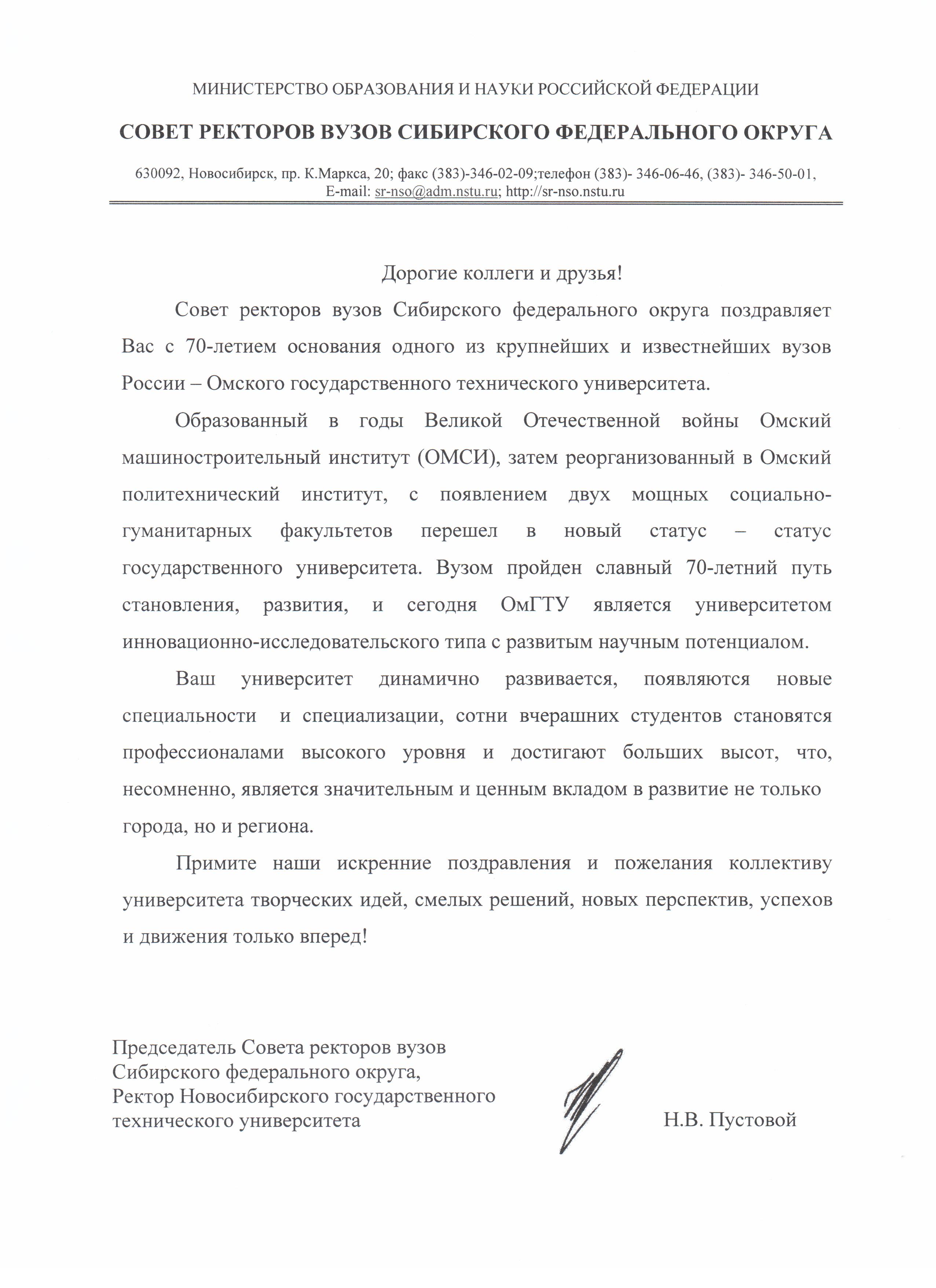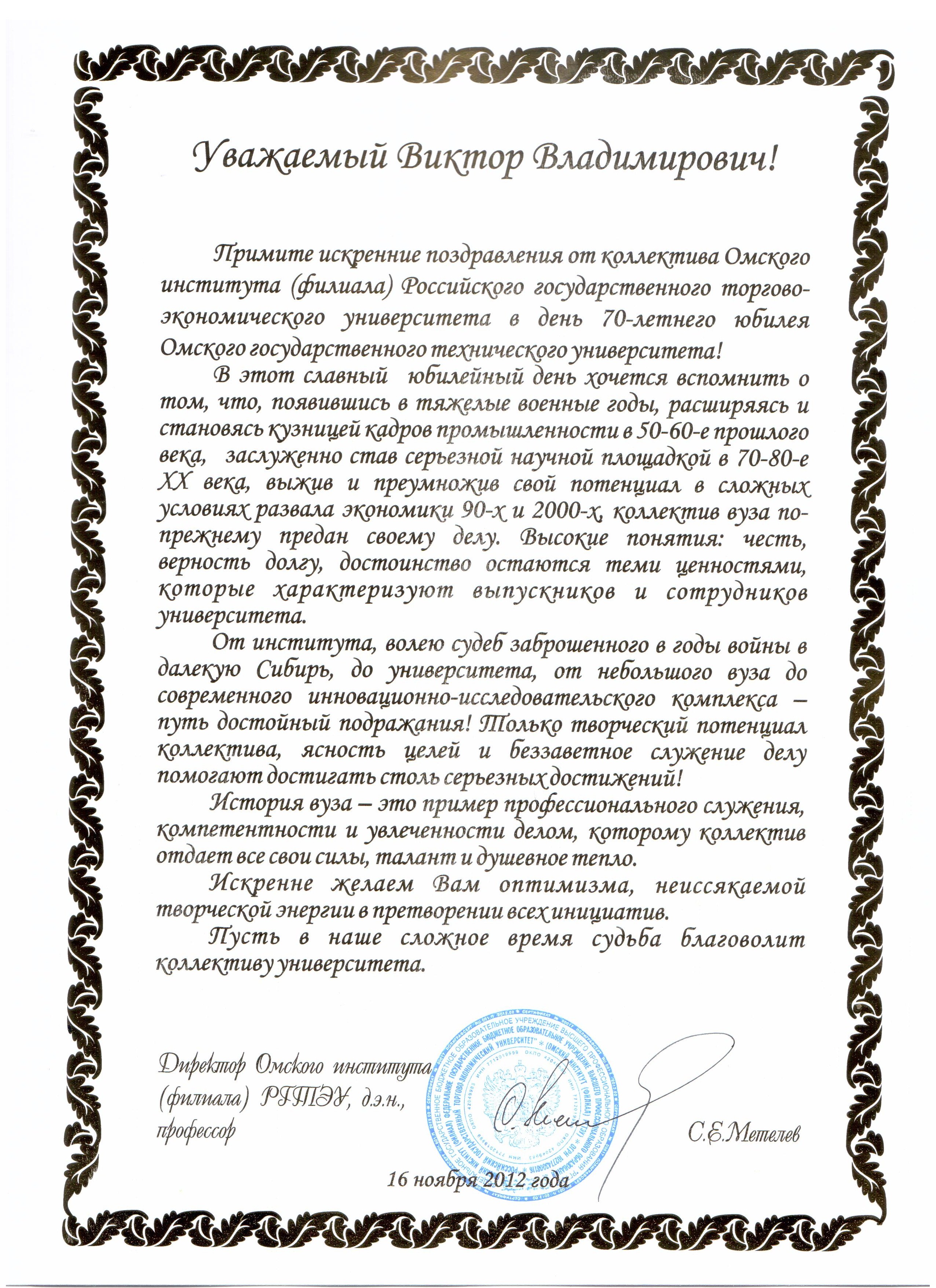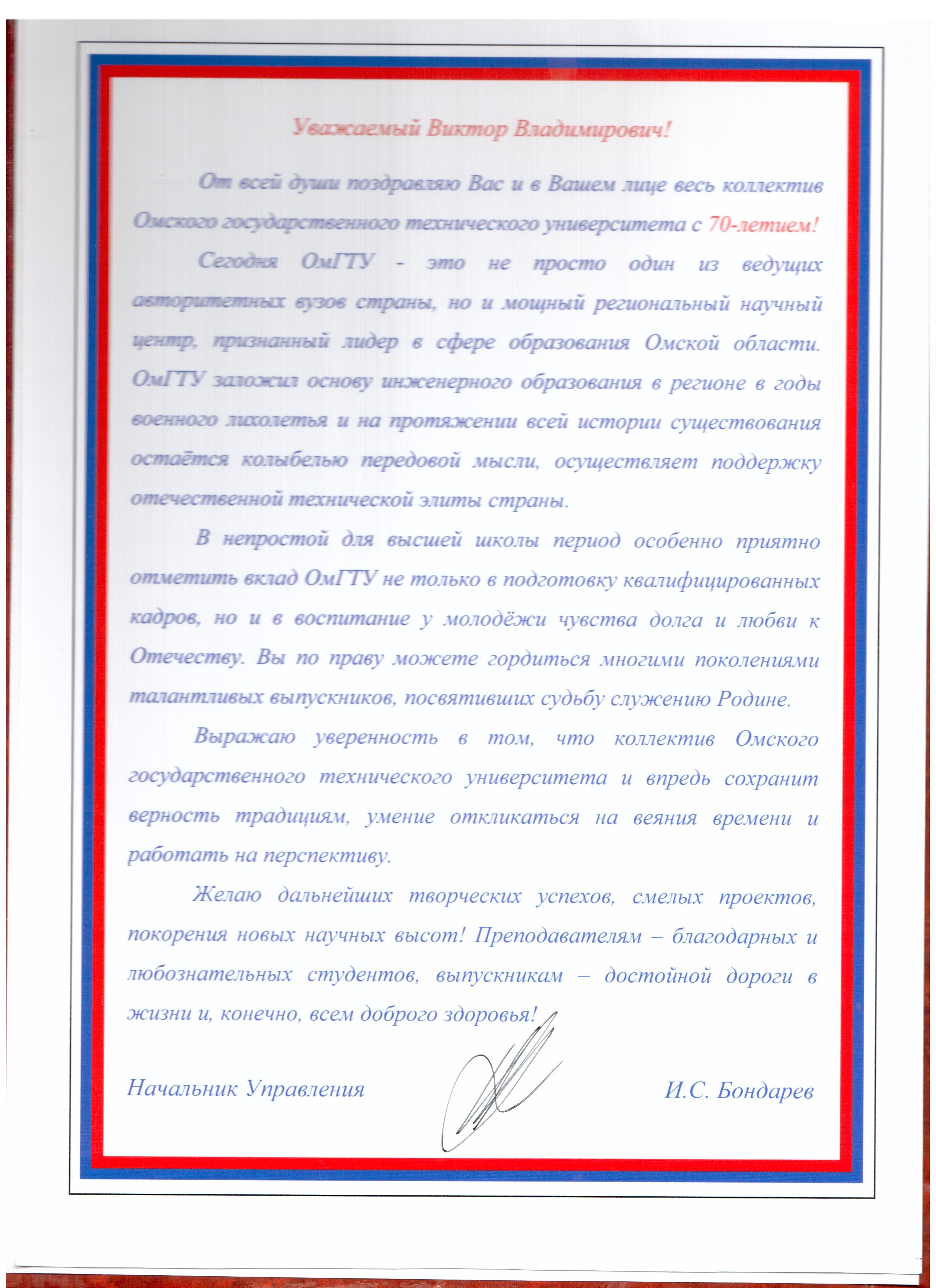 - Юбилей ОмГТУ: Поздравления
