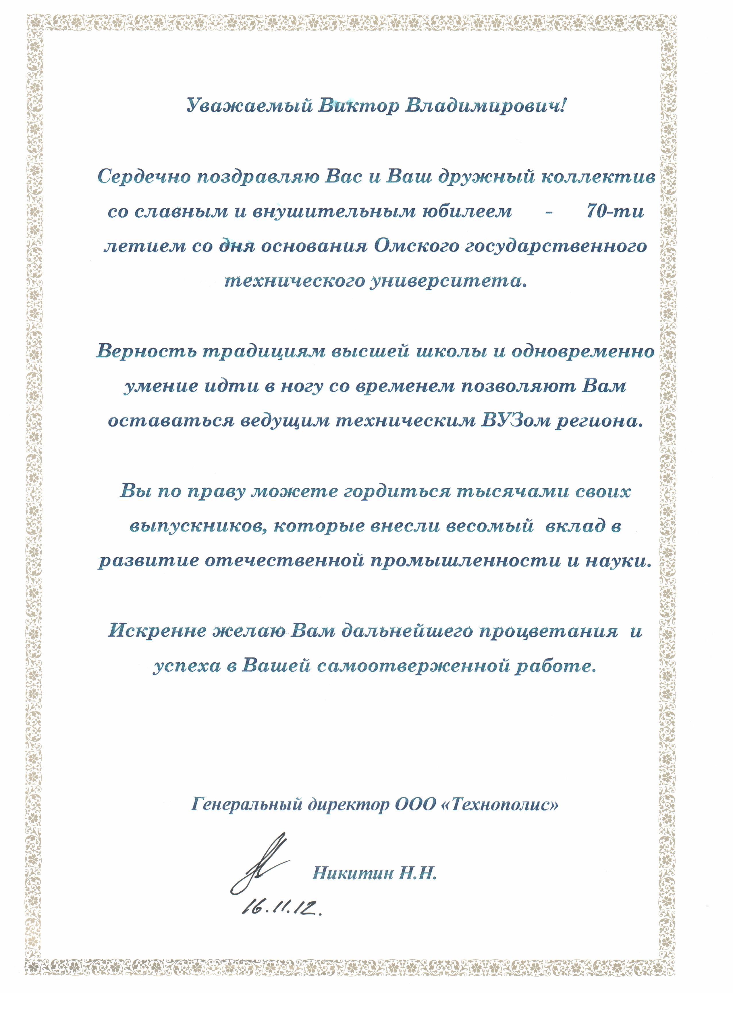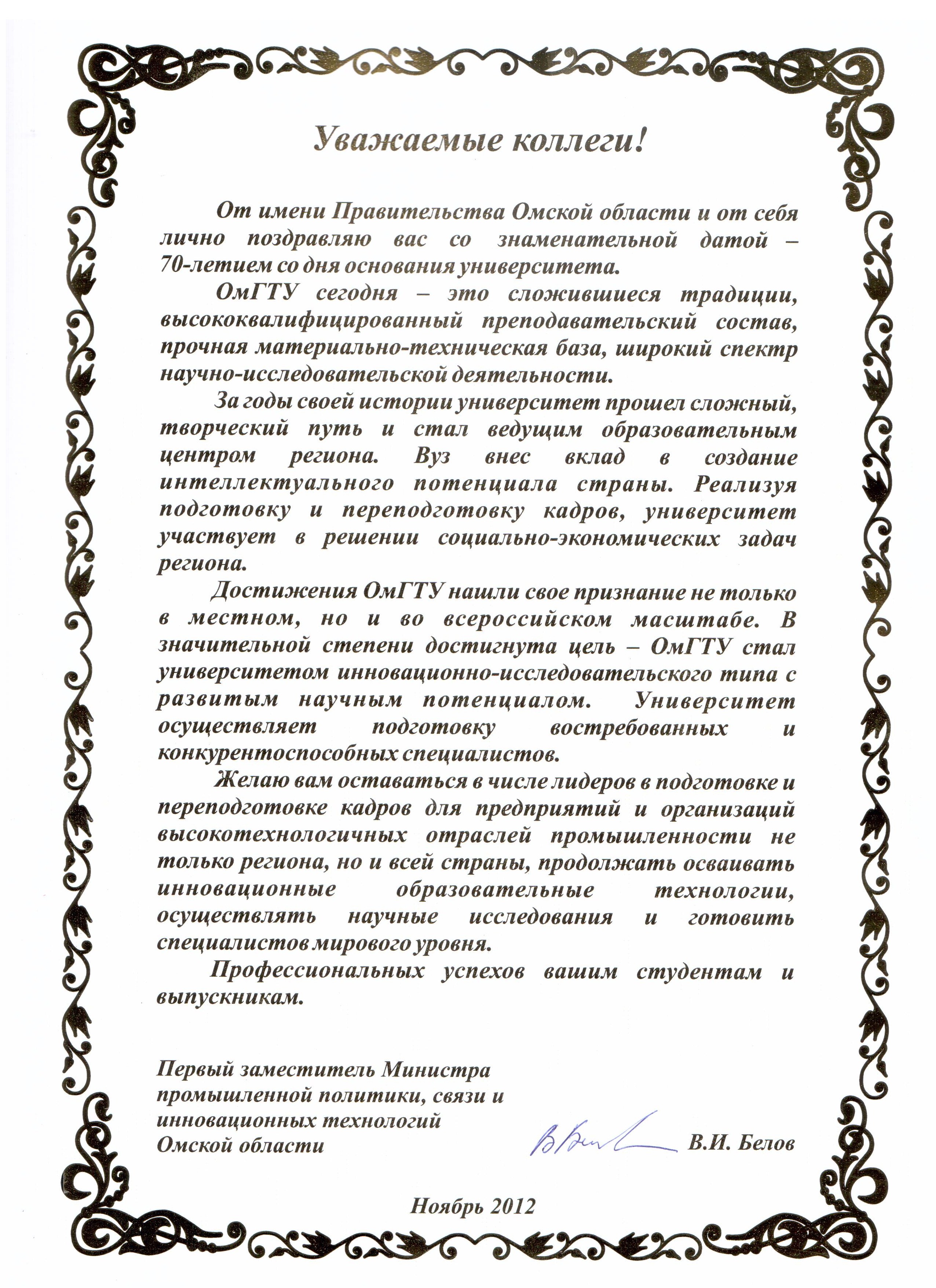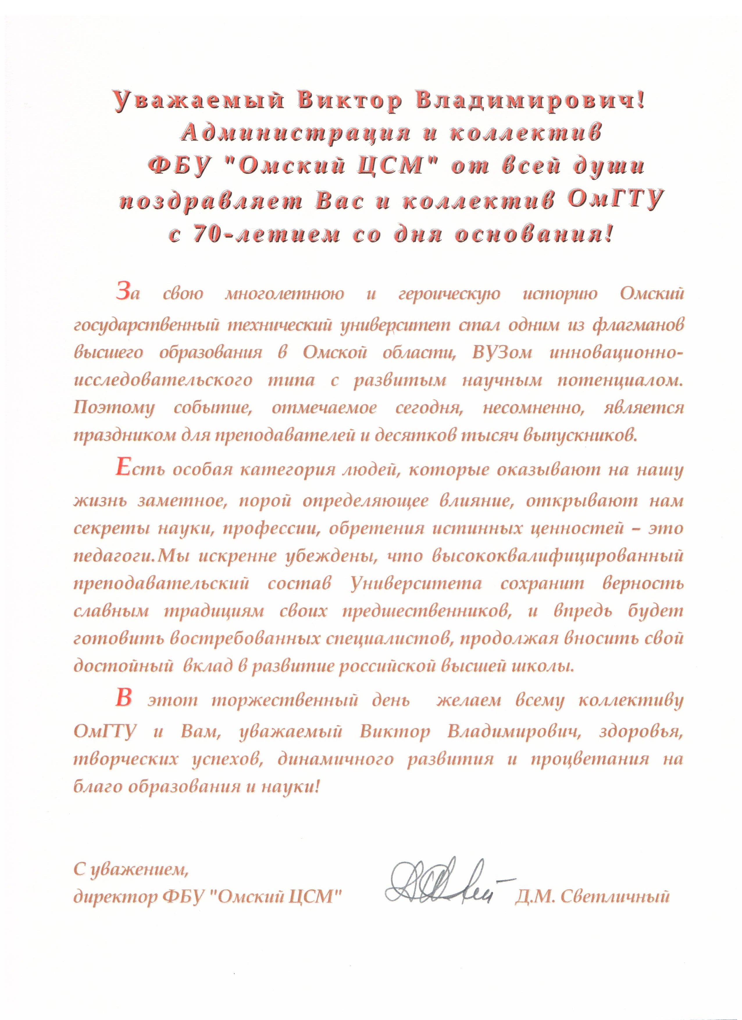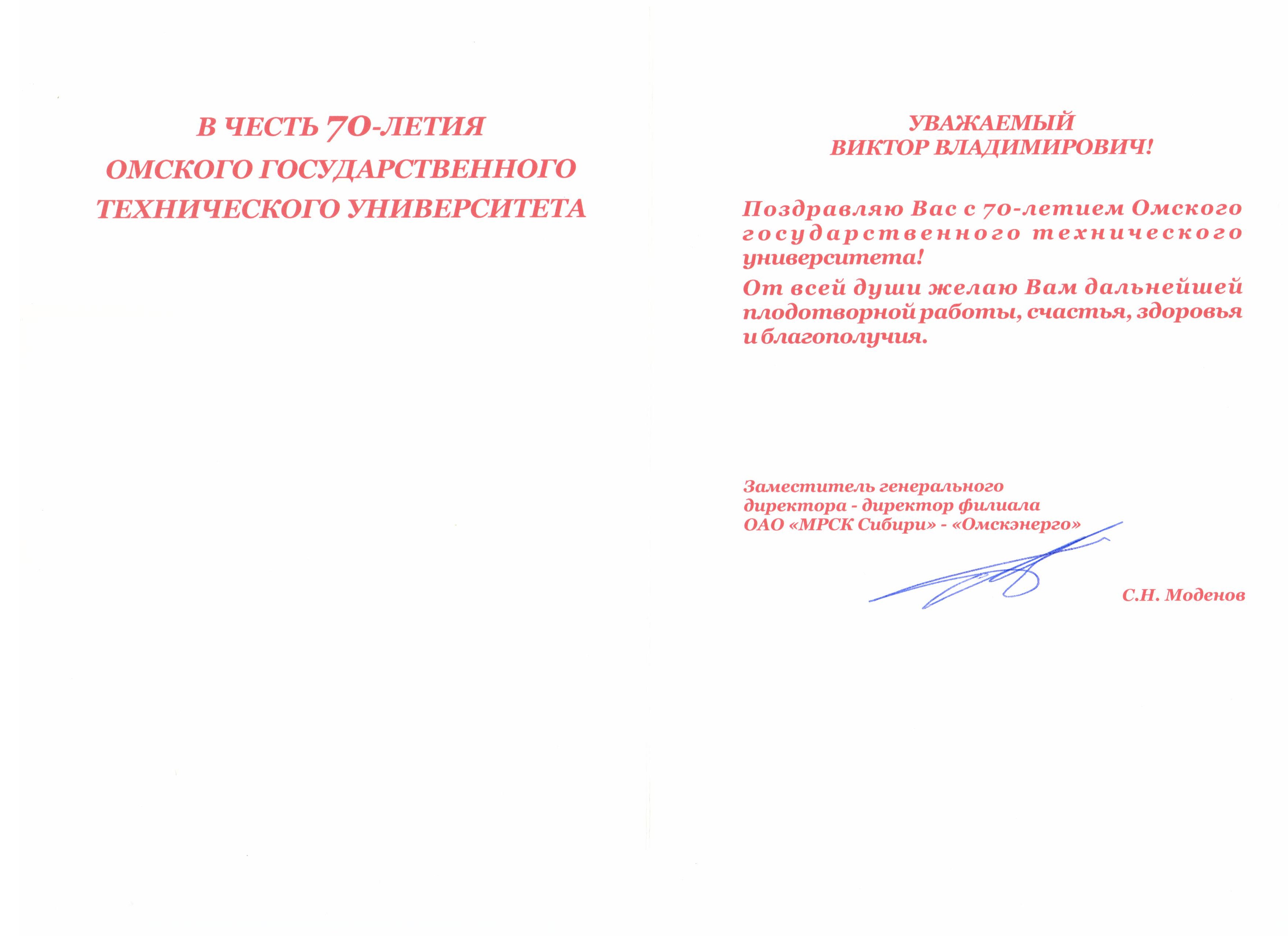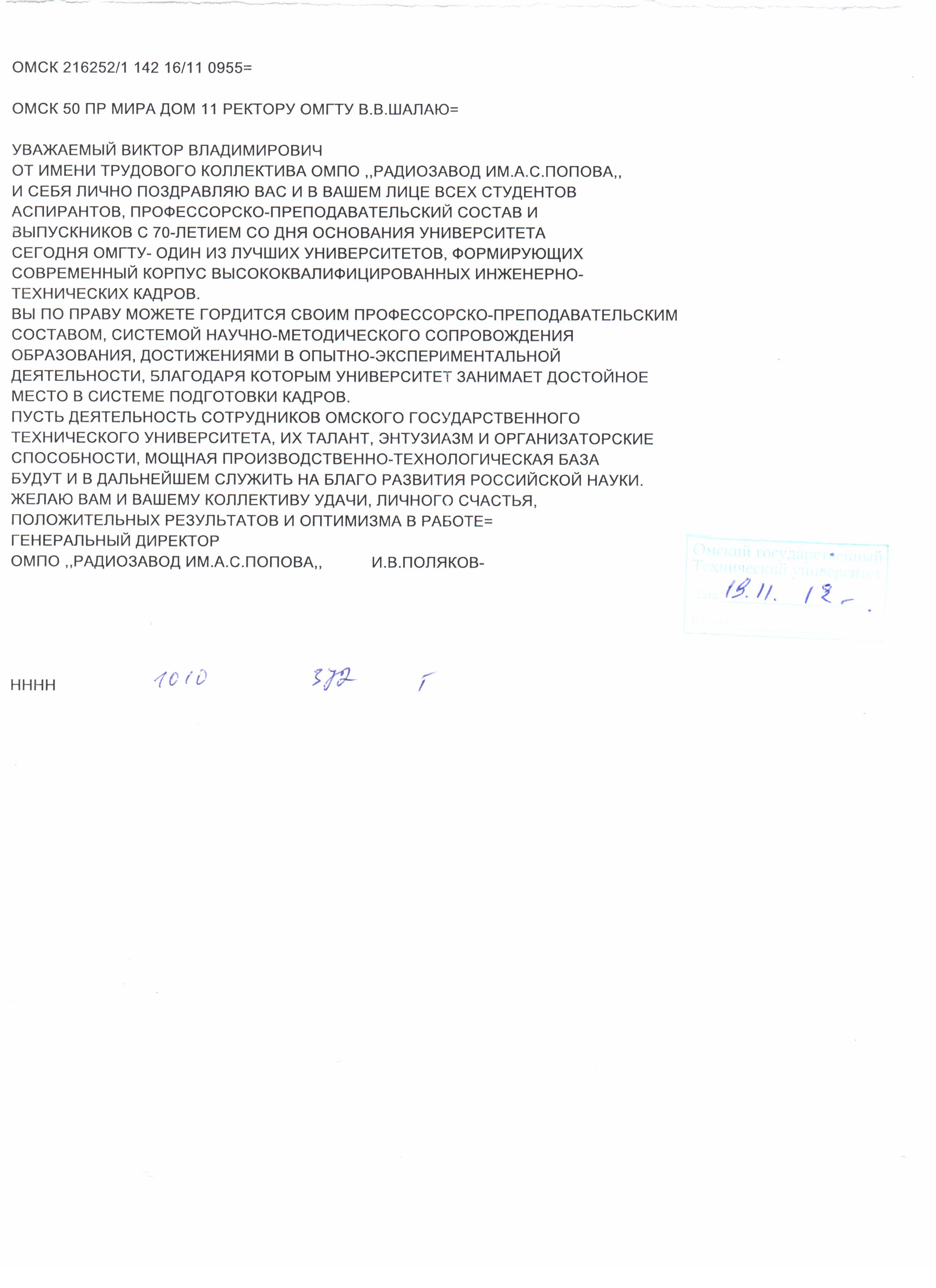 - Юбилей ОмГТУ: Поздравления