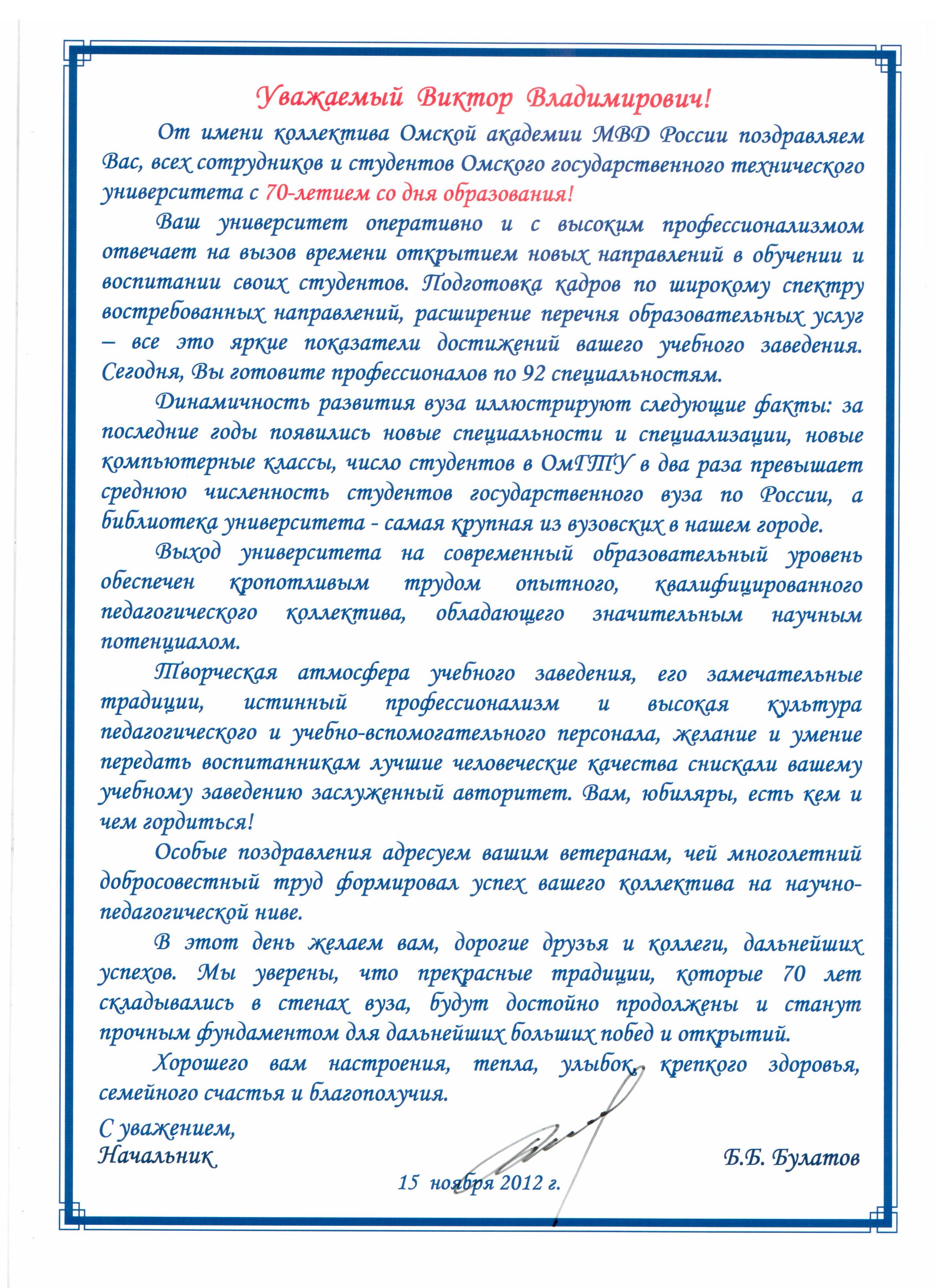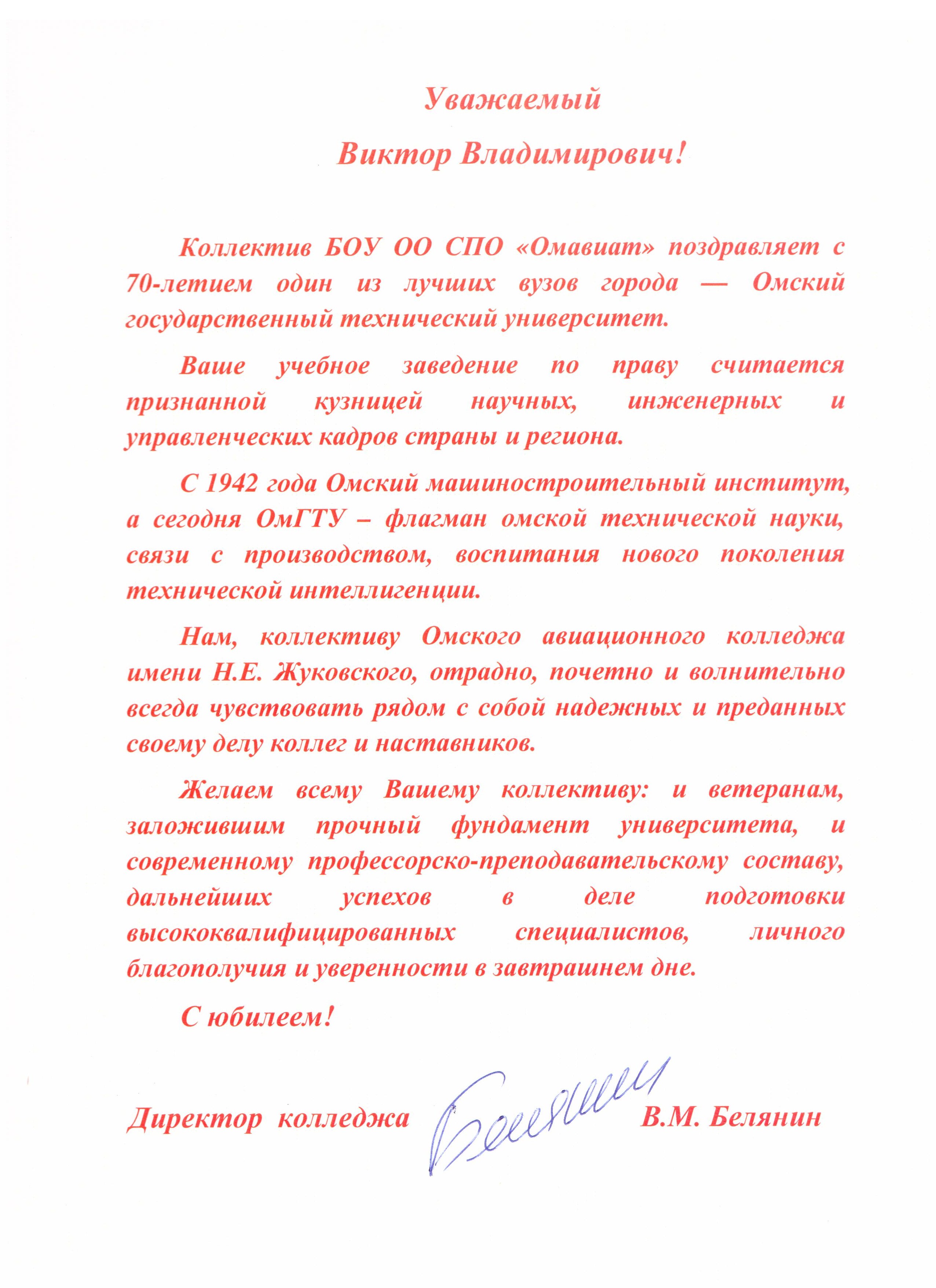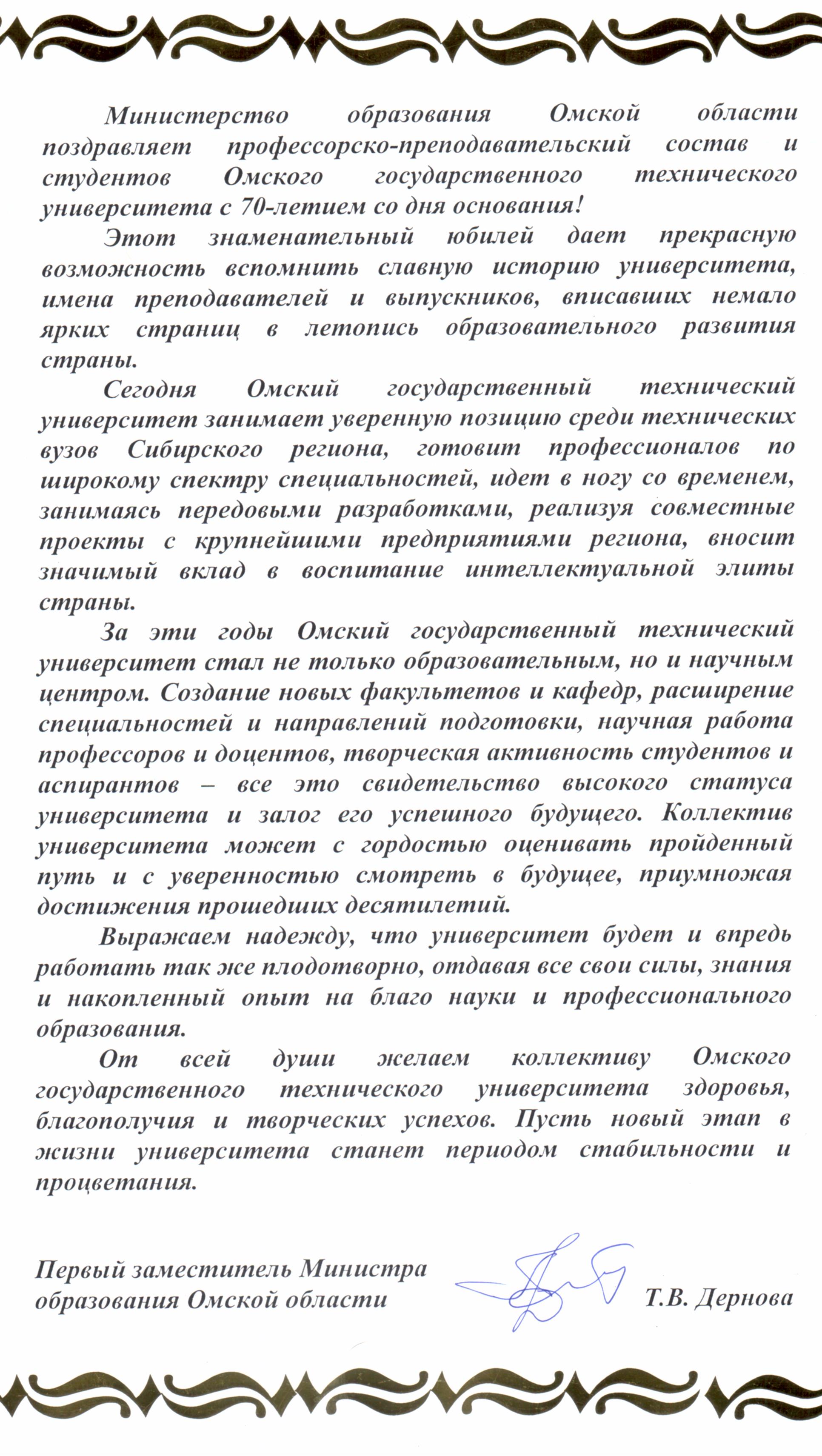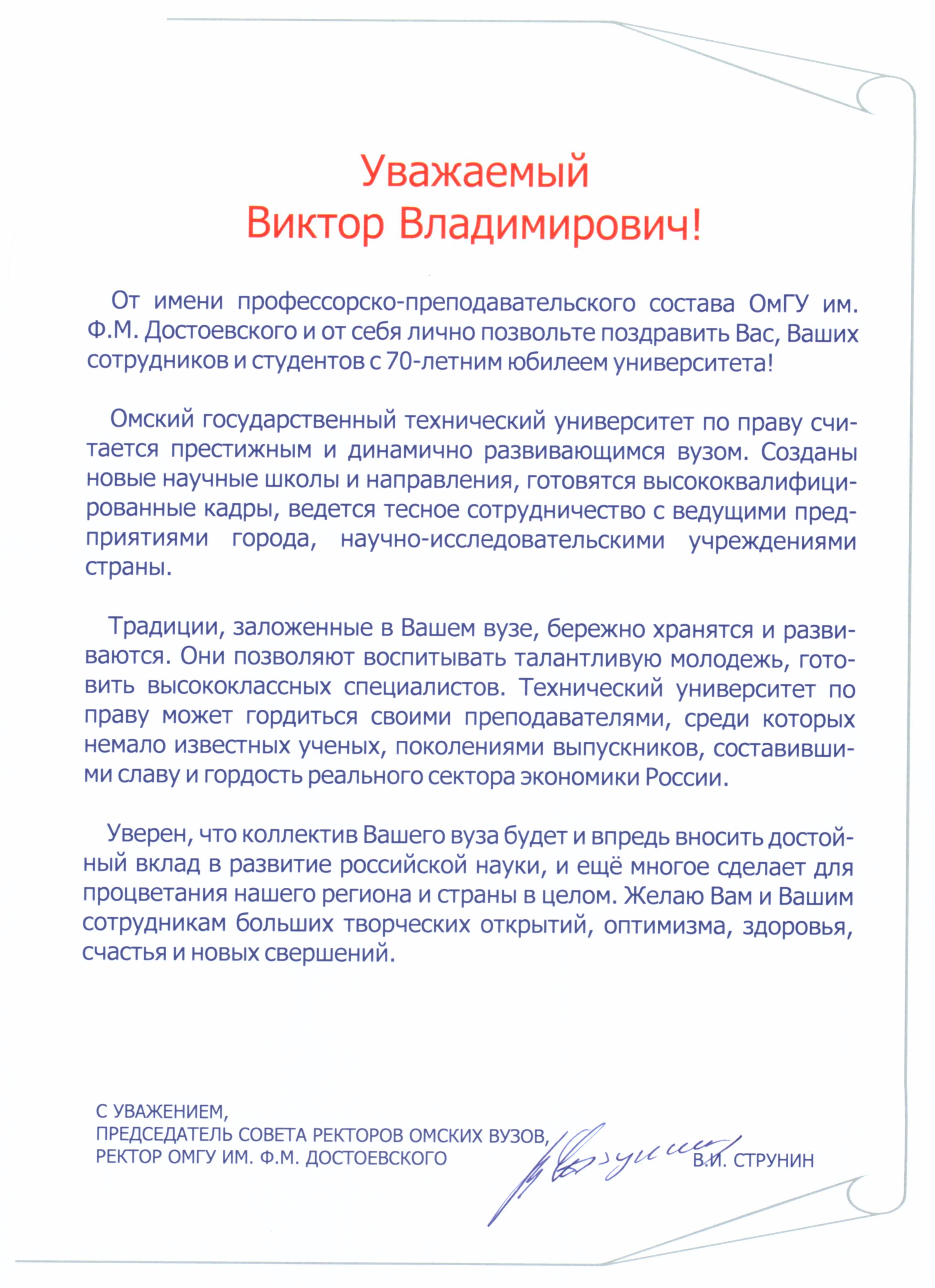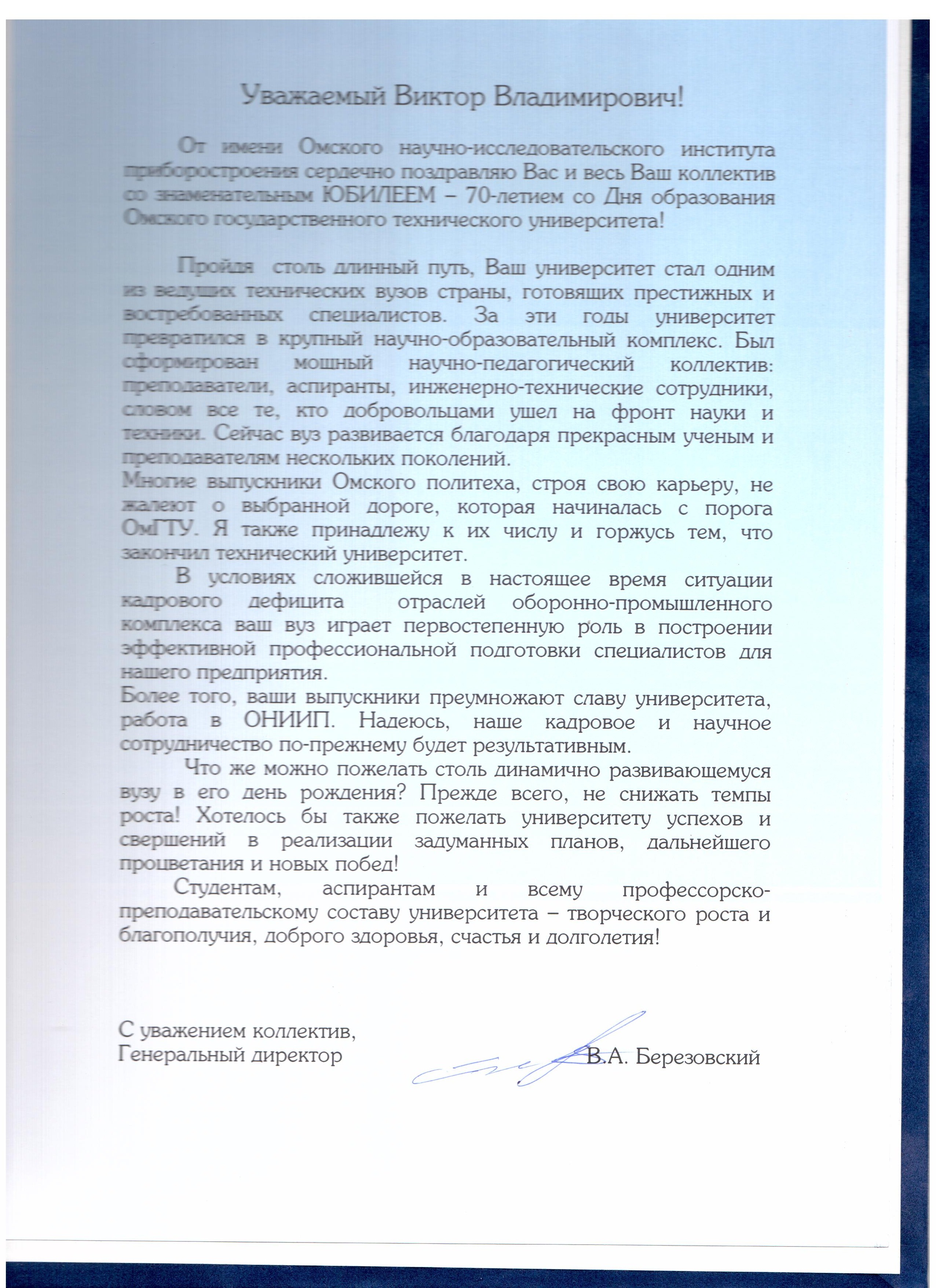 - Юбилей ОмГТУ: Поздравления