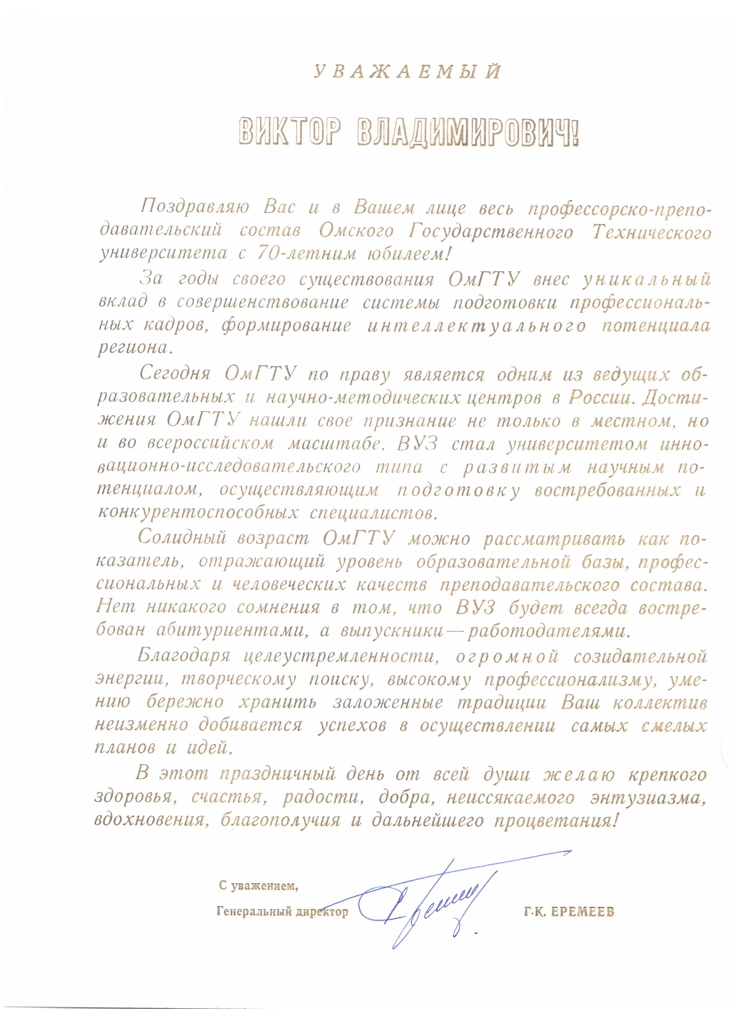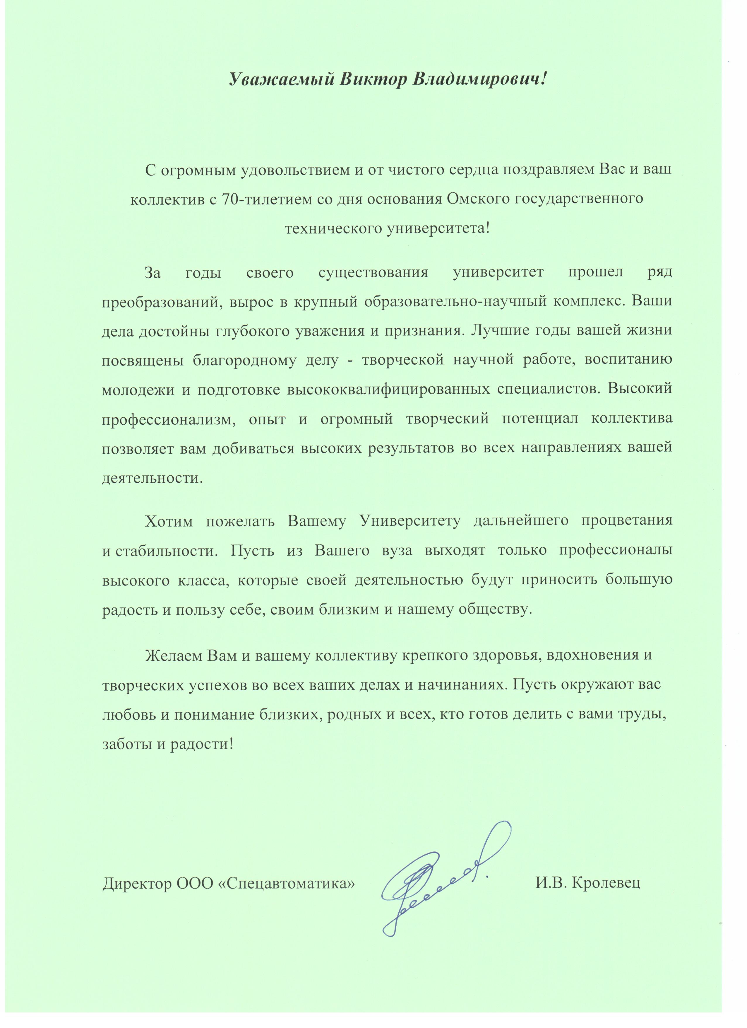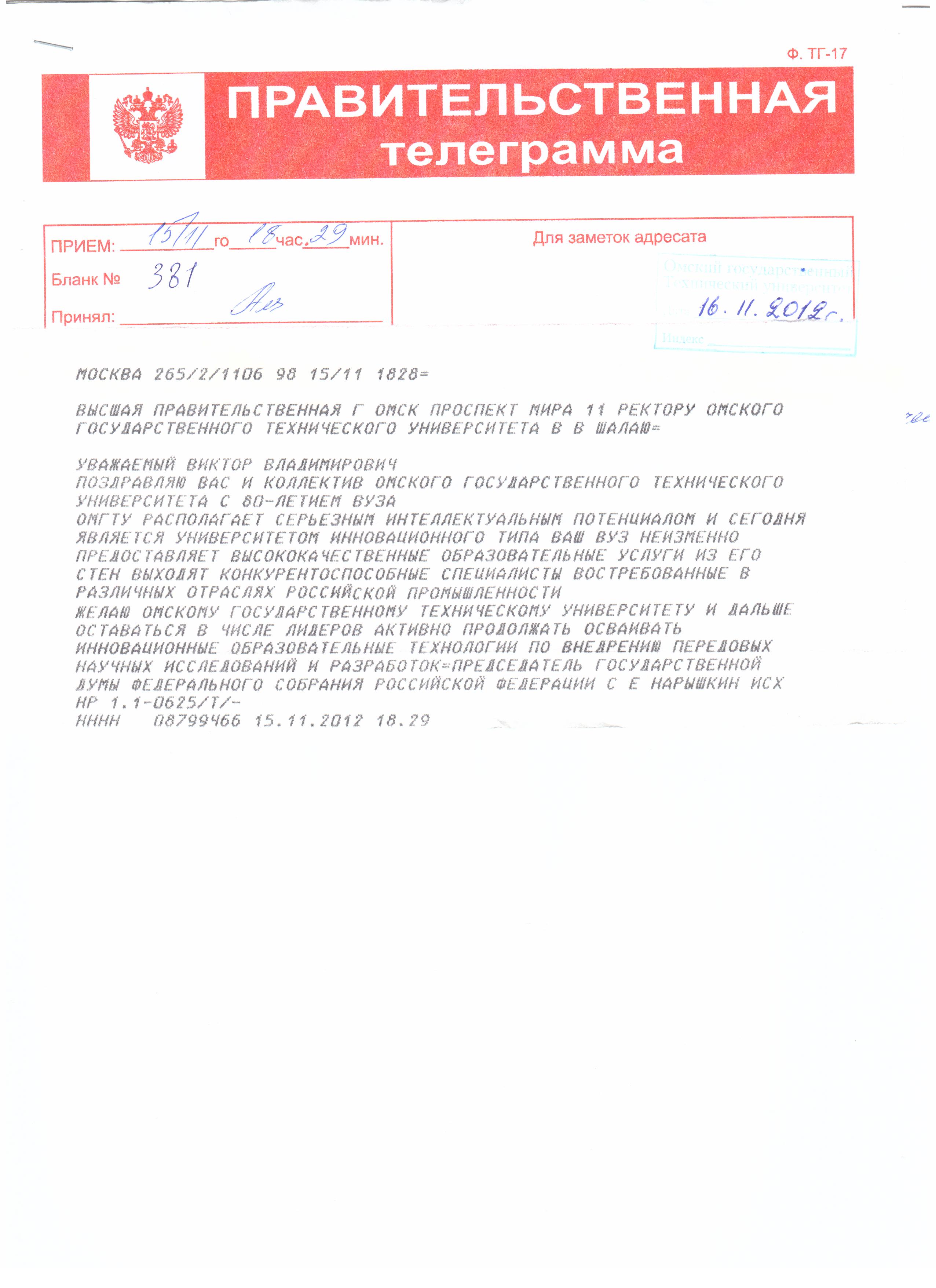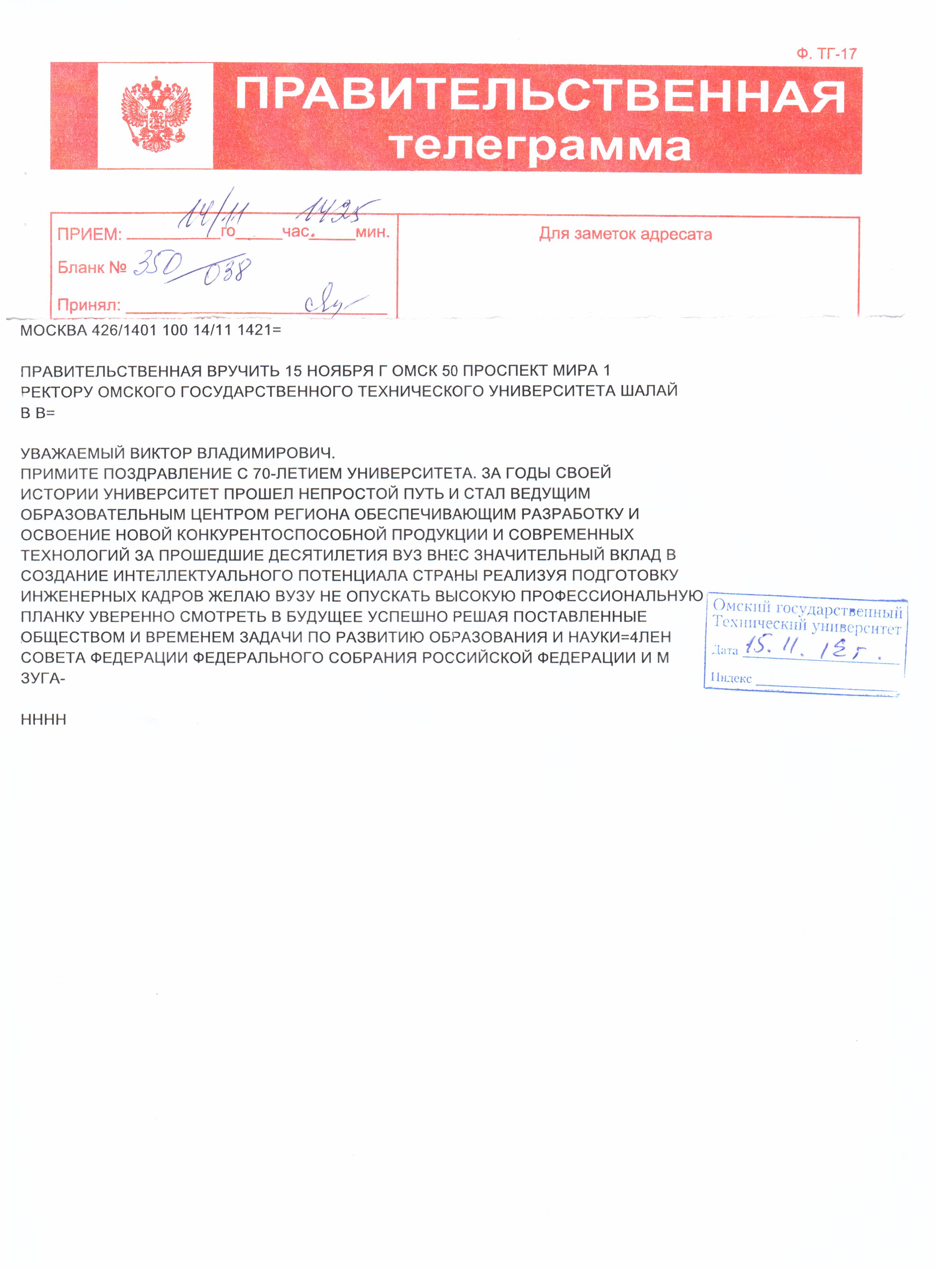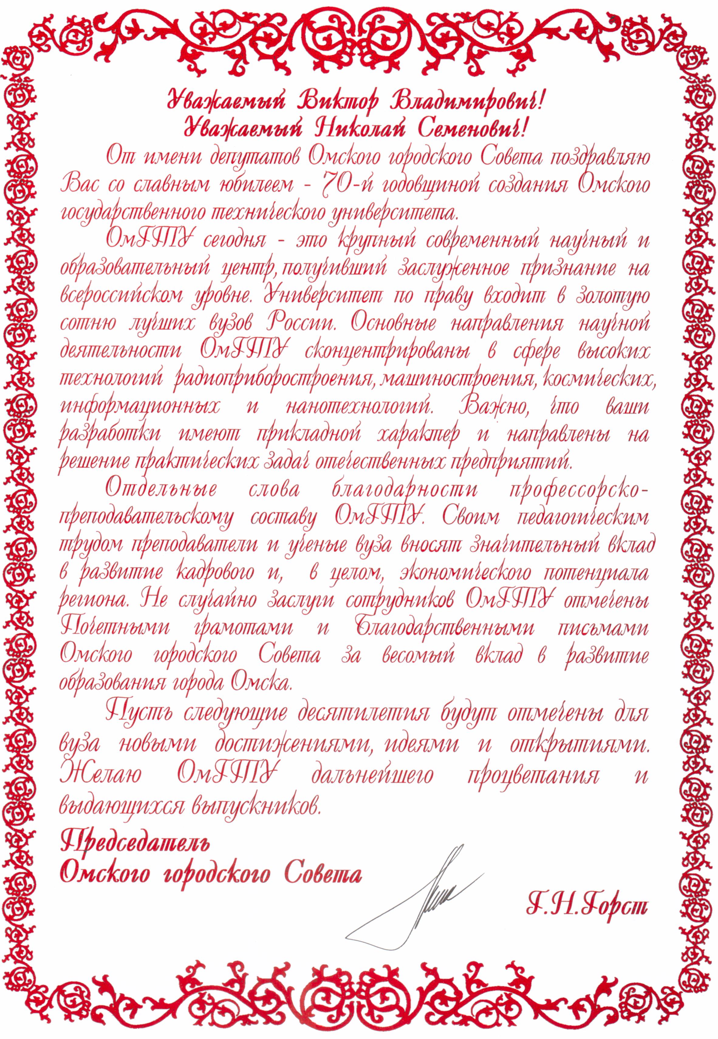- Юбилей ОмГТУ: Поздравления