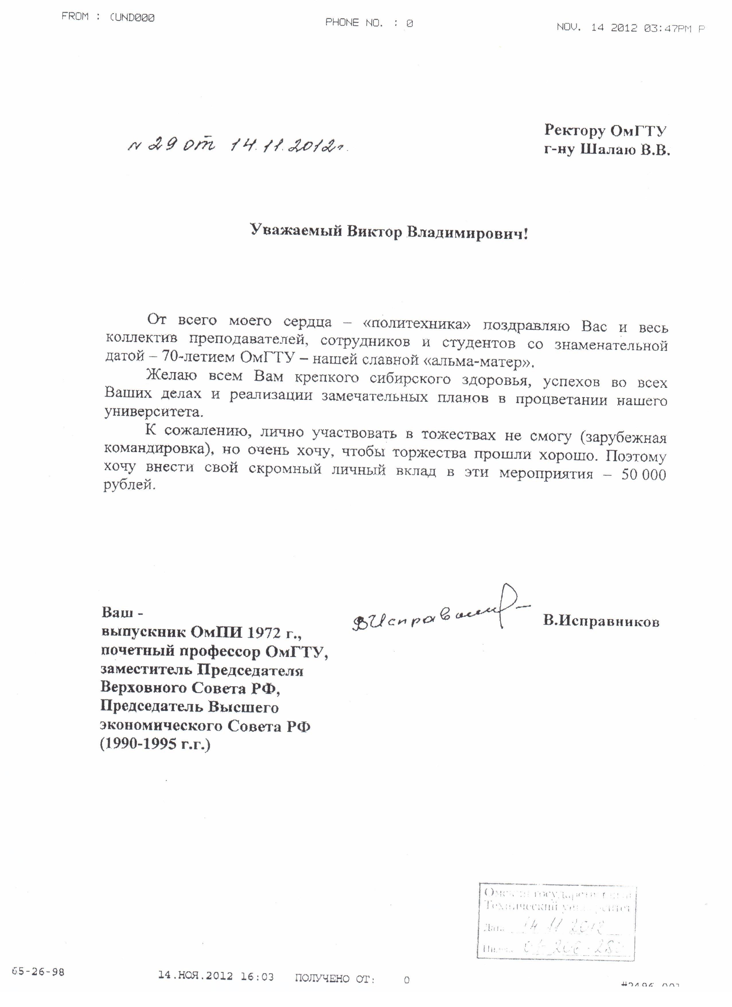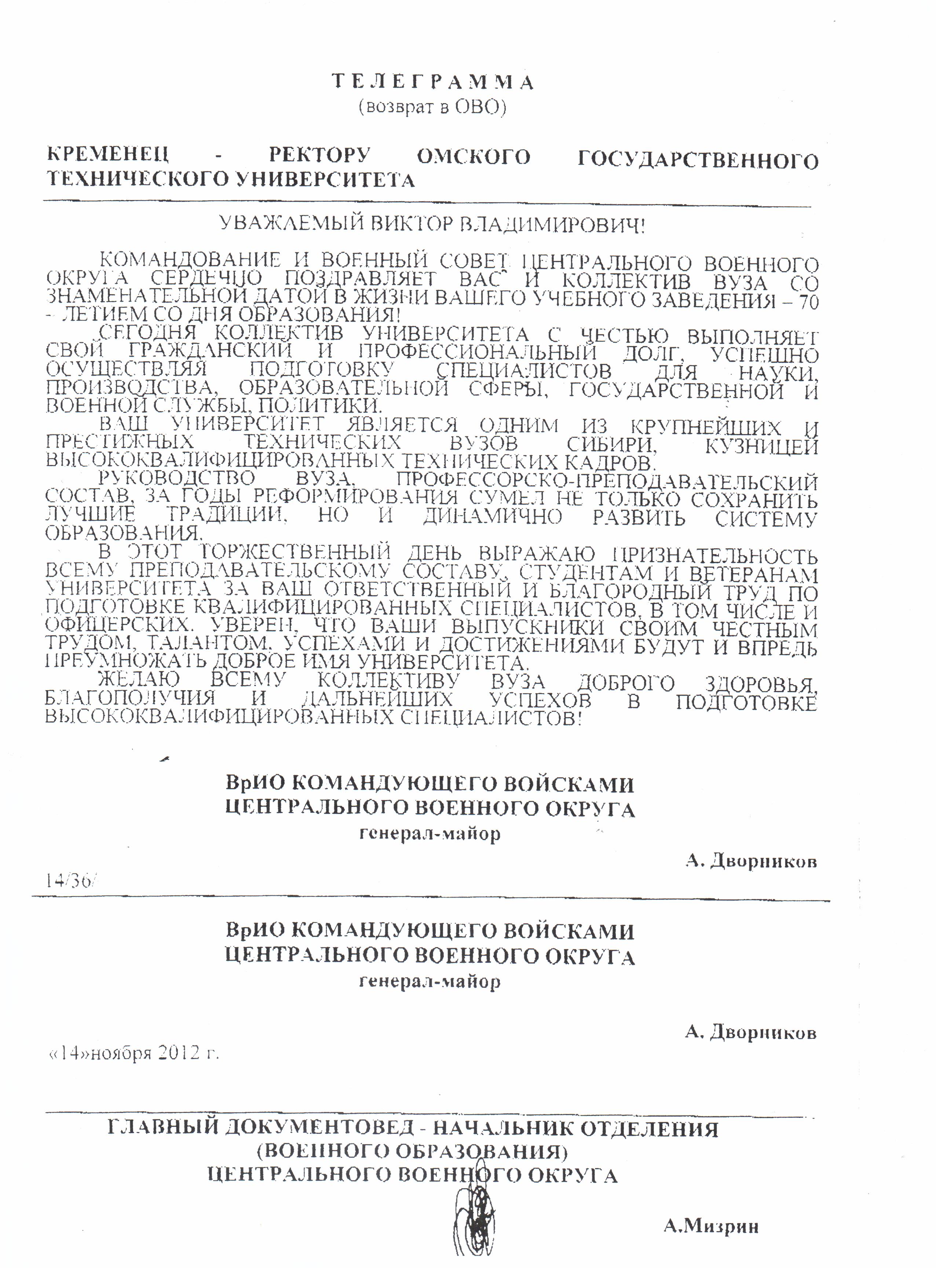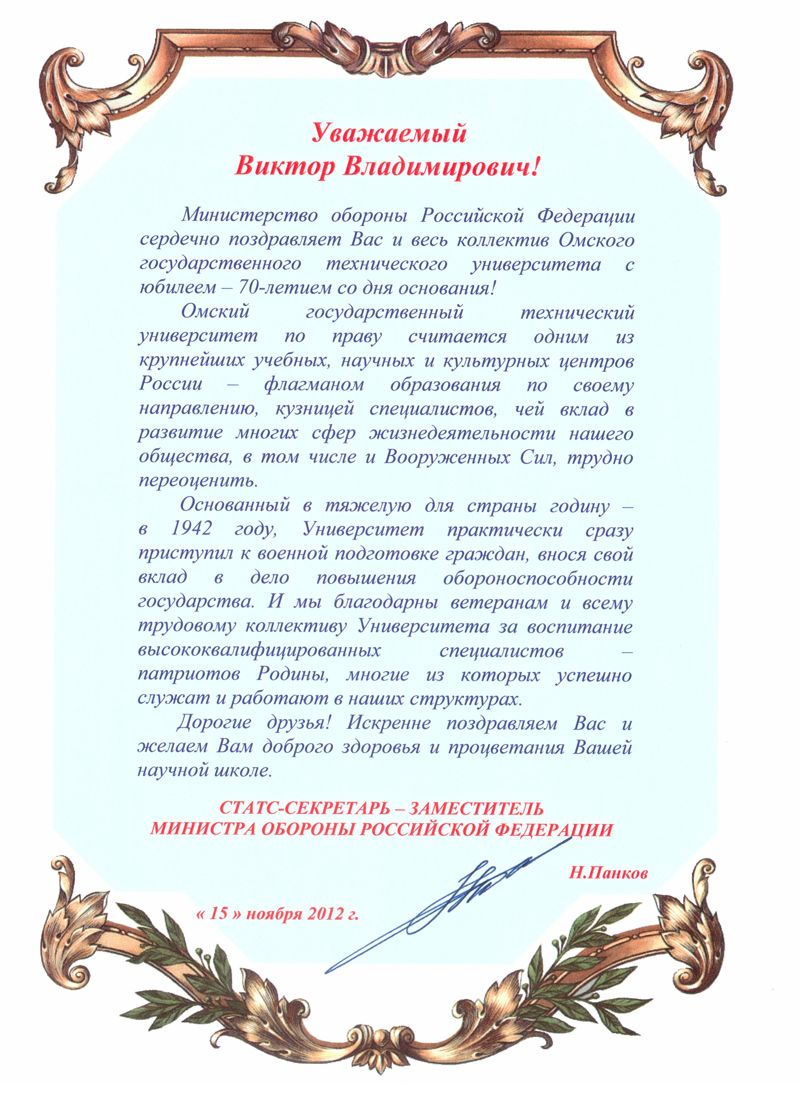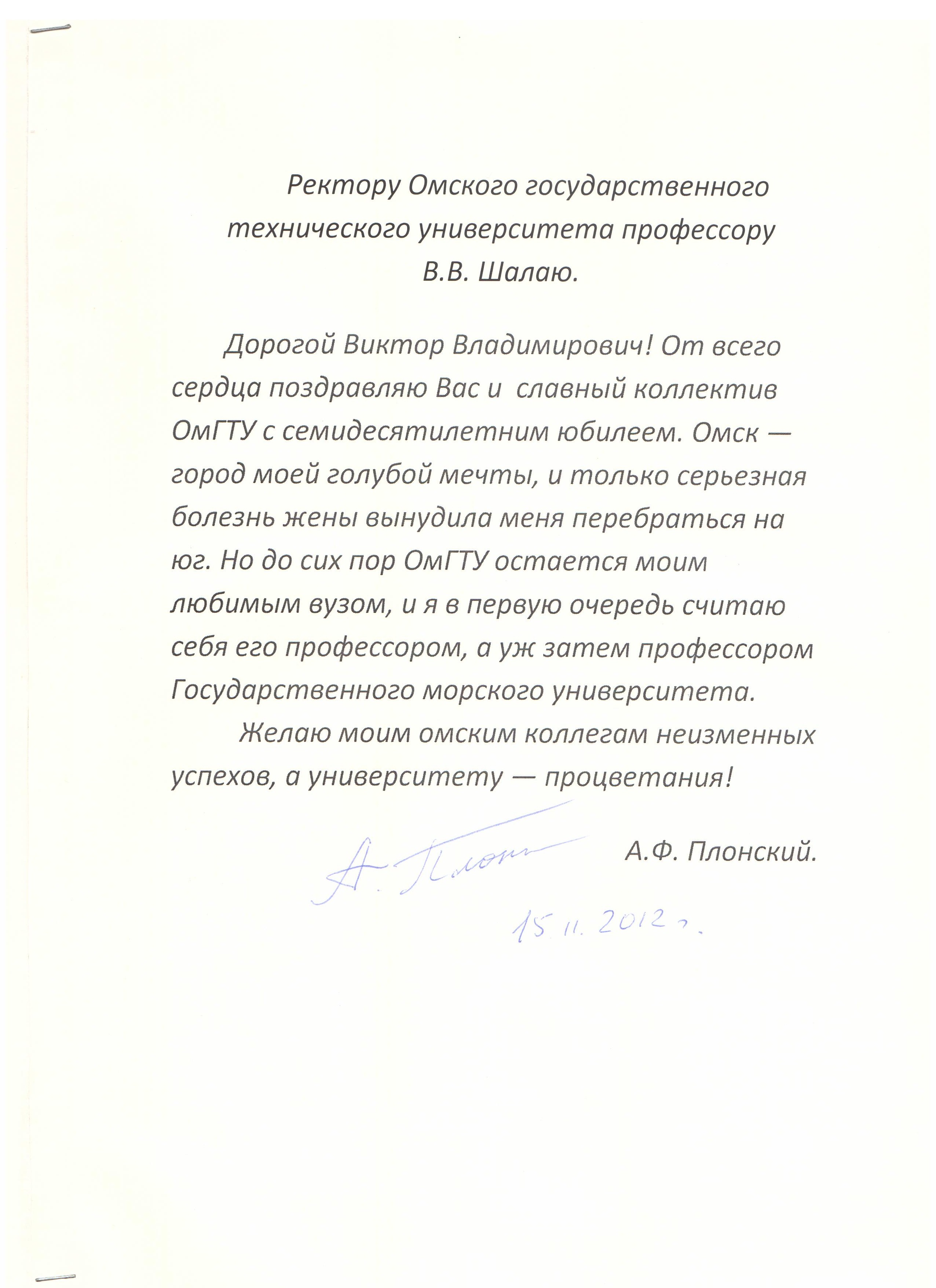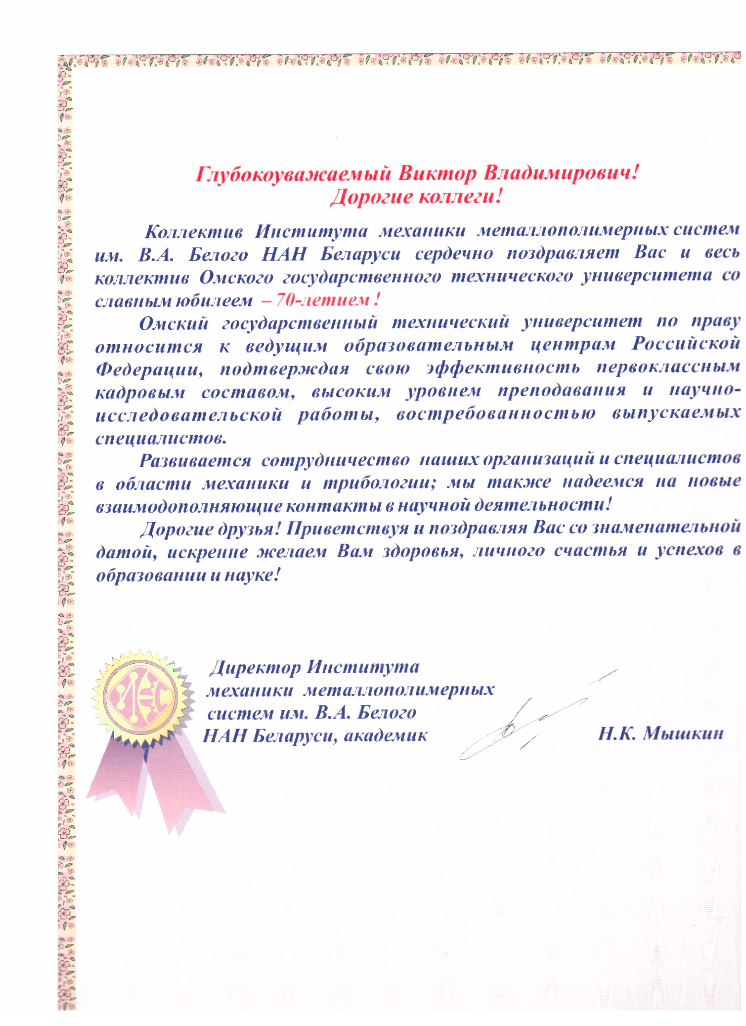- Юбилей ОмГТУ: Поздравления