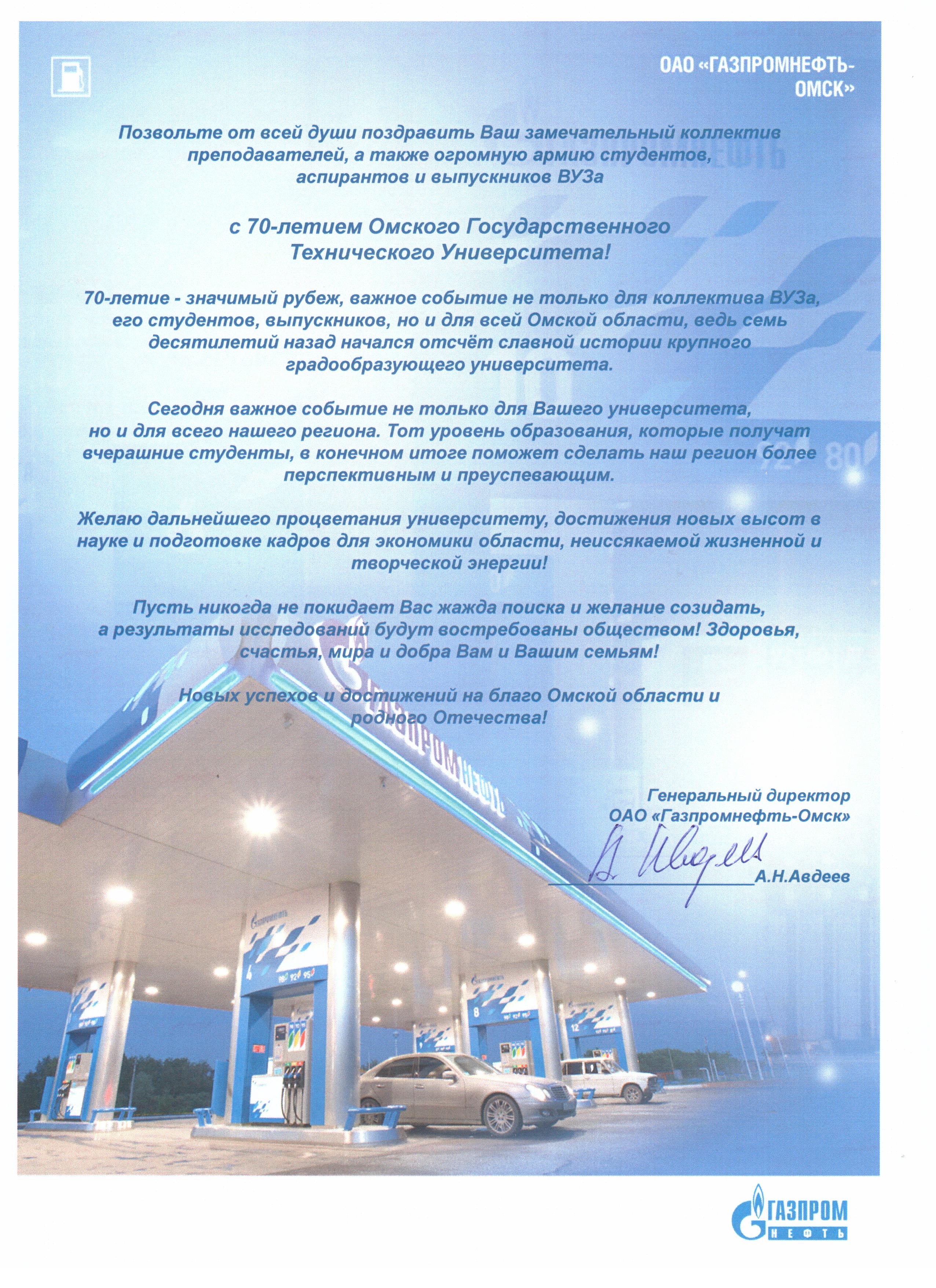 Генеральный директор ОАО «Газпромнефть-Омск» А.Н. Авдеев