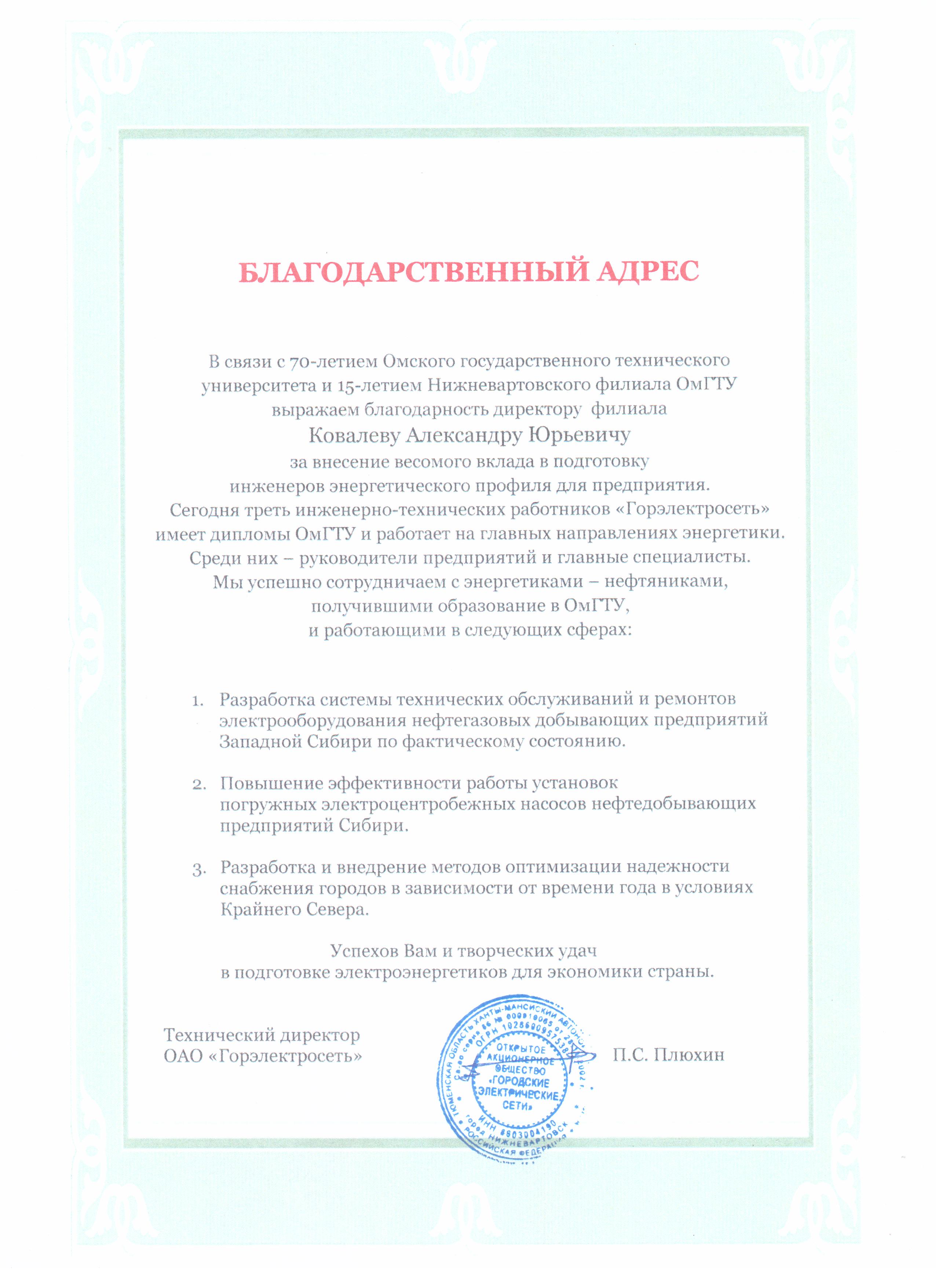 Технический директор ОАО «Горэлектросеть» П.С. Плюхин