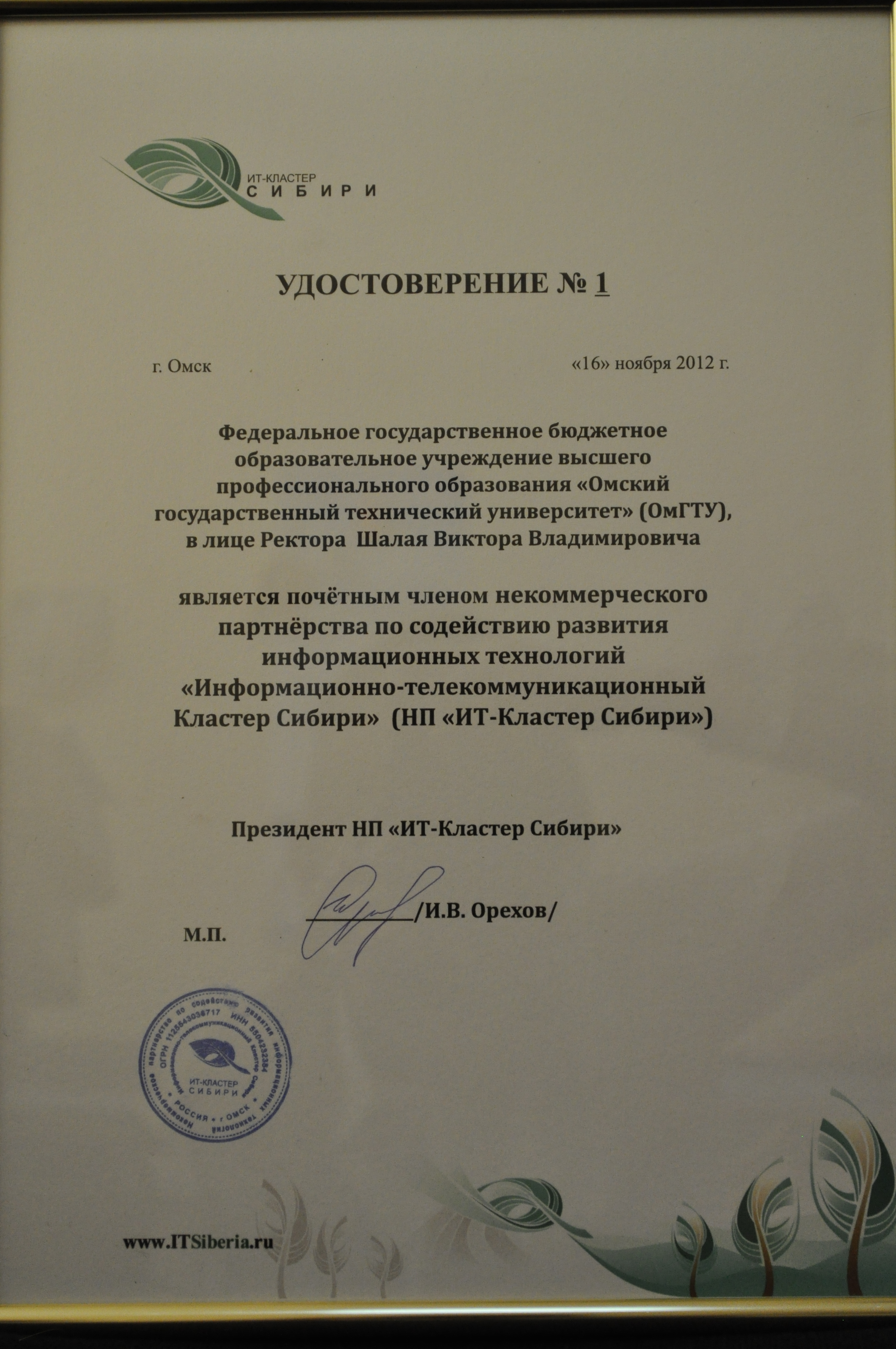 Ректор НОУ ВПО «СИБИТ» С.В. Грисько