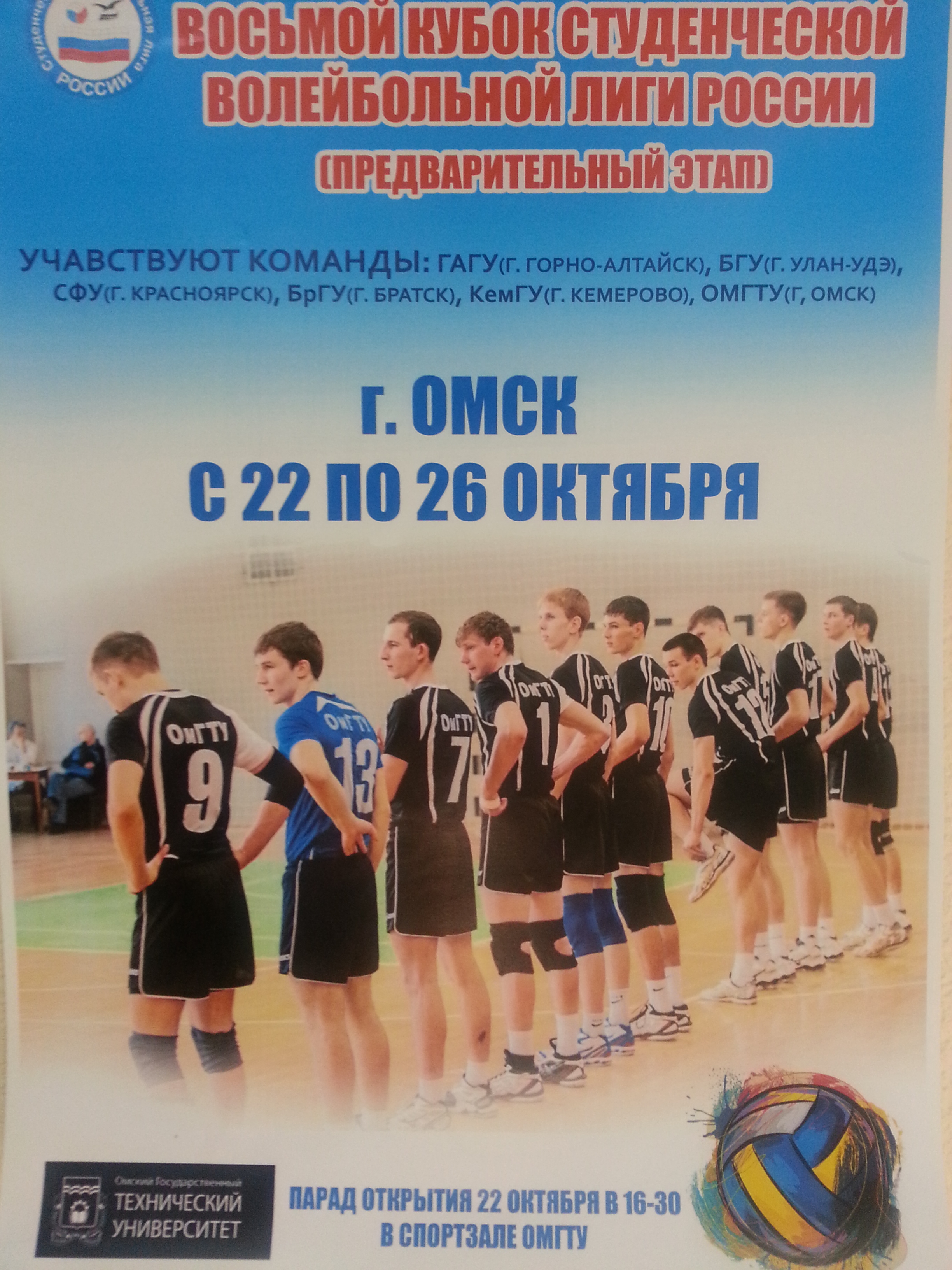 Приглашаем преподавателей и студентов ОмГТУ на соревнования Восьмого Кубка студенческой волейбольной лиги России в Омске.