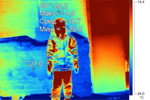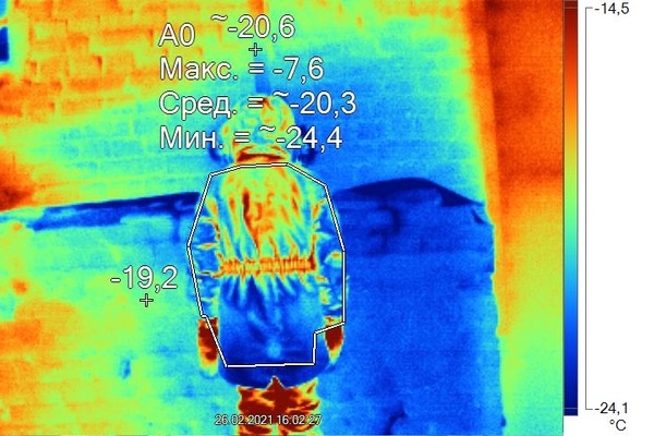 анализ перепада температур на поверхности одежды относительно температуры тела человека.