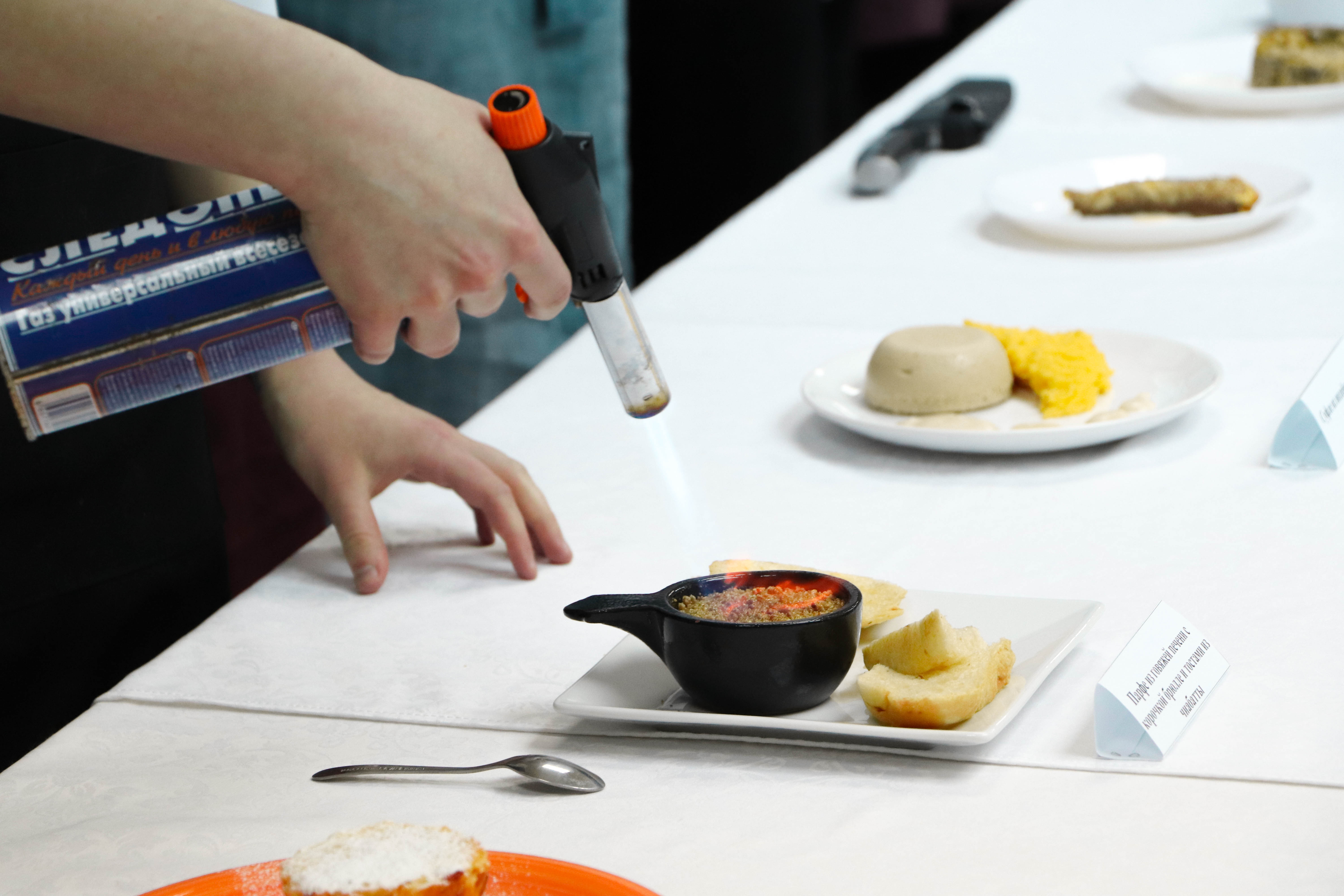 В рамках встречи студенты кафедры «Биотехнология, технология общественного питания и товароведение» представили современный вариант меню для общеобразовательных и дошкольных учреждений. В него вошли такие блюда, как: парфе из говяжьей печени с корочкой брюлле и тостами из чиабатты, творожный мусс с грушей и орехами кешью, ягодный крамбл с грушей, суфле из индейки с пюре из овощей и многое другое.