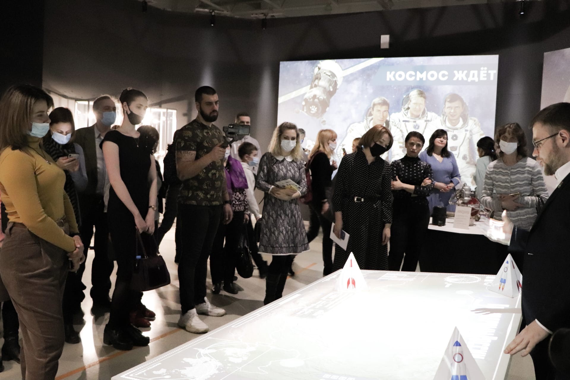 Интерактивная инсталляция «Космодромы России», проект студентки Анастасии Ремесловой, воплощает в себе карту с тремя космодромами, при размещении фигур ракет на которые можно узнать информацию о каждом из них. Все это в виде интерфейса информационной панели с анимированными графиками и диаграммами. Инсталляция позволяет посетителям не только познакомиться с космодромами России, но и самостоятельно запустить ракету в космос, нажав на специальную кнопку. После запуска ракеты можно увидеть различные данные о полете: время, скорость, запас топлива и прочее.