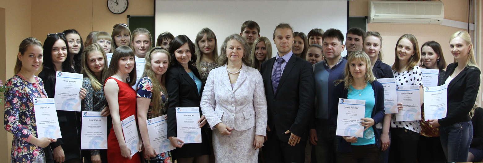 28 мая состоялось торжественное вручение 29 участникам лаборатории (студентам, магистрантам, аспирантам, сотрудникам кафедры "Государственное, муниципальное управление и таможенное дело") свидетельств, выданных ООО "Сатори Партнер", об успешном прохождении курса обучения "Управление фирмой на базе конфигурации 1С: УНФ редакция 1.4".