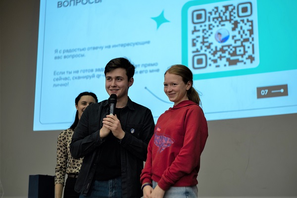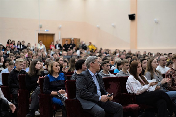 Официальную часть мероприятия продолжили студенты. Политехник Семен Савченко рассказал ребятам свою историю поступления: про сдачу ЕГЭ и выбор направления подготовки, про внеучебную деятельность в вузе и как можно реализовать себя во время учебы. Завершили выступление начальник отдела по приему на обучение Алексей Седанов и начальник военного учебного центра ОмГТУ Константин Грымзин. Они затронули особенности приемной кампании 2023/2024 учебного года, а также ответили на вопросы о военной подготовке на базе политеха.