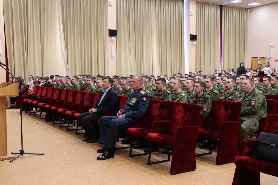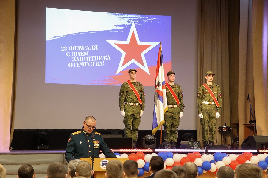Завершающим мероприятием стал концерт. Приветствуя гостей торжественного события, проректор по молодежной политике Олег Перегудов поздравил мужчин с наступающим праздником и отметил, что наш долг – не утратить связь времен, сохранить и передать традиции. На празднике присутствовали студенты, представители военного учебного центра, офицеры, руководство вуза и приглашенные гости.