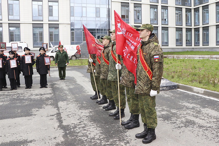 В рамках акции «Эстафета памяти» курсанты Омской академии МВД России торжественно вручили копию Знамени Победы и Бессмертного полка студентам военного учебного центра ОмГТУ. Через несколько дней политехники продолжили эстафету, передав атрибуты участникам автопробега «Дорогами Бессмертного полка», которые повезут знамена в Горьковский, Нижнеомский и Оконешниковский районы Омской области.