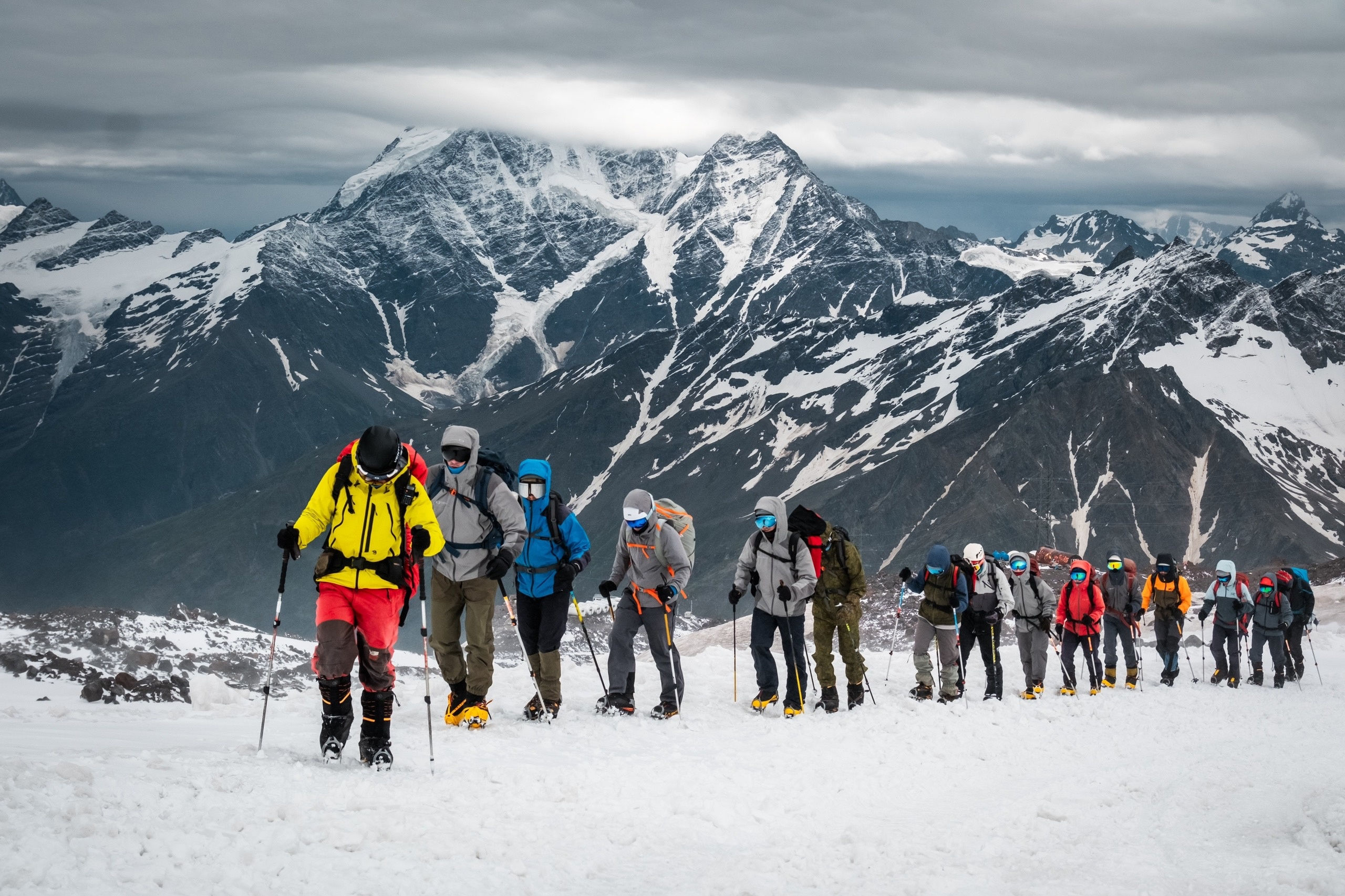 Технически маршрут восхождения на вершину не сложный, но требует выносливости. Эльбрус бывает очень суровый, нужно быть готовым к быстрым изменениям погоды. В ночь с 21 на 22 июля как раз открылось погодное окно, к этому времени мы уже прошли высотную акклиматизацию в разных условиях.