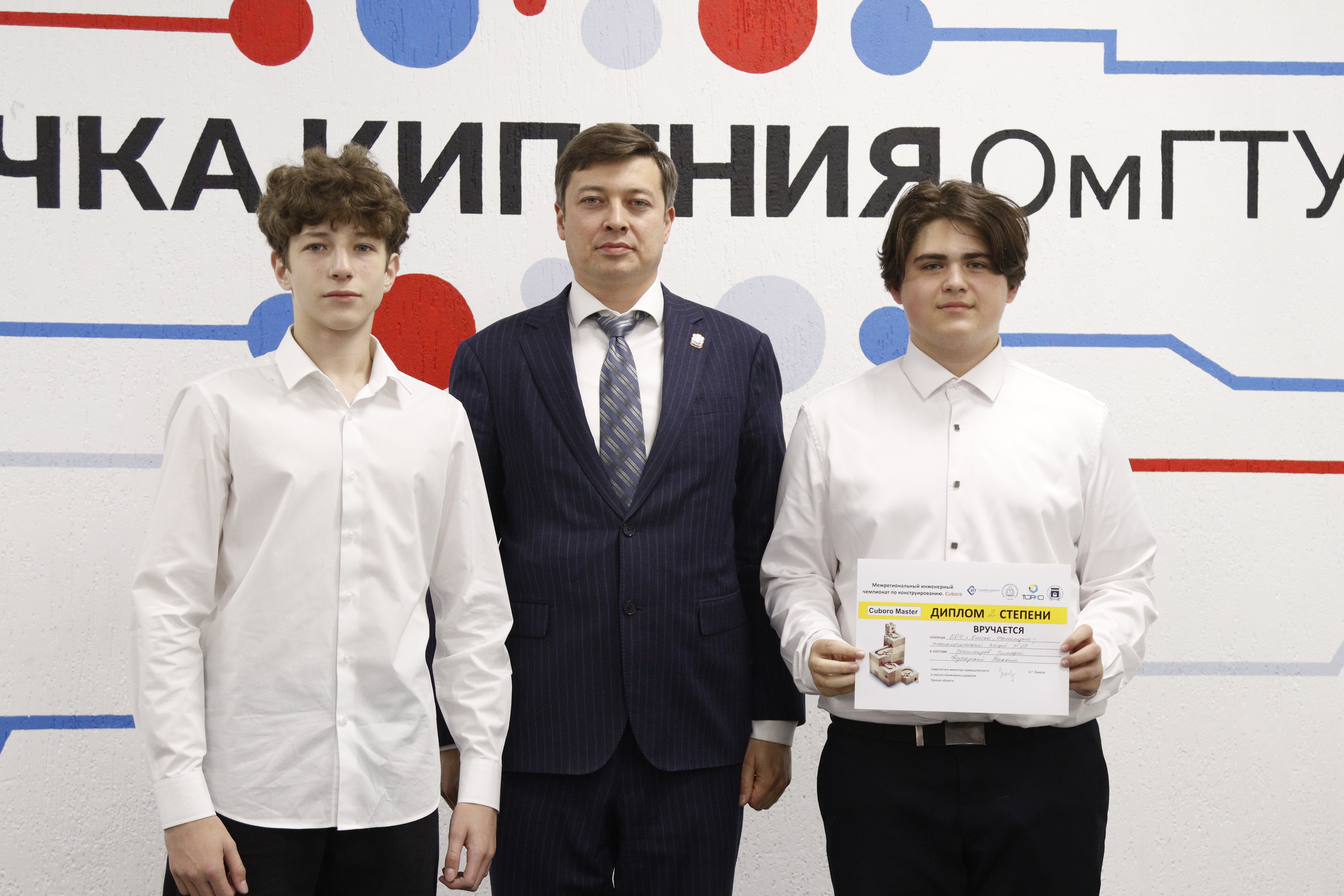 Наградили победителей заместитель министра промышленности и научно-технического развития Омской области Бари Хаиров и директор Передовой инженерной школы «СтанкоИнструментТех» ОмГТУ Евгений Васильев.