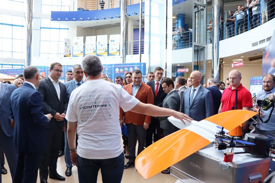 Резиденты промышленного кластера Омской области презентовали свою продукцию на специальной выставочной площадке. ОмГТУ продемонстрировал несколько разработок – беспилотный летательный аппарат типа «квадрокоптер» для 3D-сканирования строительных объектов, БПЛА ПП-55, экспериментальный беспилотный летательный аппарат типа «конвертоплан», а также установку ультразвукового упрочнения от Передовой инженерной школы вуза.