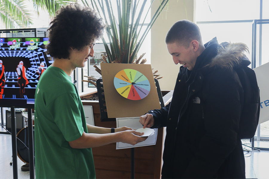 На площадке, посвященной психологии, гости вращали «Колесо эмоций», делились личными историями, связанными с учебой и работой в вузе и получали мотивирующие карточки. Музей университета представил две экспозиции, рассказывающие о становлении вуза, – «Страницы истории. Рождение» и «Страницы истории. Развитие».